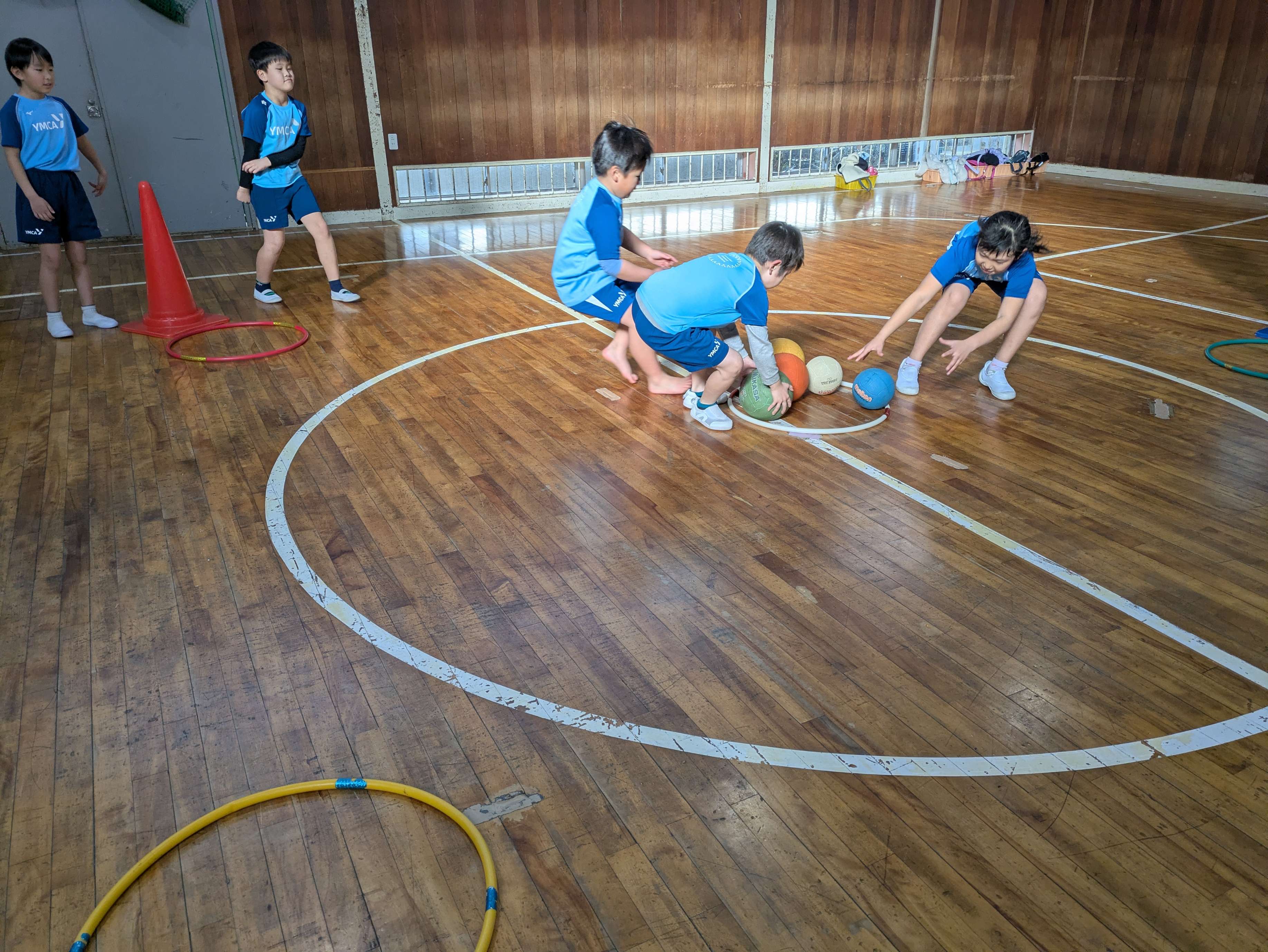 ボールを早く3つ集めたチームの勝ちというルールでしたね。どこのチームにボールが多くあるか見ながら取りに行くことができましたね!