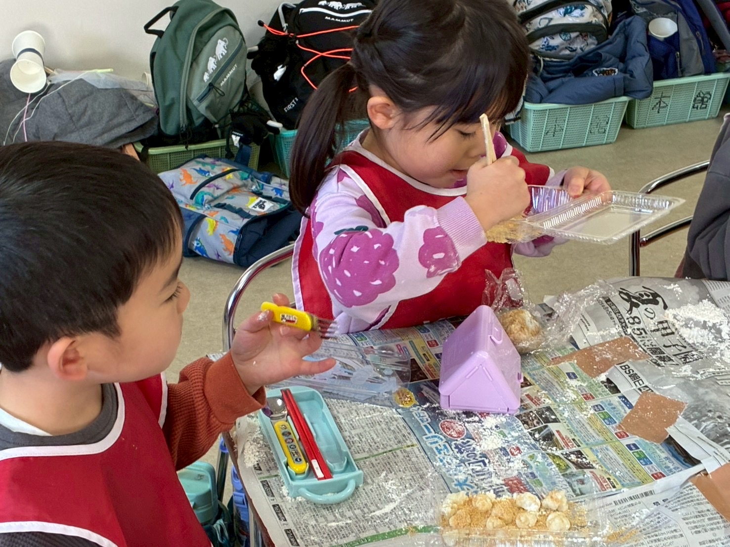お餅が手にひっつくハプニングもありましたが、楽しそうに丸めていました!はじめはお餅が苦手だといっていた子も、美味しいとおかわりまでしてくれました☺️