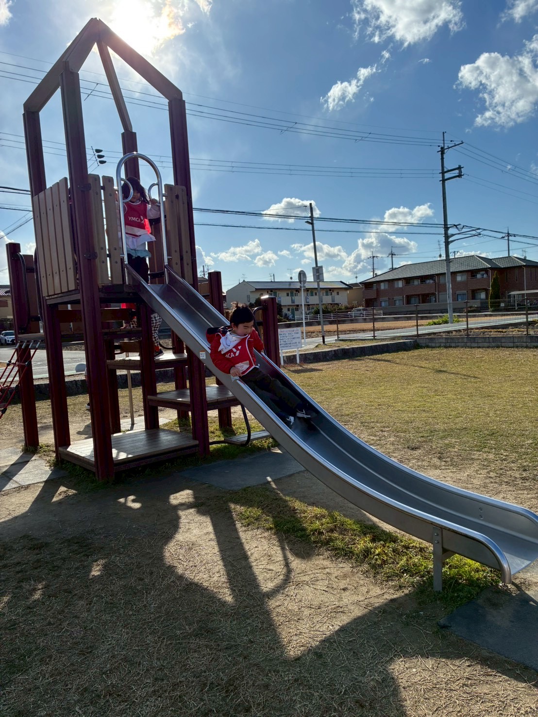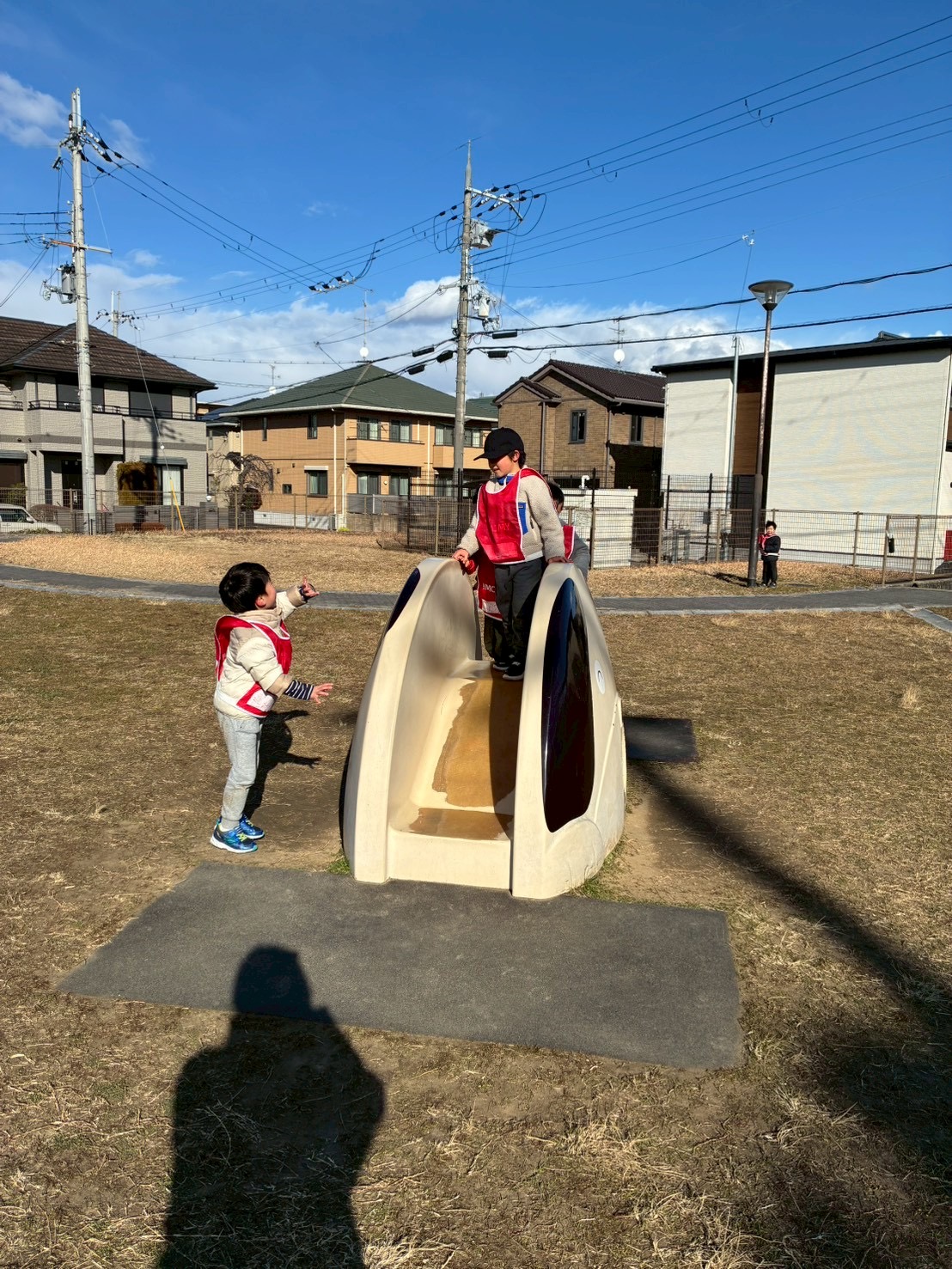 公園では追いかけっこをしたり、滑り台を滑ったり、寒さも吹き飛んでしまうくらい元気いっぱいに遊びました!