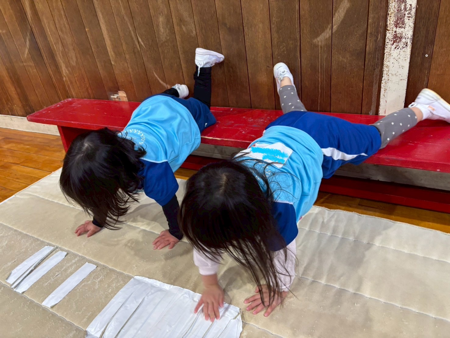 サーキットは、滑り台などをしました。腕立ての状態での移動もとってもスムーズに出来るようになっていて成長を感じました。前はしんどそうにしていたり、うまくできないと訴えてきたりしていましたが、今日は自信満々にやっている様子でした(^_-)-☆