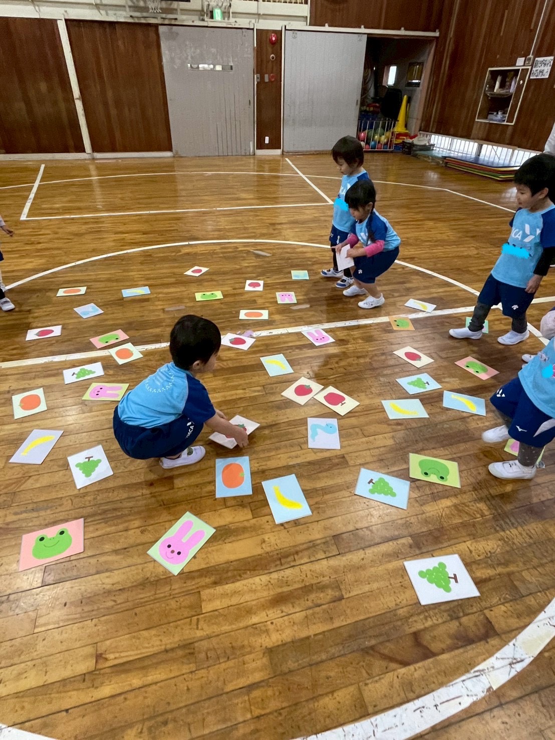 今日はお正月遊びのひとつ「かるた取り」をしました。リーダーのお話をよく聞いて、間違えずにカードを取ることが出来ました。そこにはない絵を言われても間違えなかったね!まだのんび~りとした雰囲気でやりましたが、この先回数を重ねるとまた様子が変わってくるかなと思います!