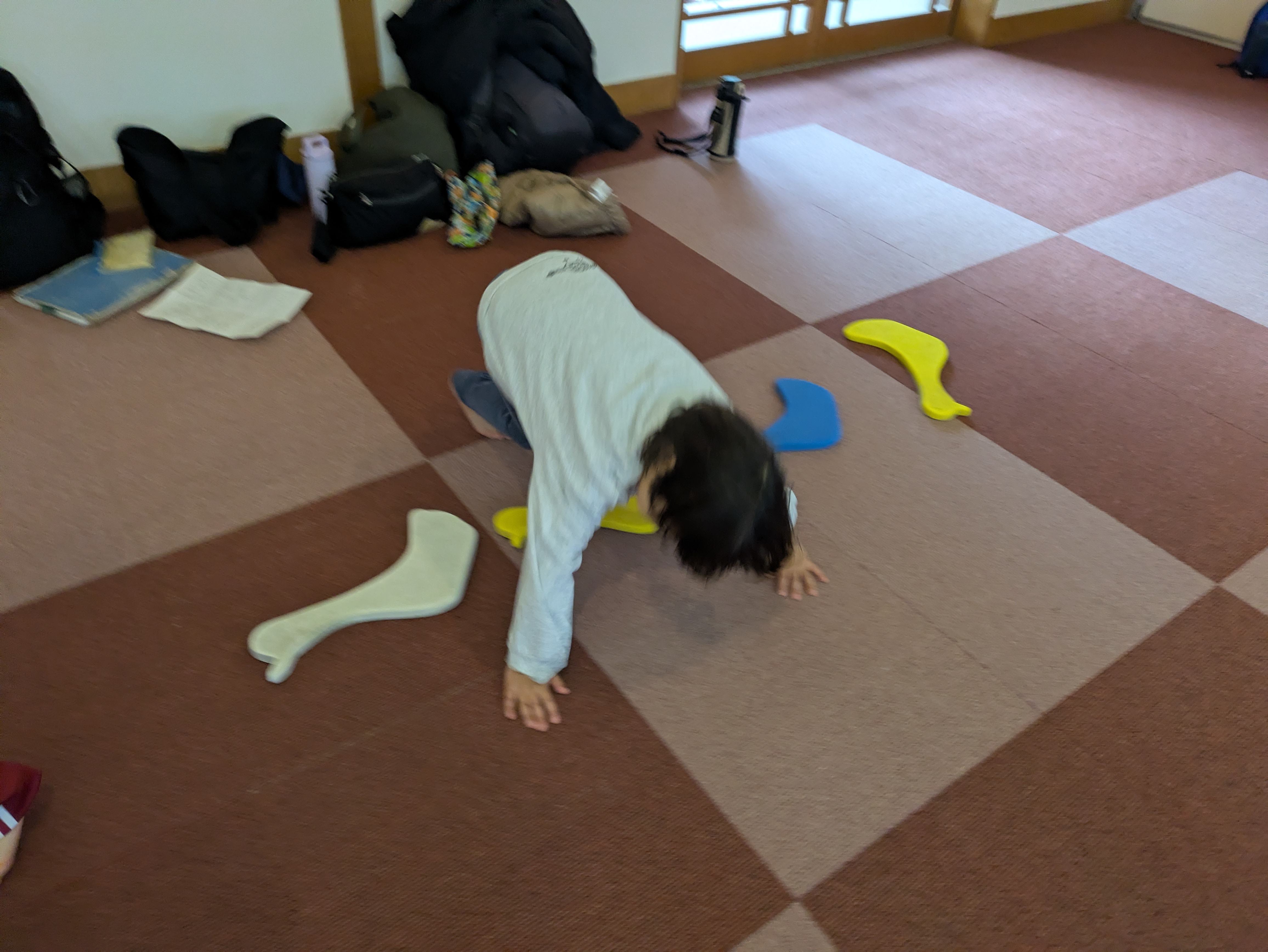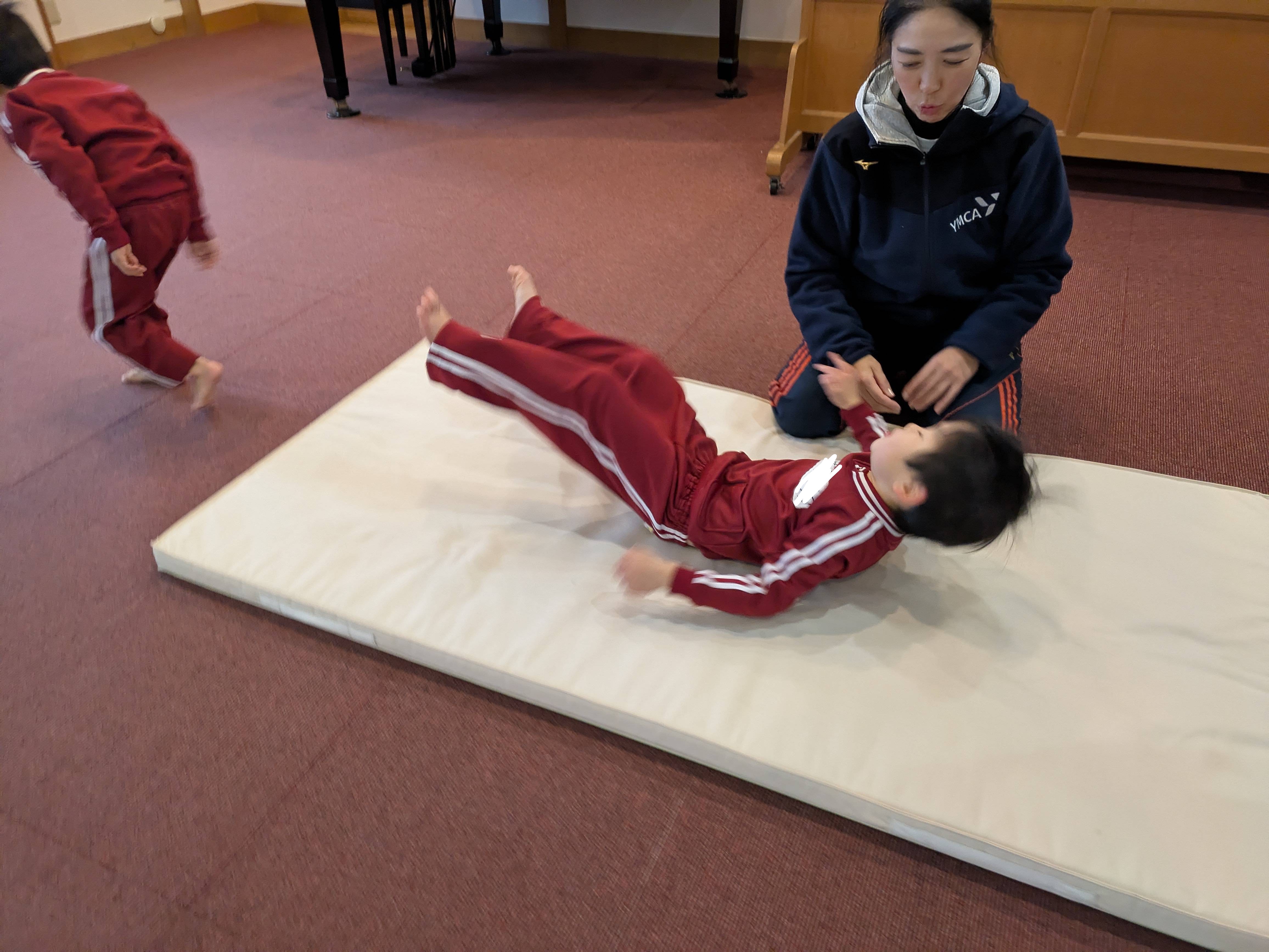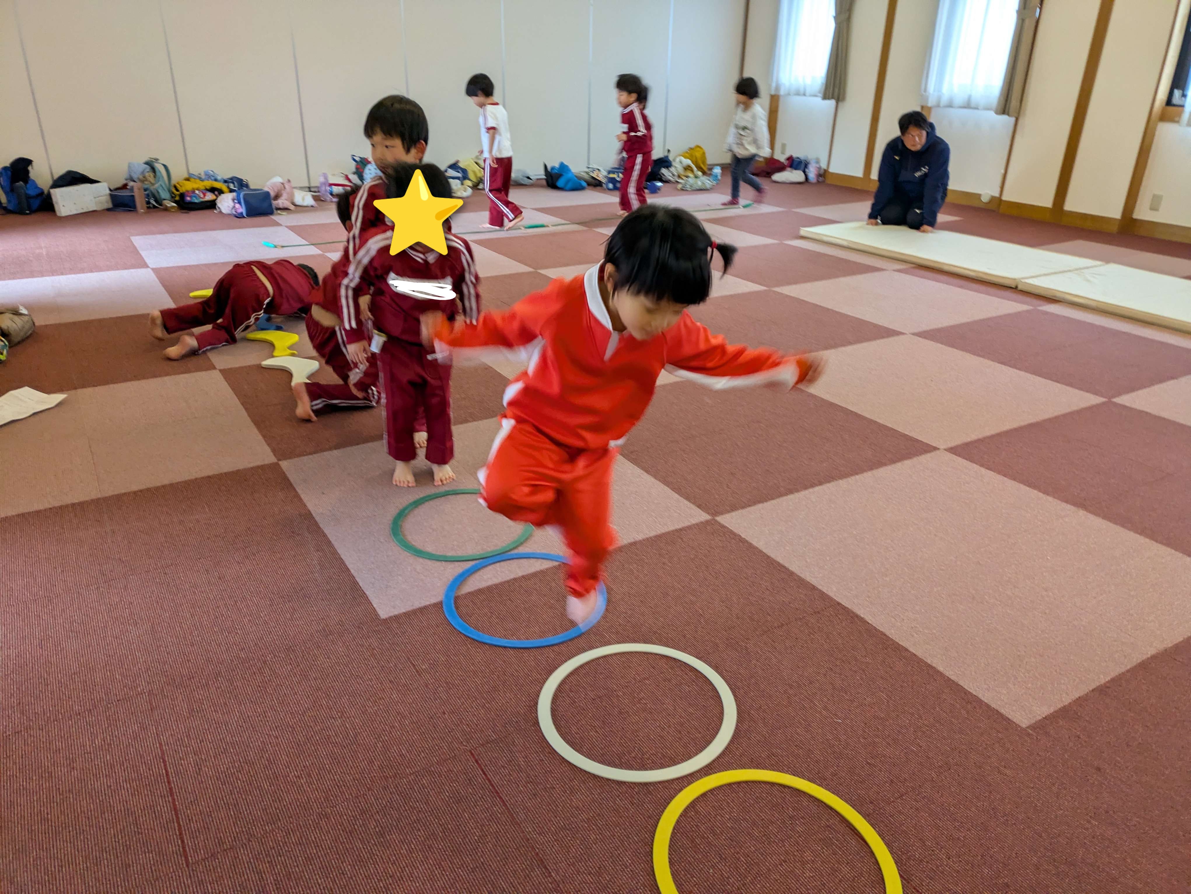 サーキットでは、腕支持やケンケン、前転などをしました。