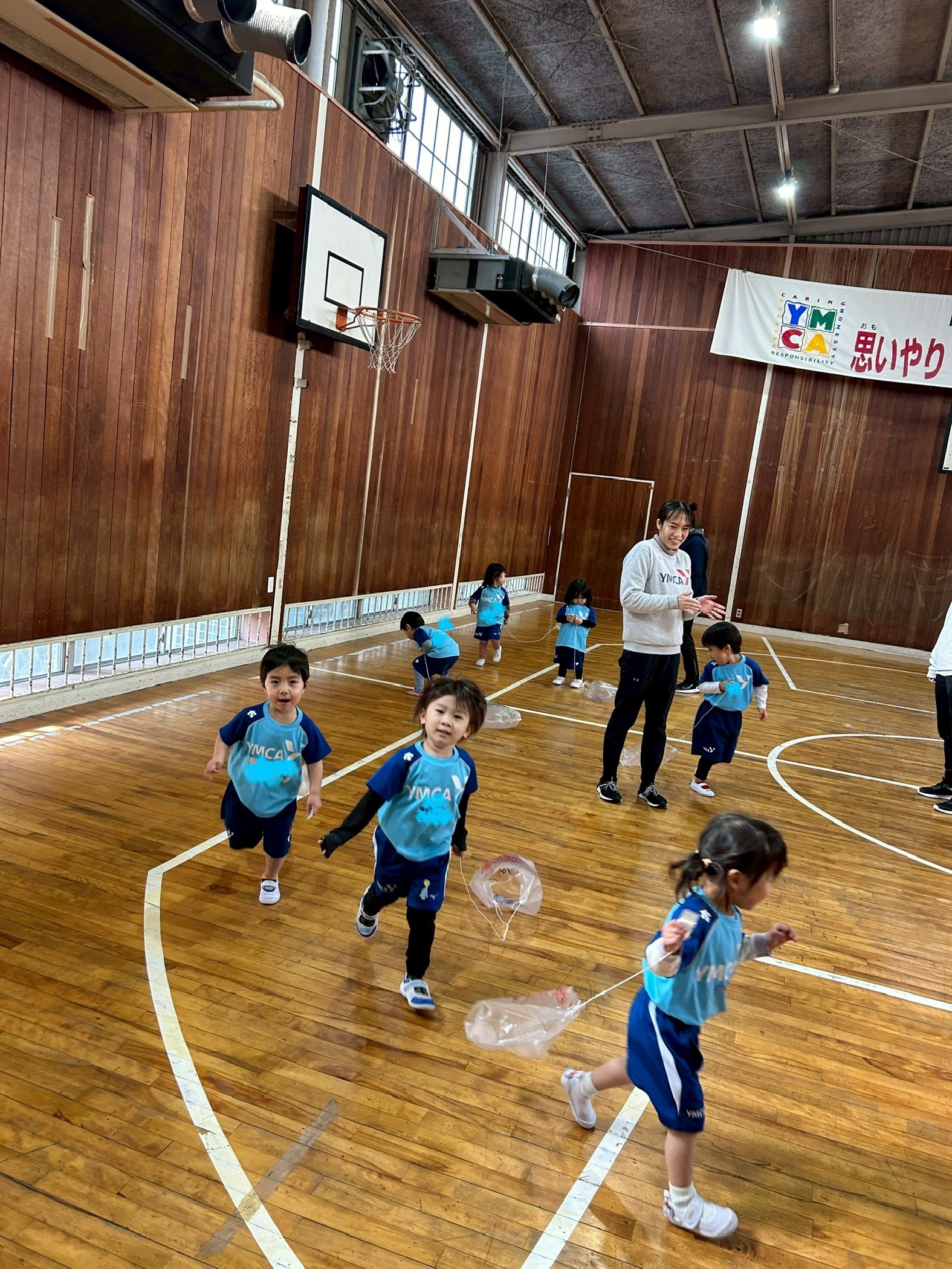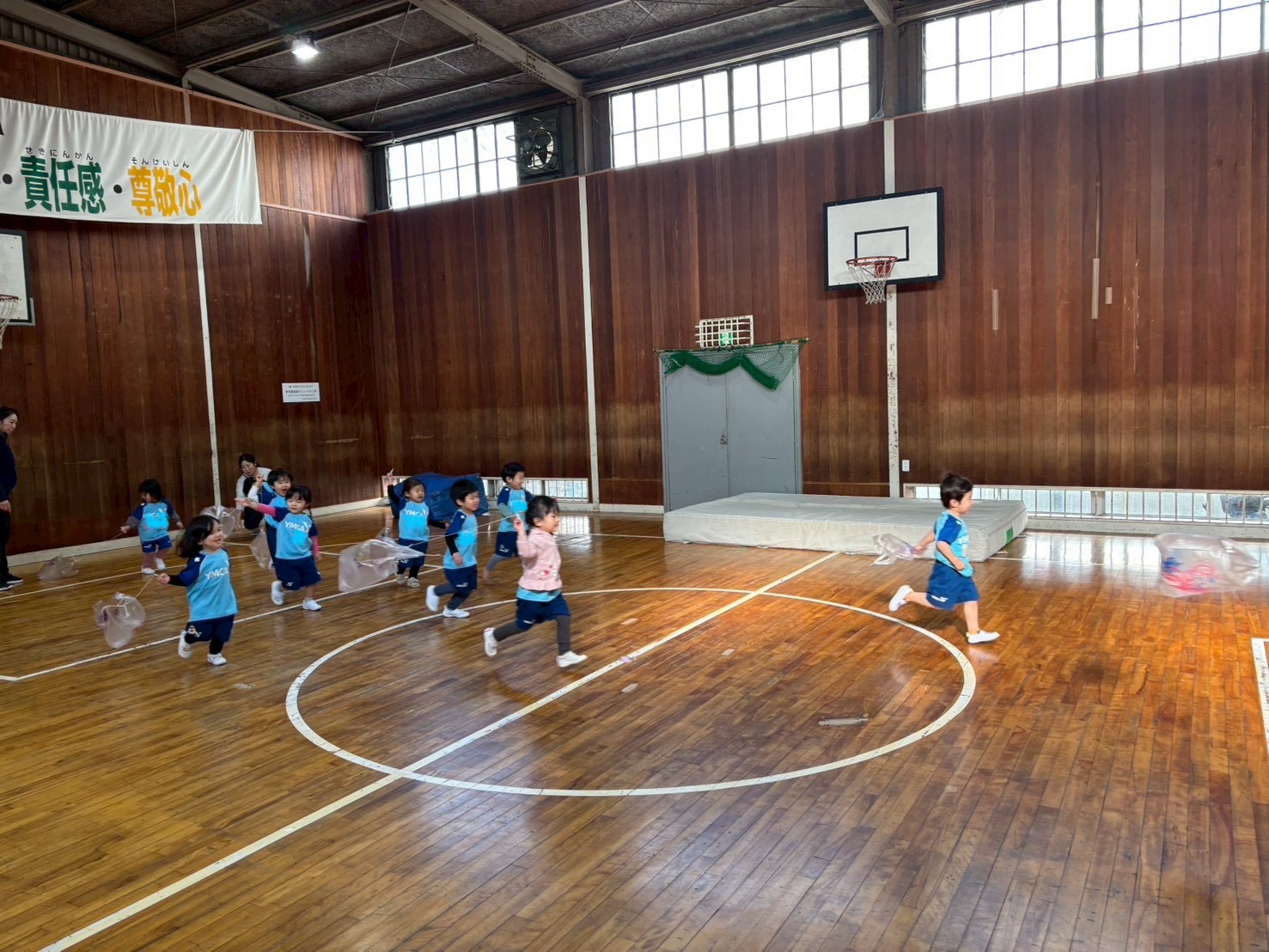 今日のお正月遊びは、体育館で凧を作って遊びました。