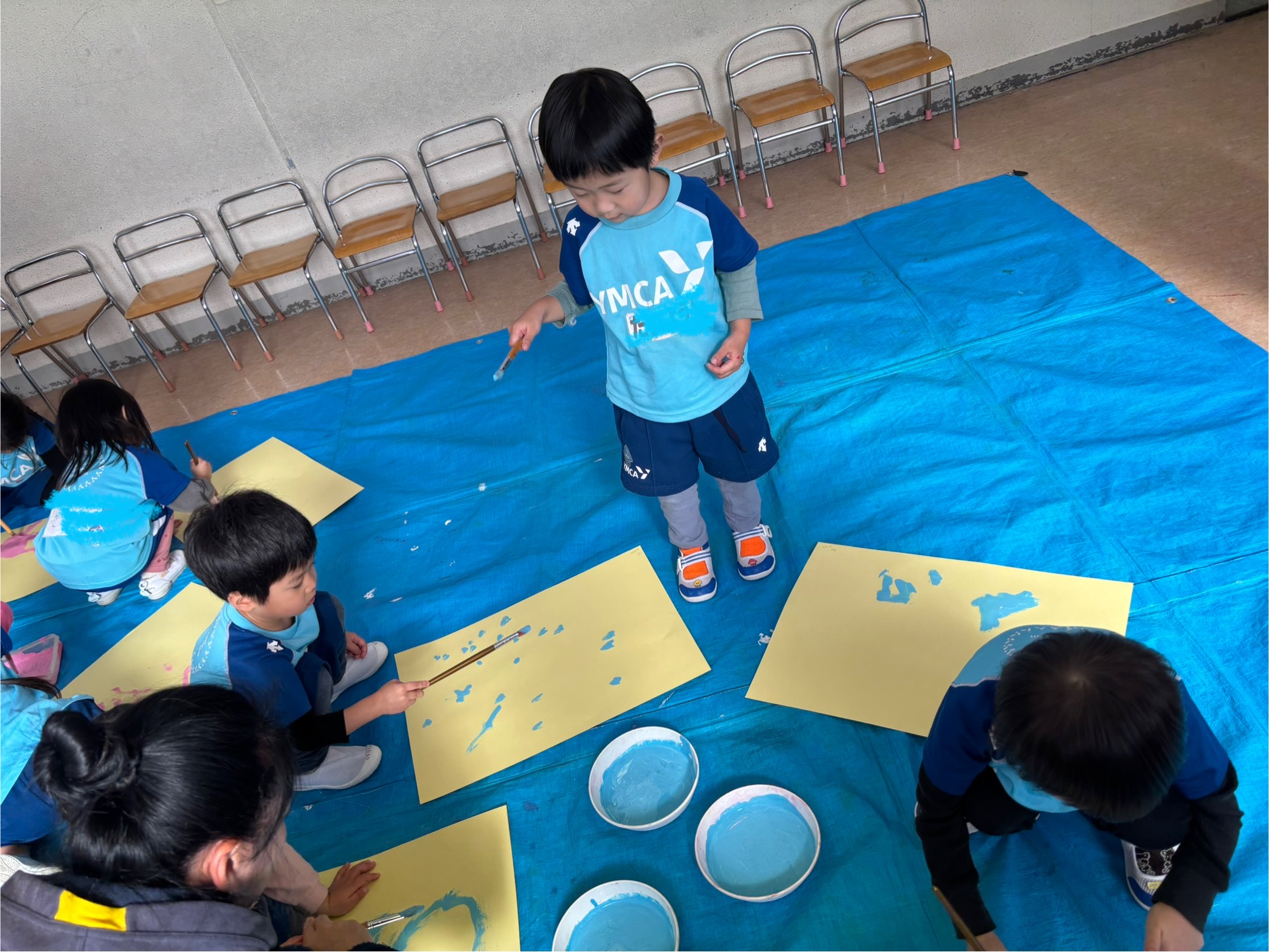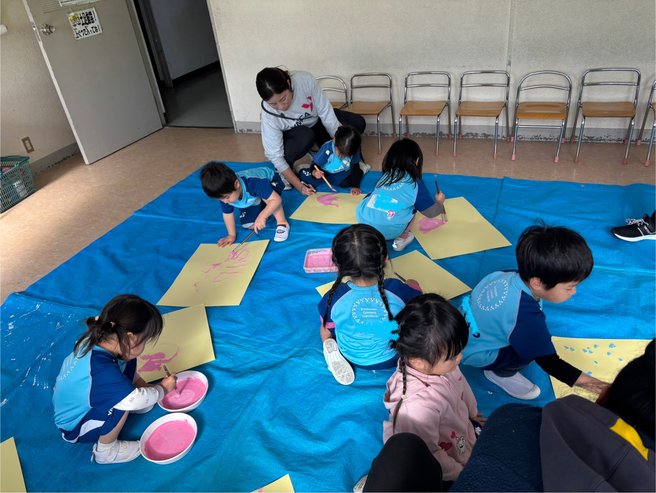 みんなのびのびと筆の様子を楽しみながら大きく絵を描いていました。黙々と長い時間描いてましたよ~(^^♪ひとつひとつのことをじっくり集中して出来るようになってきたと思います!