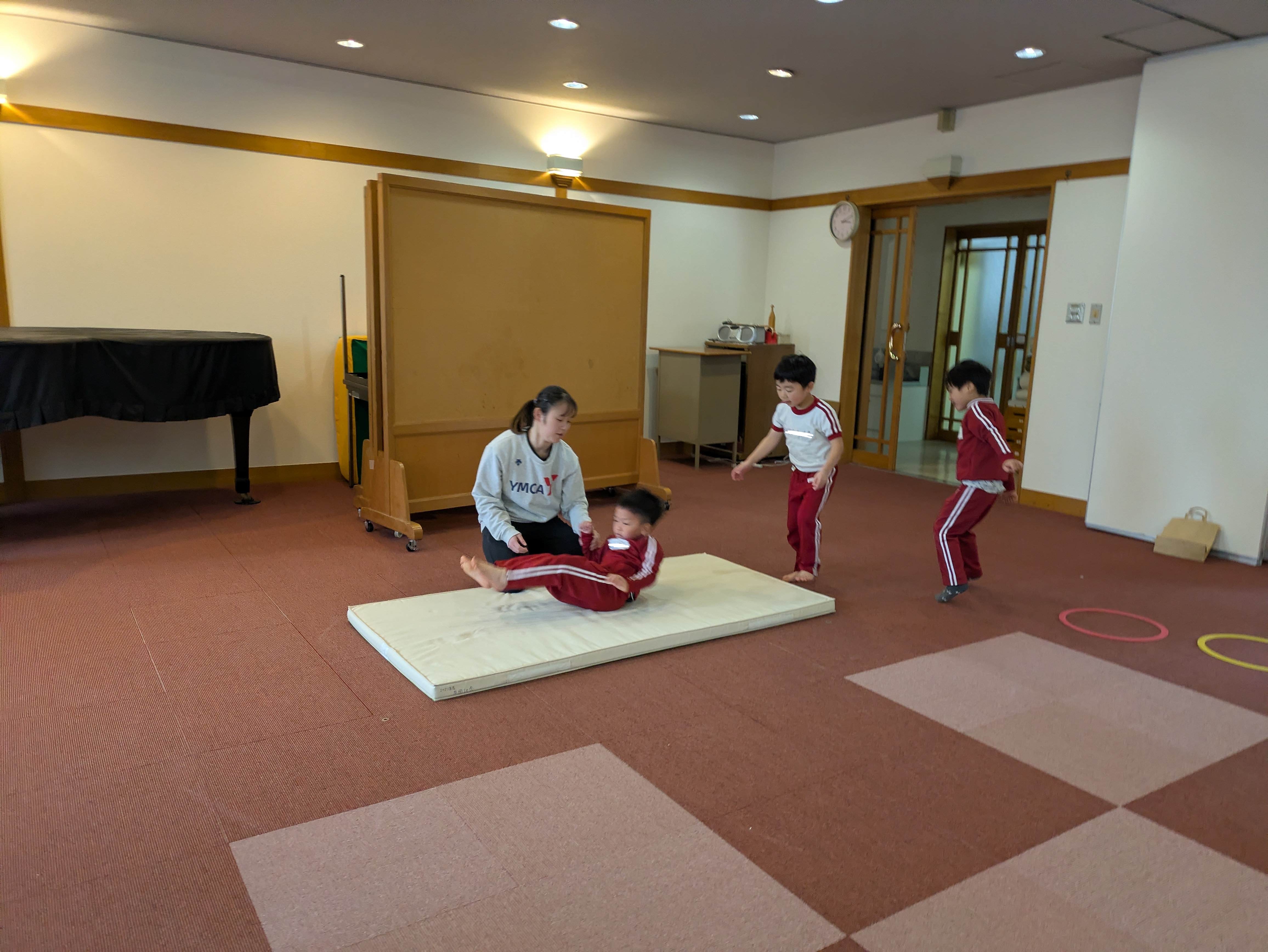 サーキットでは、前転や腕指示歩きなどをしました。ロープジャンプの足入れ替えは、上手に止まることなく足を入れ替えることができていましたね!