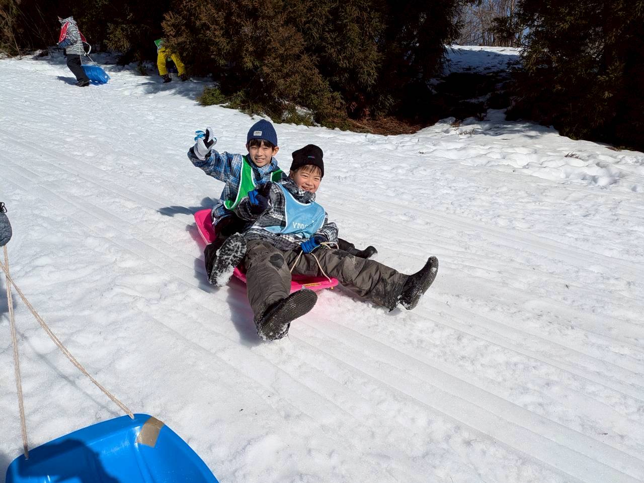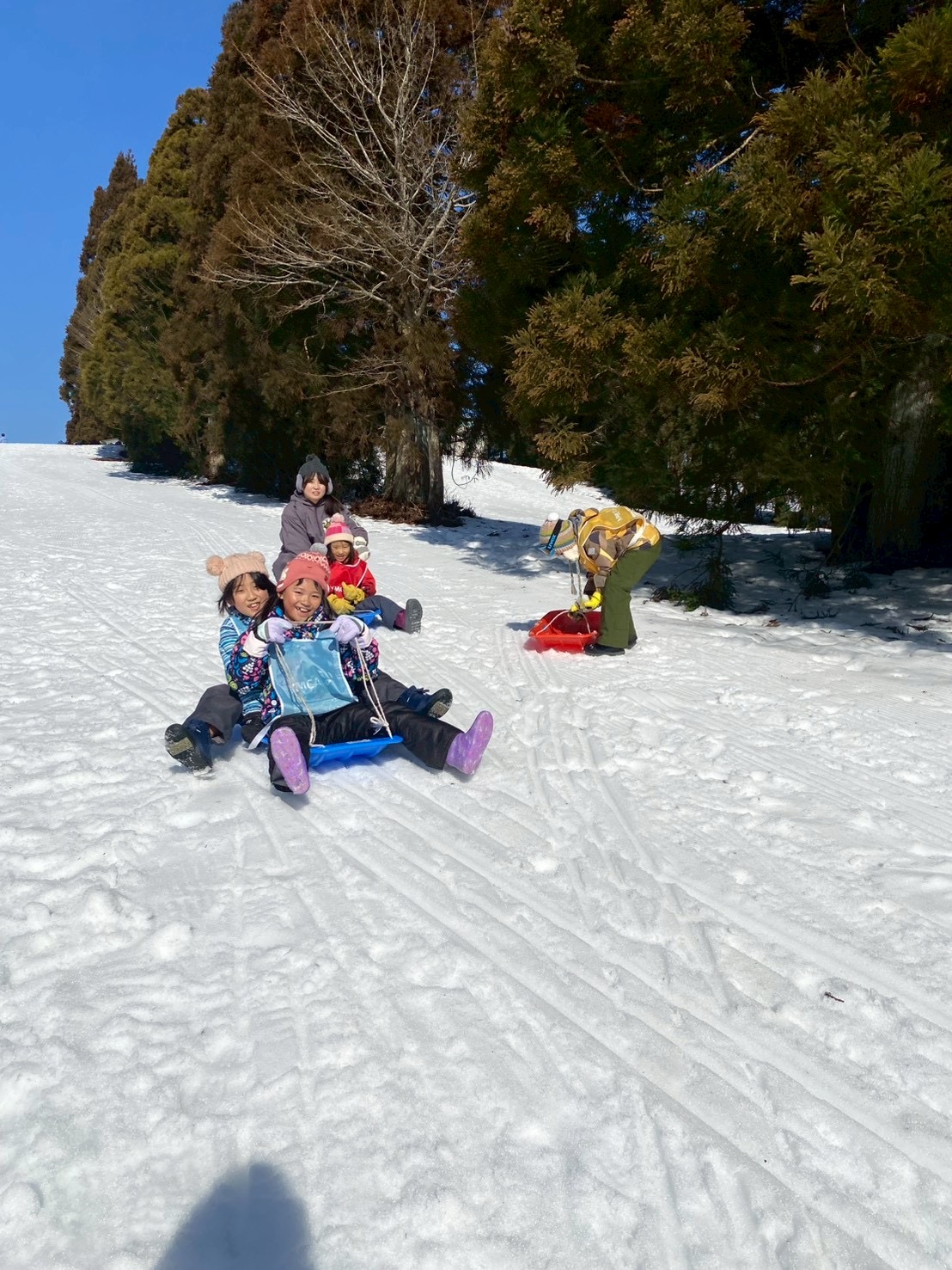 フリータイムではソリやかまくら作り、雪合戦をする子どもたちの姿が見られました。年上のお友だちに一緒にしようと誘い、ニコニコ笑顔で滑る姿も見られました!!☺️