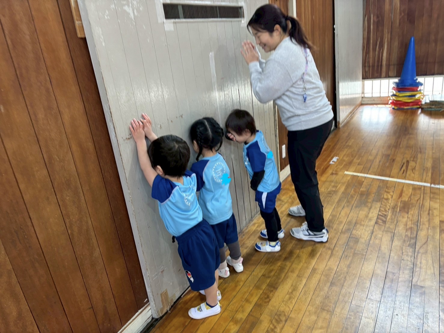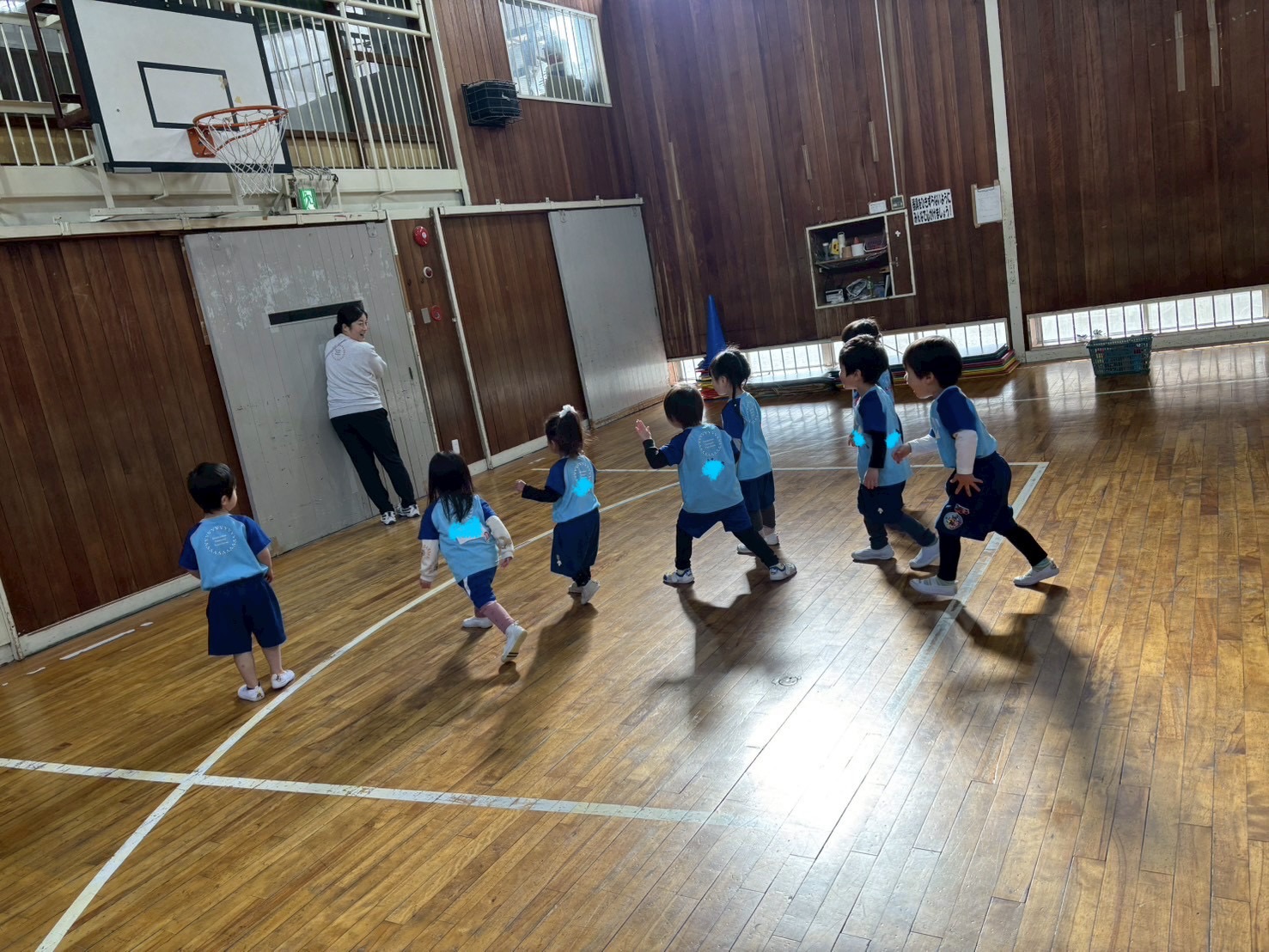 今日は子どもたちが大好きな「だるまさんがころんだ」をしました。もうルールもばっちりなので、ちょっとかけひきも見れたりします。
