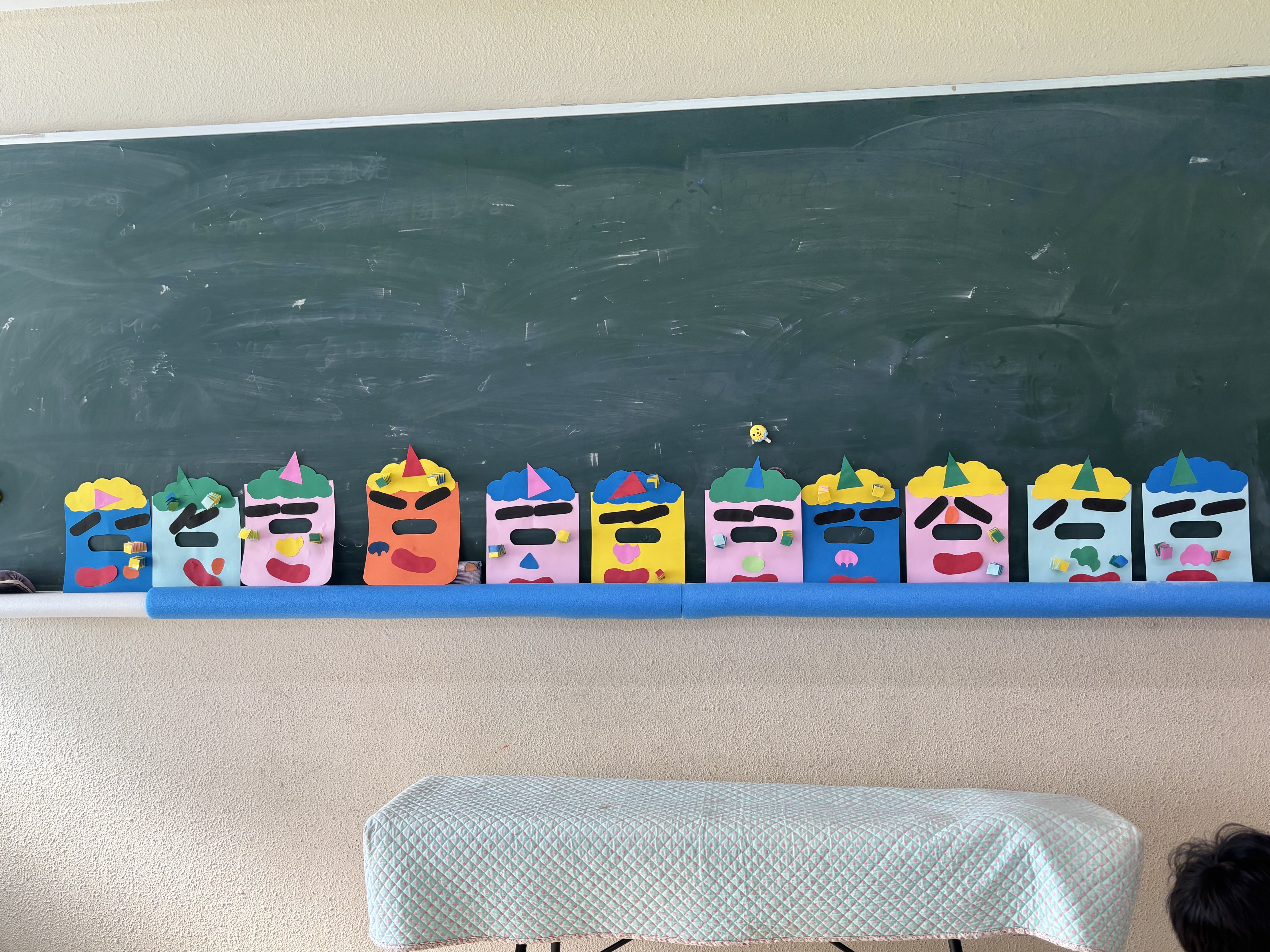 なんてかわいらしい鬼でしょう( *´艸`)親子体操では、このお面をかぶって頑張ってもらいます!