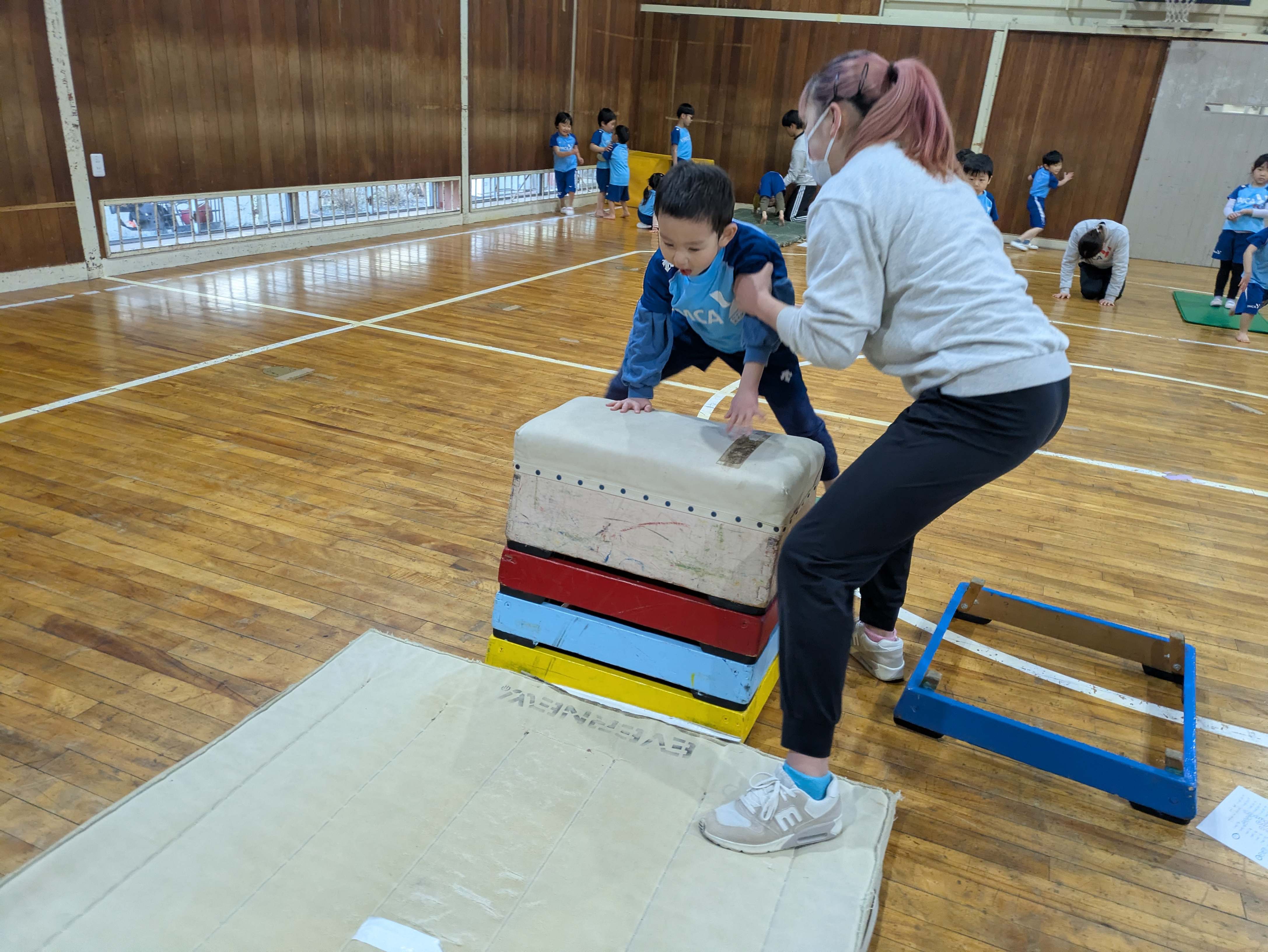 そのあと、跳び箱とマットをしました。