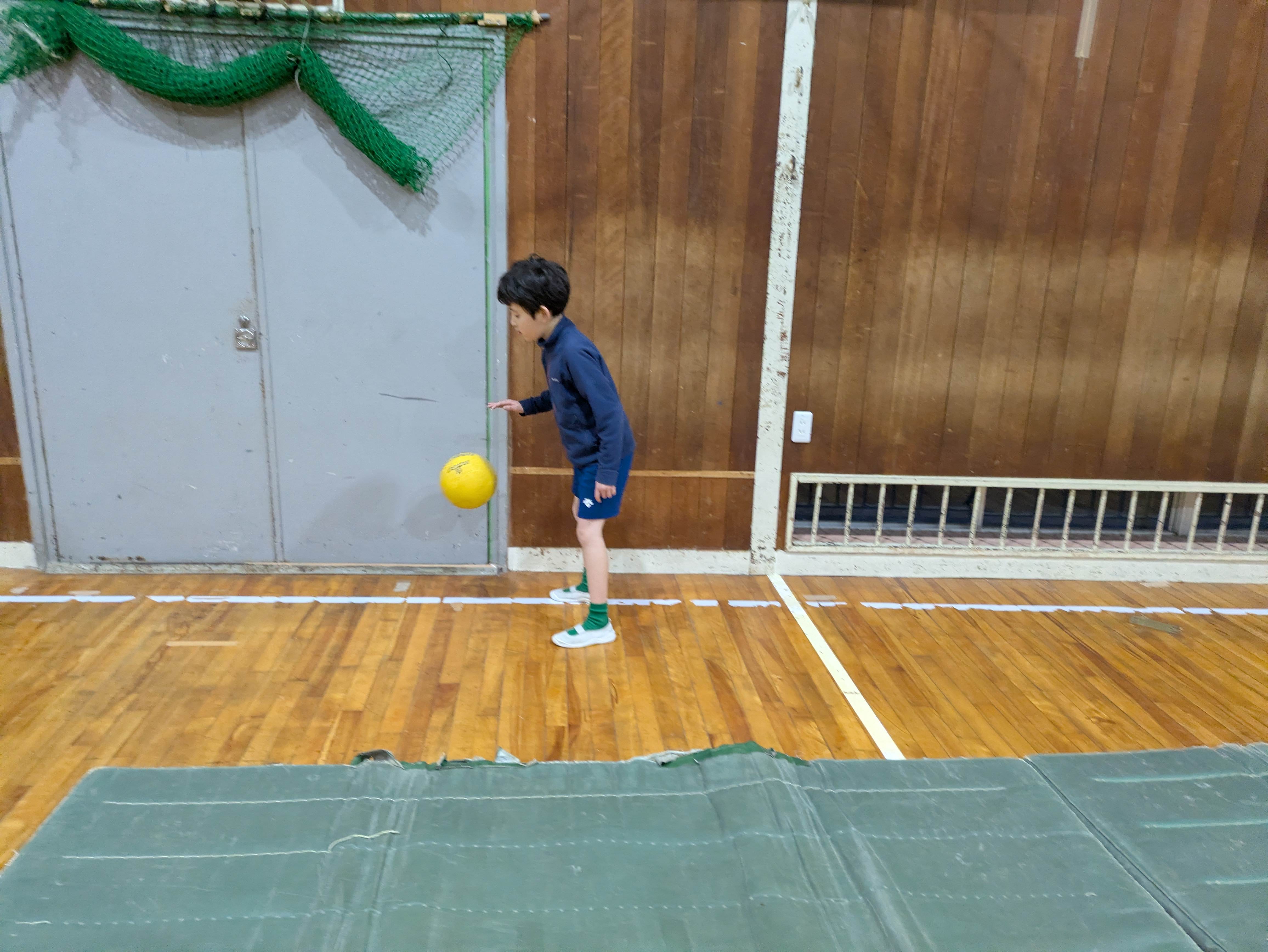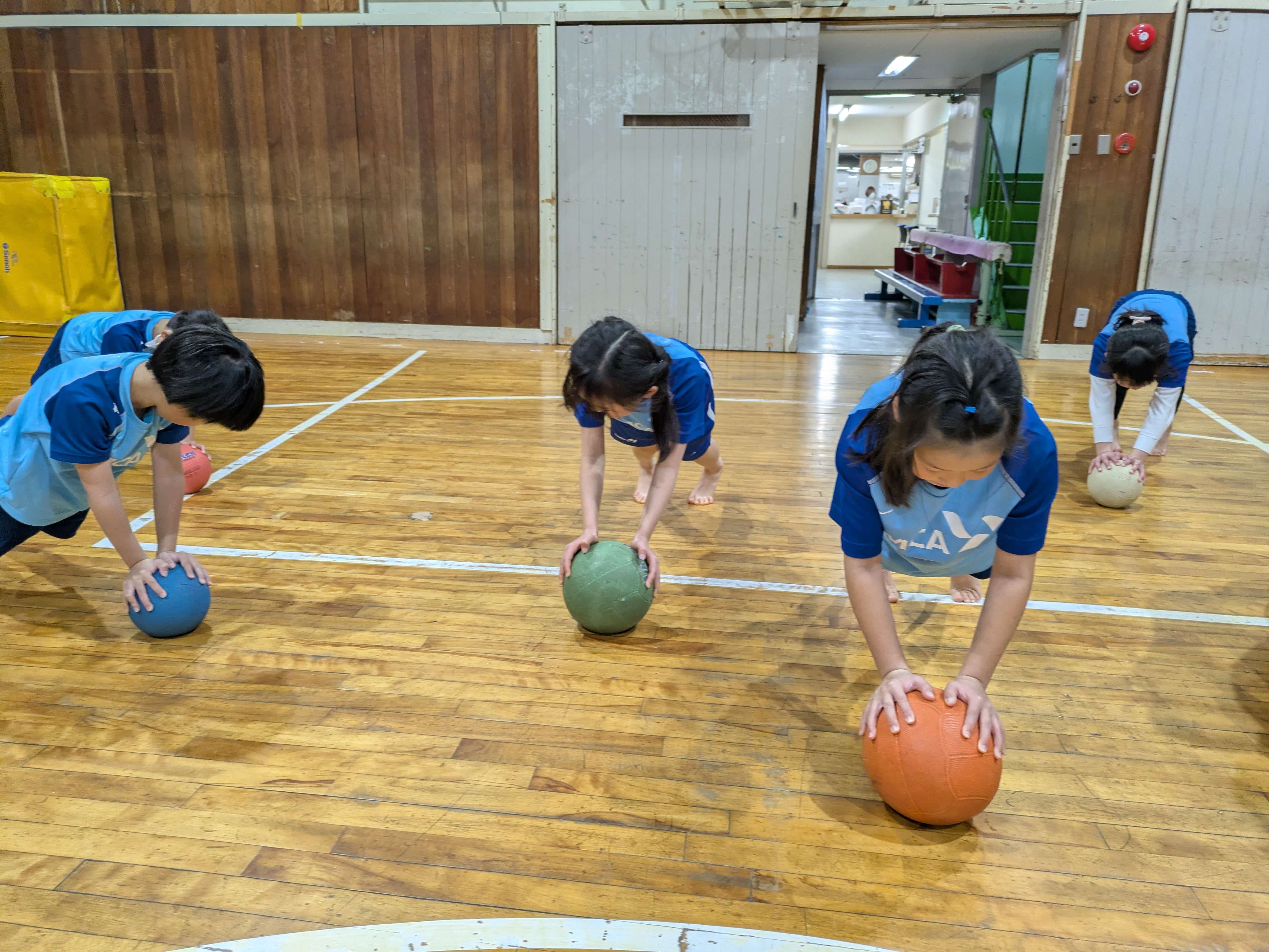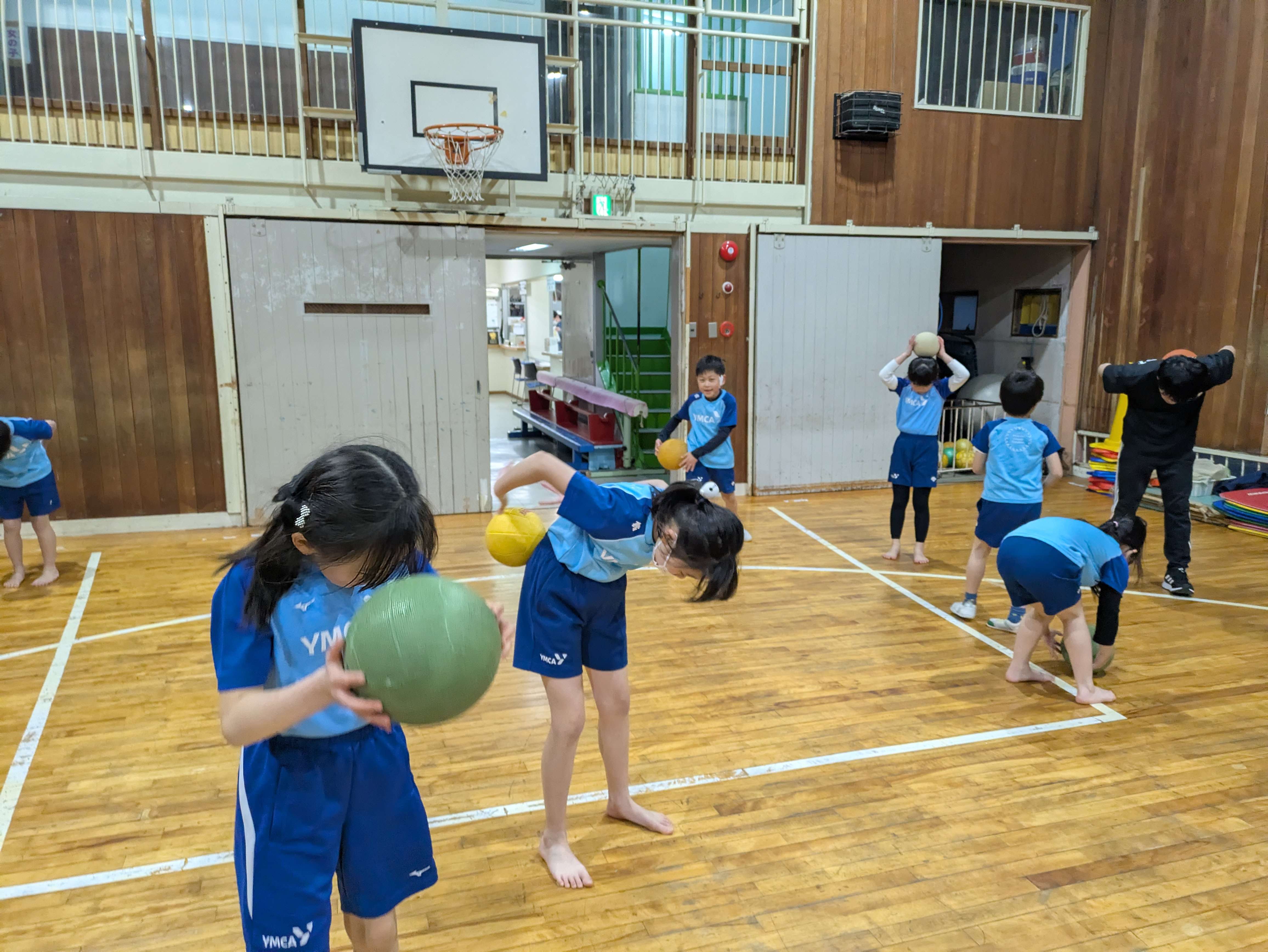 ボールに座ってバランスを取ったり、ドリブルをしたり、背中転がしは難しかったですが、だんだん上手に転がすことができてキャッチまでできていましたね!