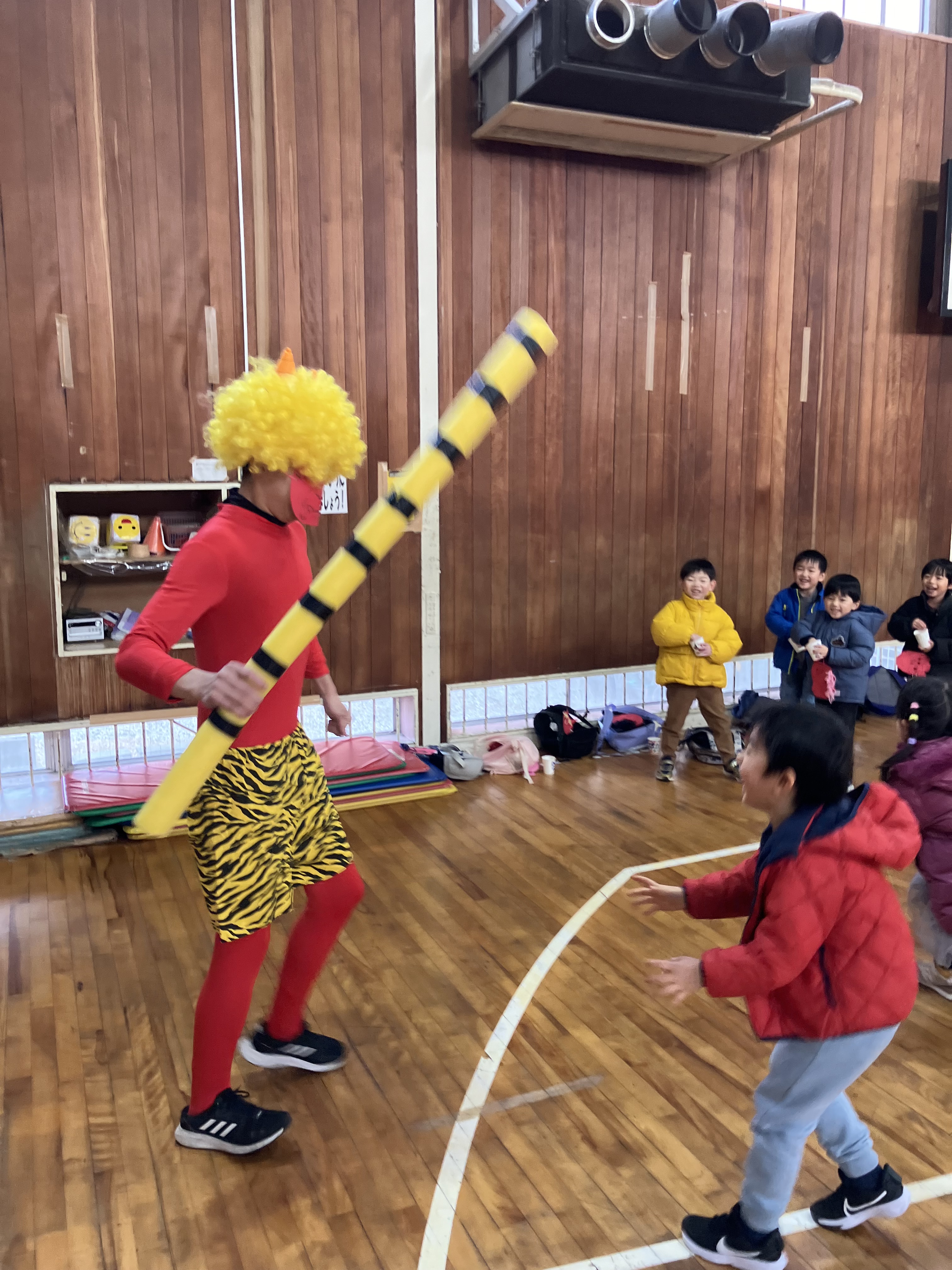 「鬼は外!福は内!」と元気な掛け声が体育館いっぱいに響き、鬼に立ち向かう子どもたちのたくましい姿が見られました📣