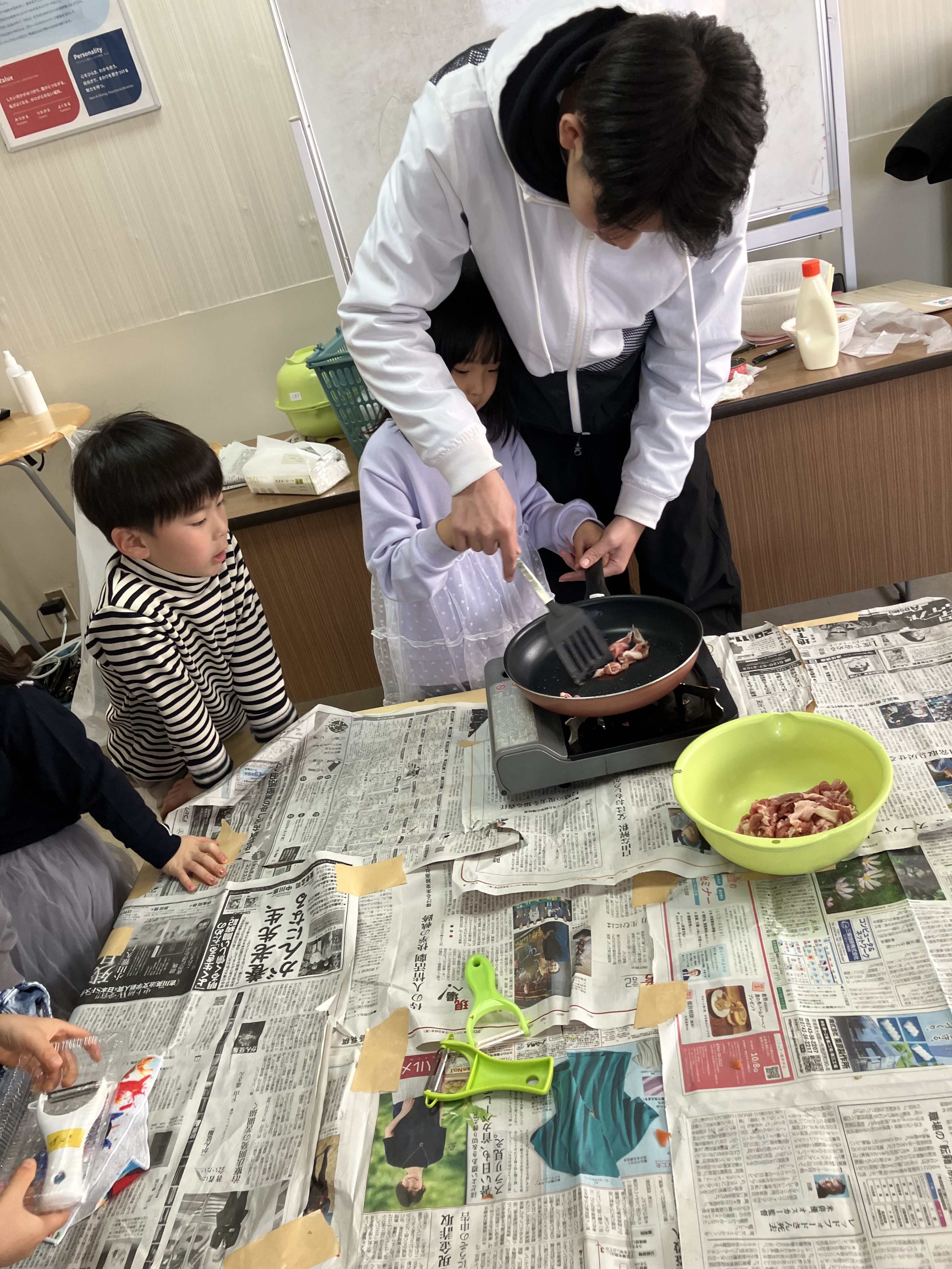 ピーラーや包丁を使って野菜の皮を剥いだり切ったり、お肉を炒めたりと、少し難しい工程にも意欲的に取り組む姿が見られました🥕