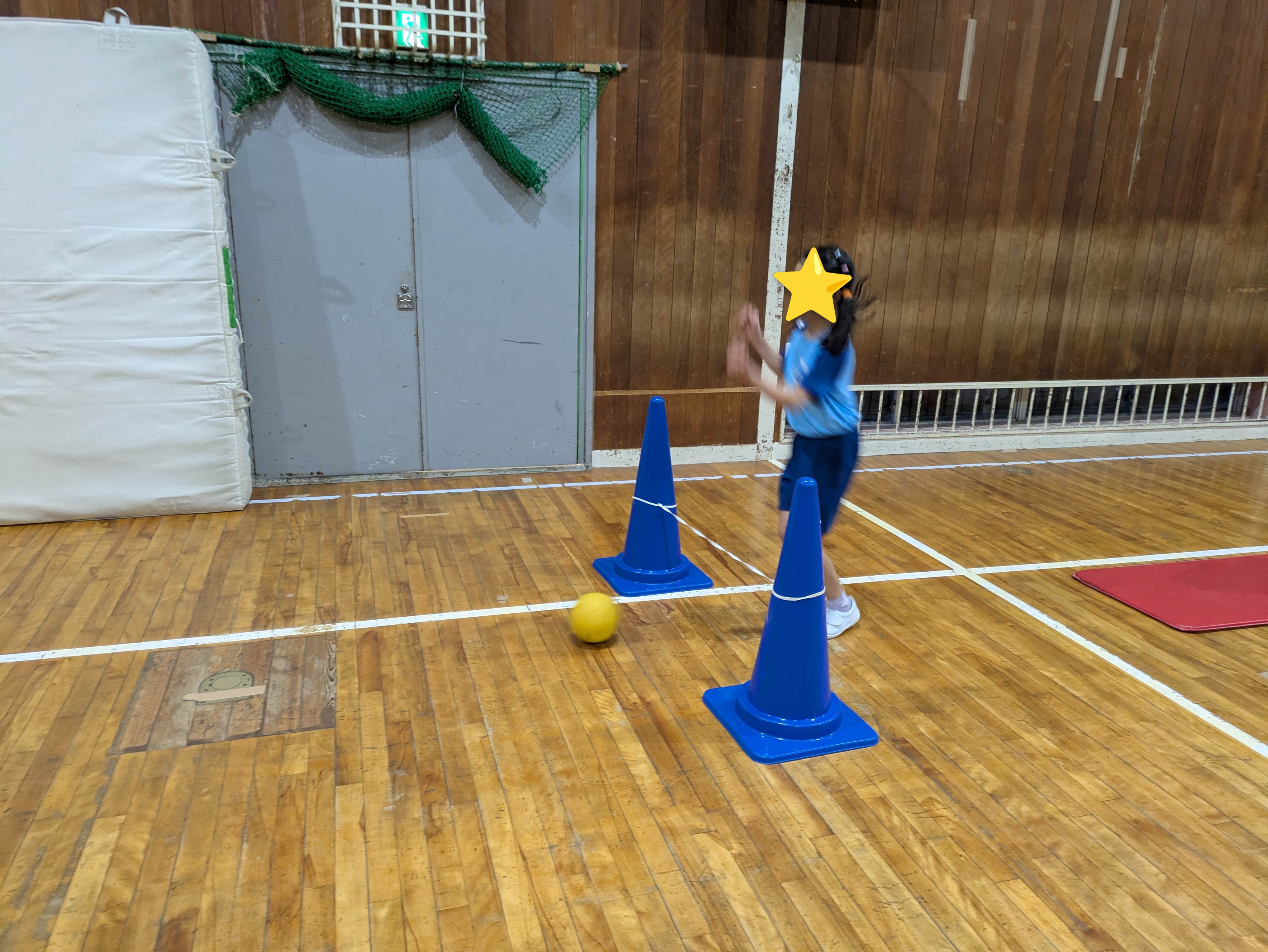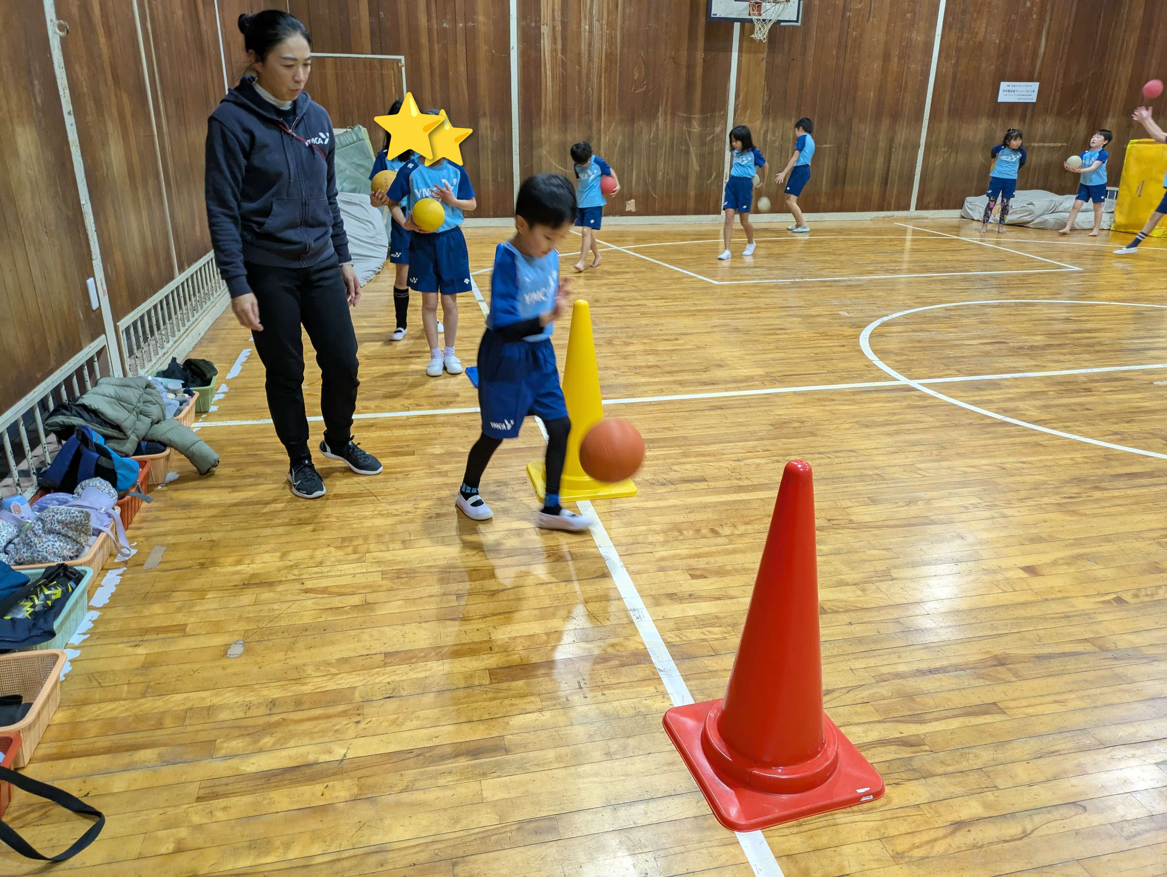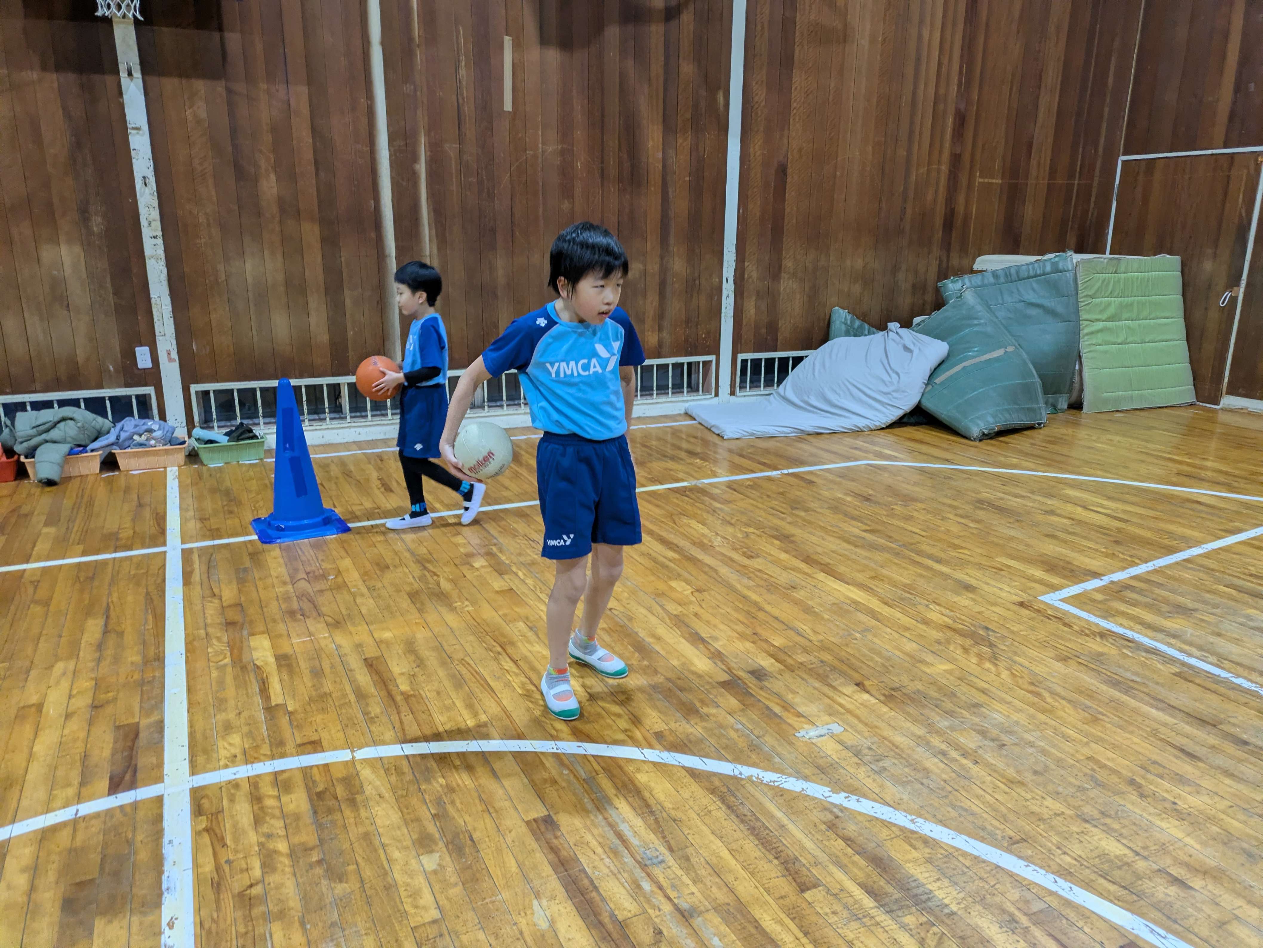そのあと、バスケットゴールにシュートや投げてキャッチなどのボールサーキットをしました。