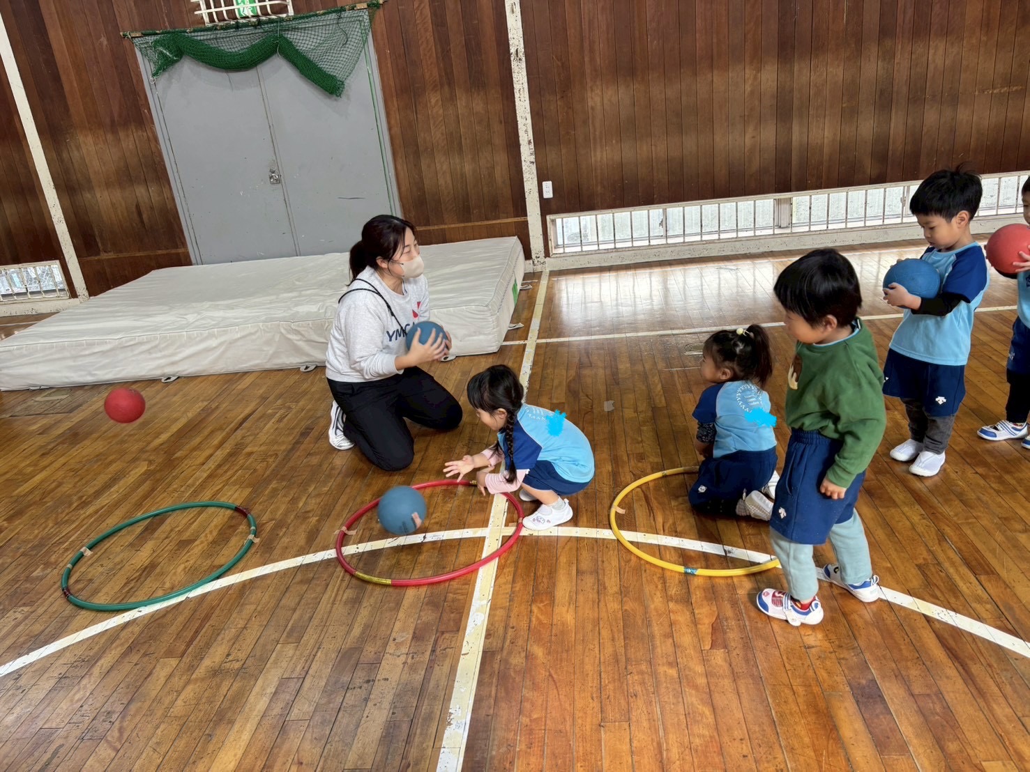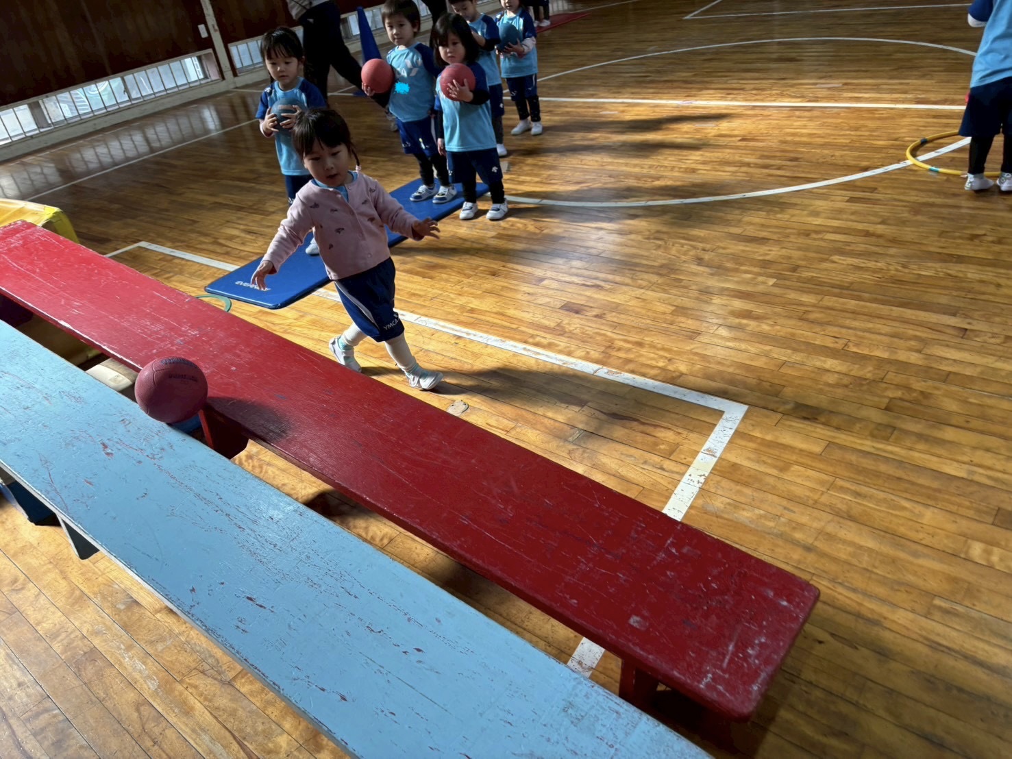 フープの中でボールをついてキャッチ!ここは難しかったね!