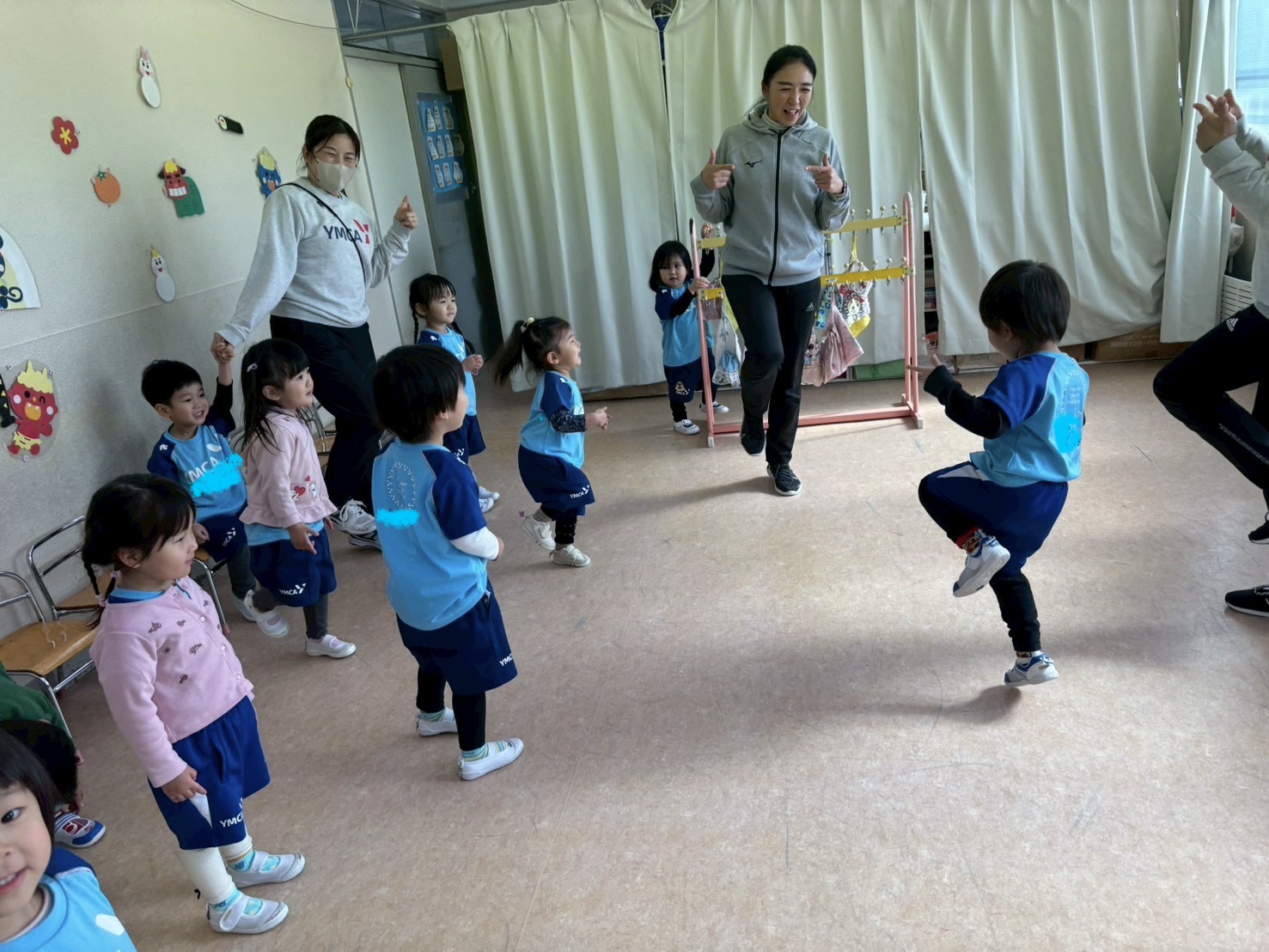 お部屋ではぴよぴよちゃん体操をしました。この前恥ずかしくてできなかったお友だちもやってくれました。全体的なノリも今日の方がいい感じでしたよ(^^♪とってもかわいかったです!