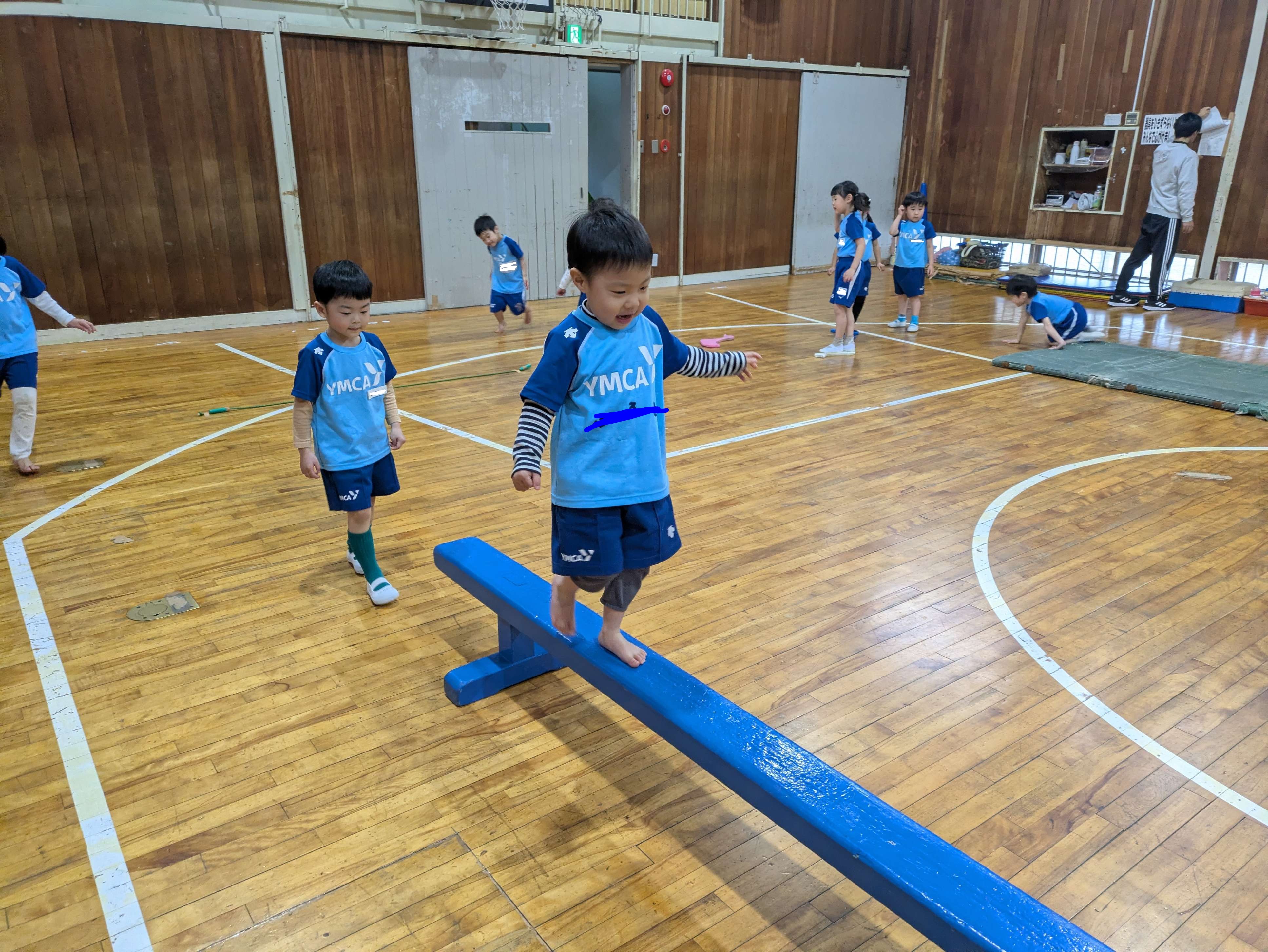 ゴムをくぐったり、マットでくまをしたり、平均台では手でバランスを取りながら、上手に渡ることができました!