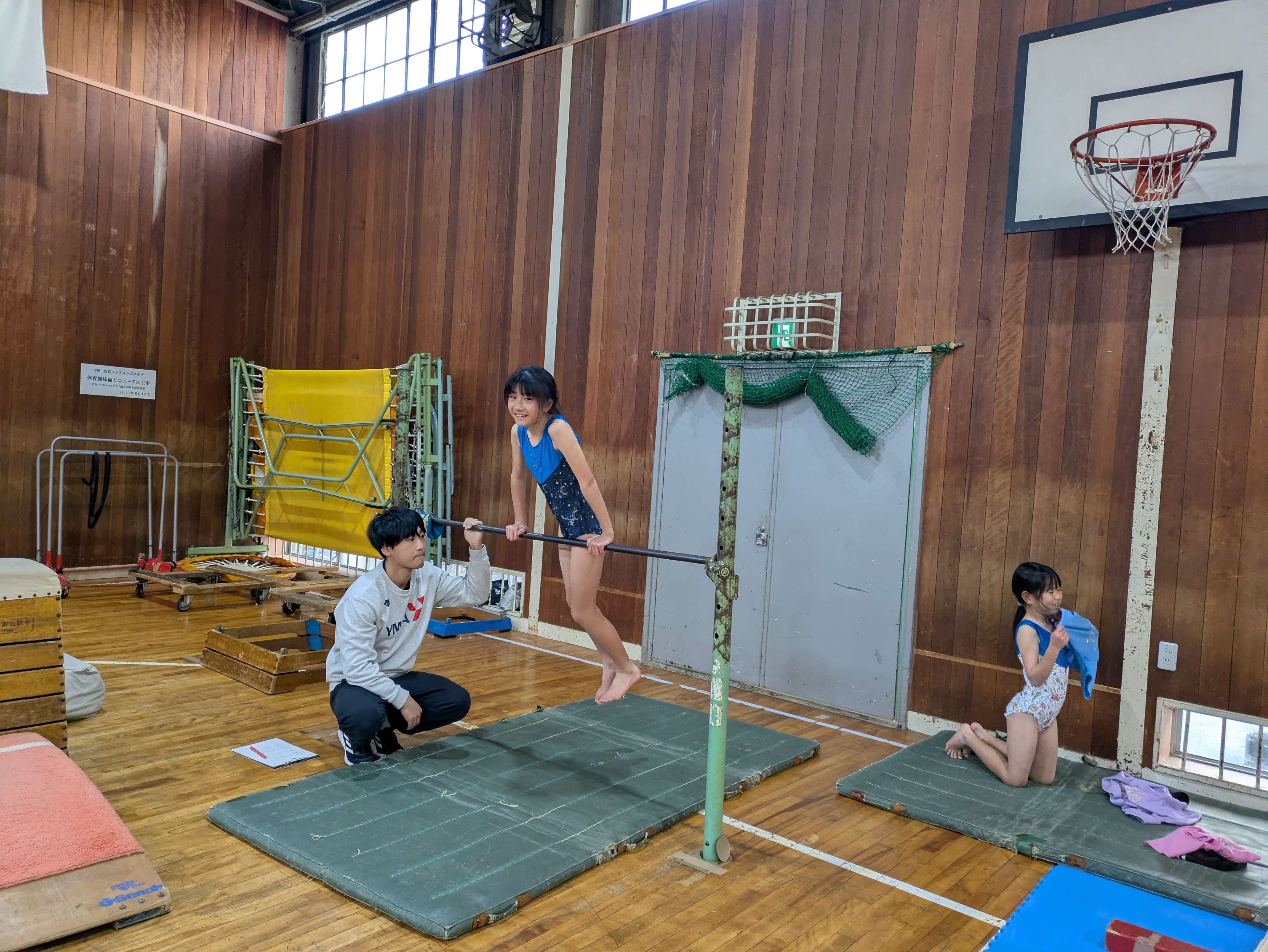 鉄棒では、勢いをつけると足を開いてしまっているので、しっかり体に力を入れてできるように頑張りましょうね!