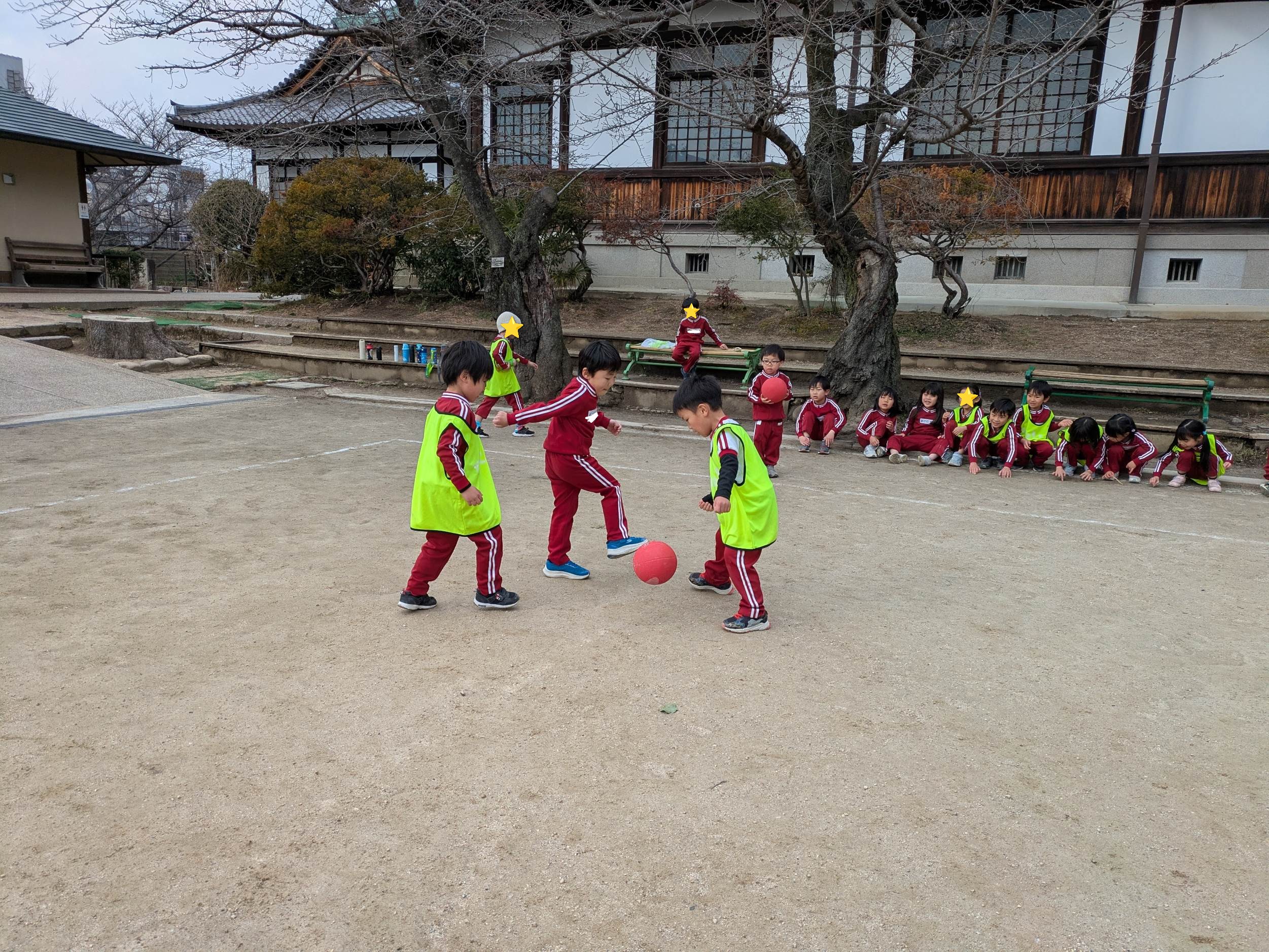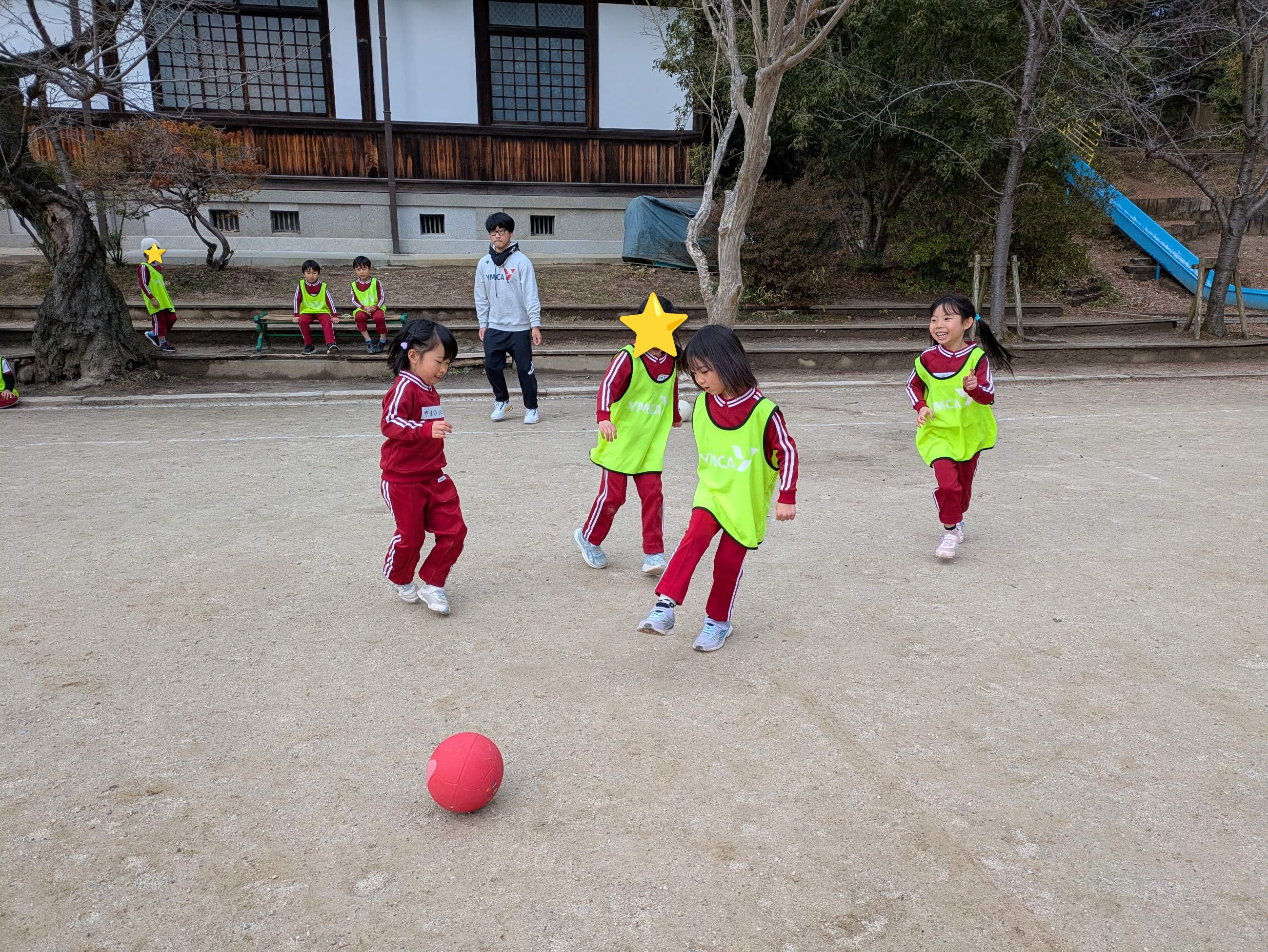 今日もぼよよん体操とマラソンをしたあと、サッカーをしました。