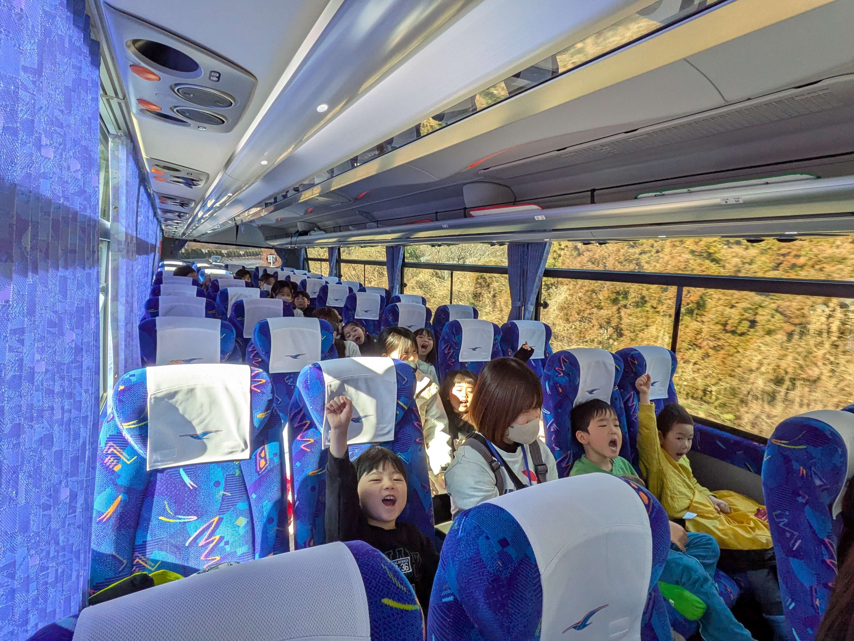 はじめは、少し緊張していた様子でしたが、バスでの声出しゲームでは、元気いっぱいの声が聞こえました!