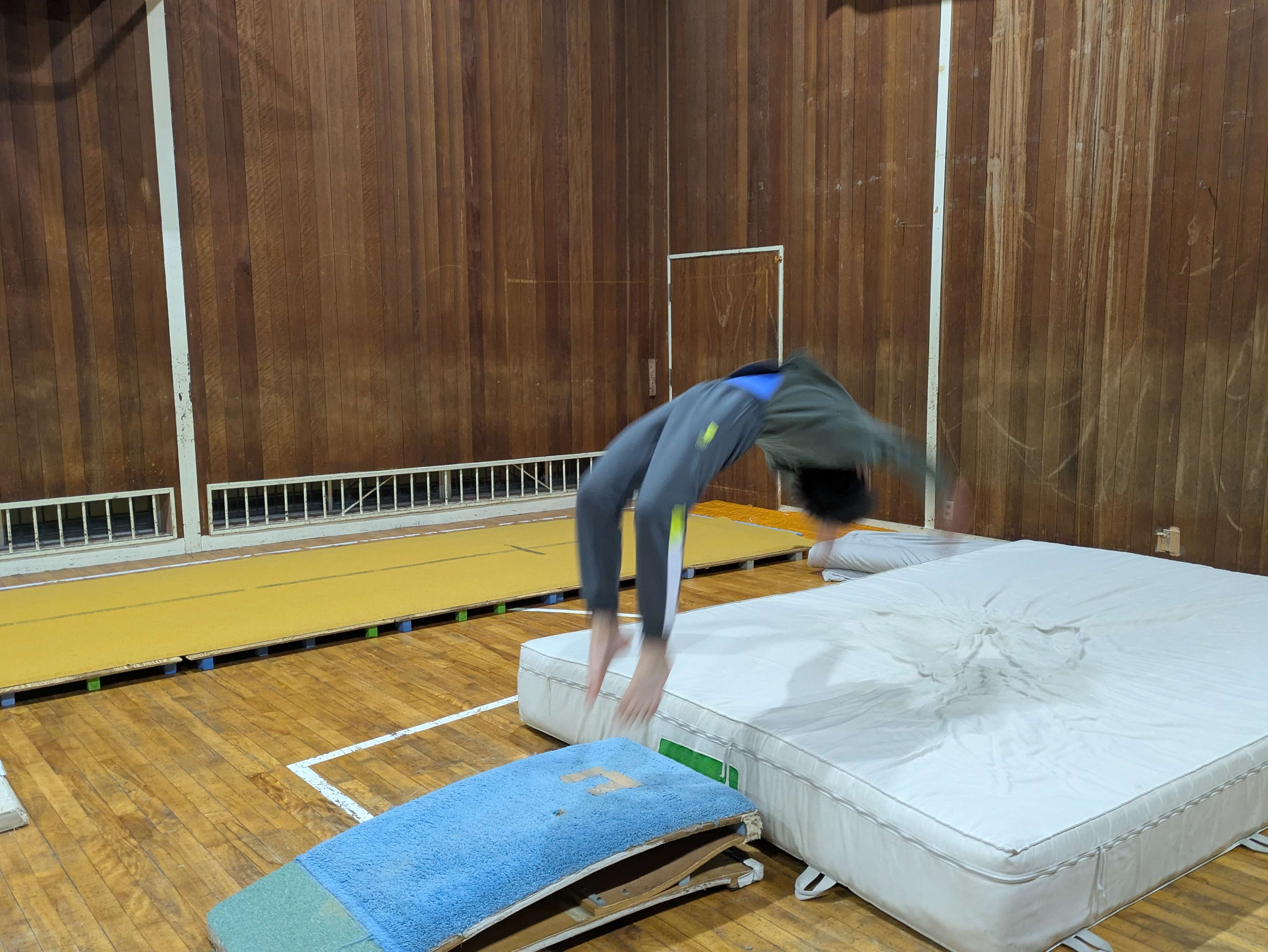 また、ロンダートで体をしっかり起こせるように練習しました。