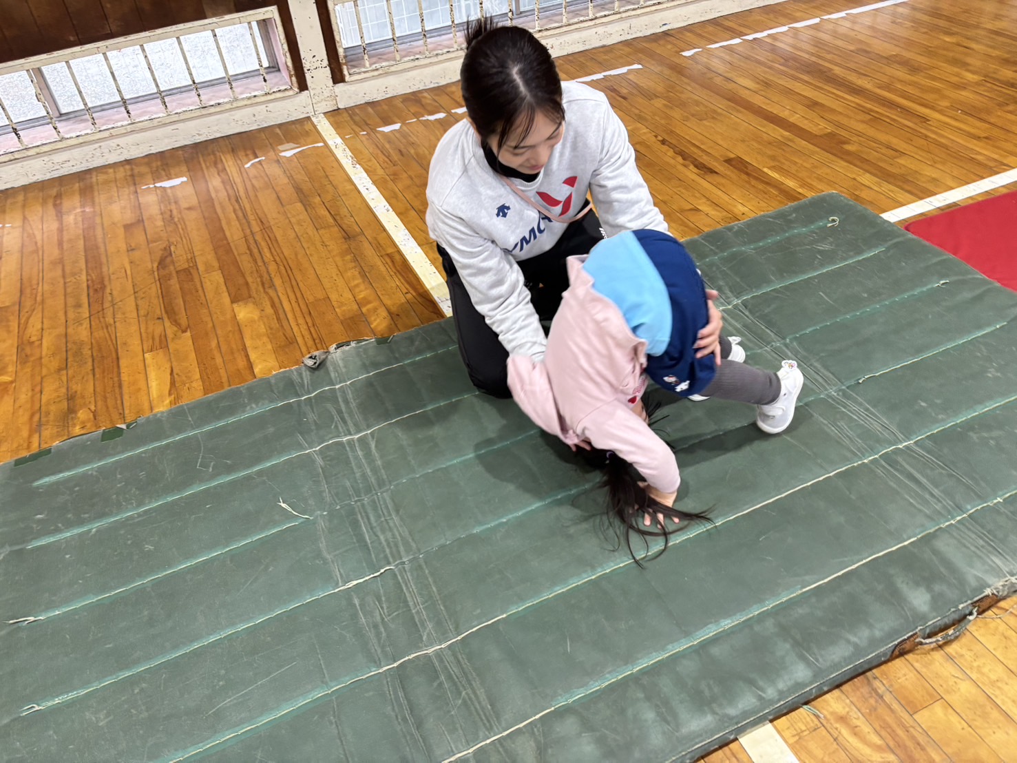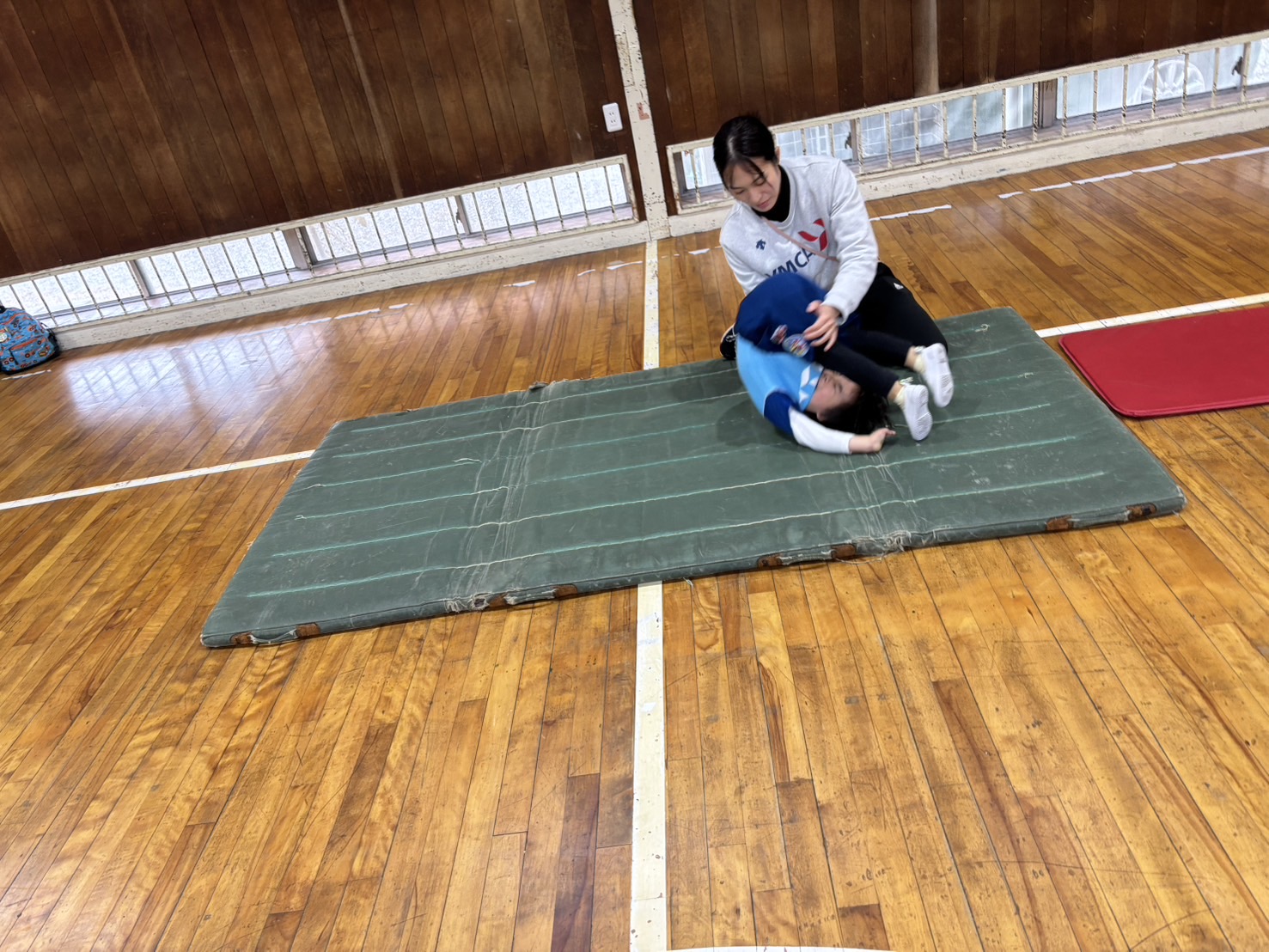 前転もしっかり手をついて頭もきれいに入って形がとってもきれいです。