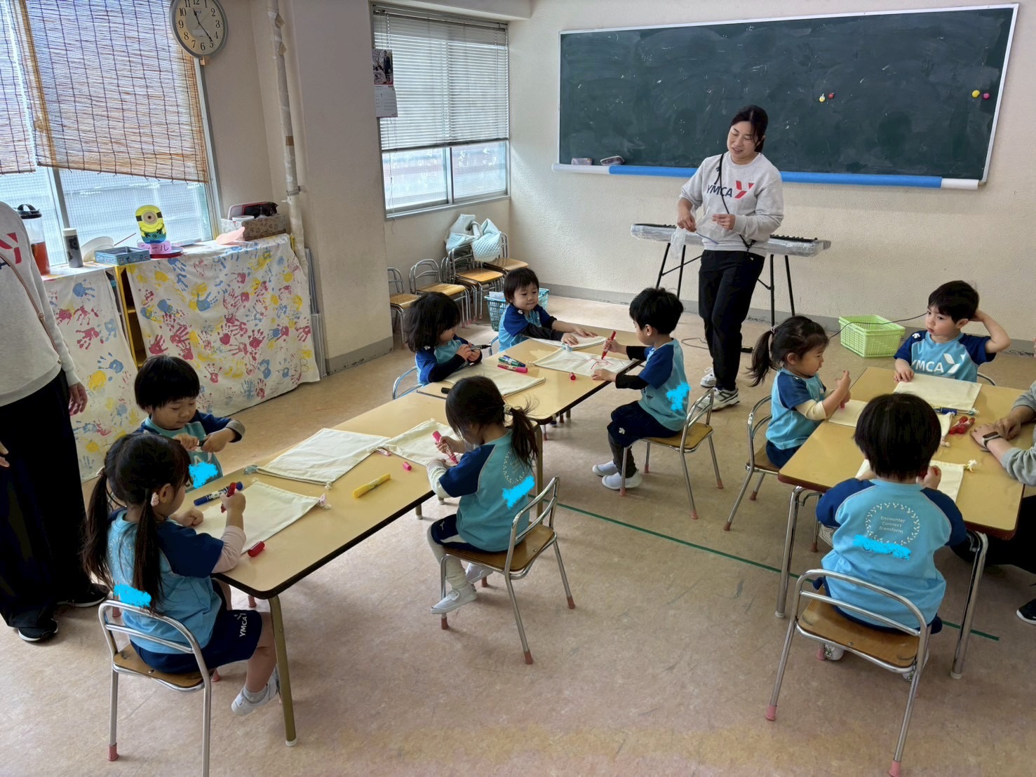 お部屋ではペンでお絵描きをしました。卒こぐまのための作品です。リーダーのお話をしっかり聞いて、作業を頑張ってくれました(^_-)-☆