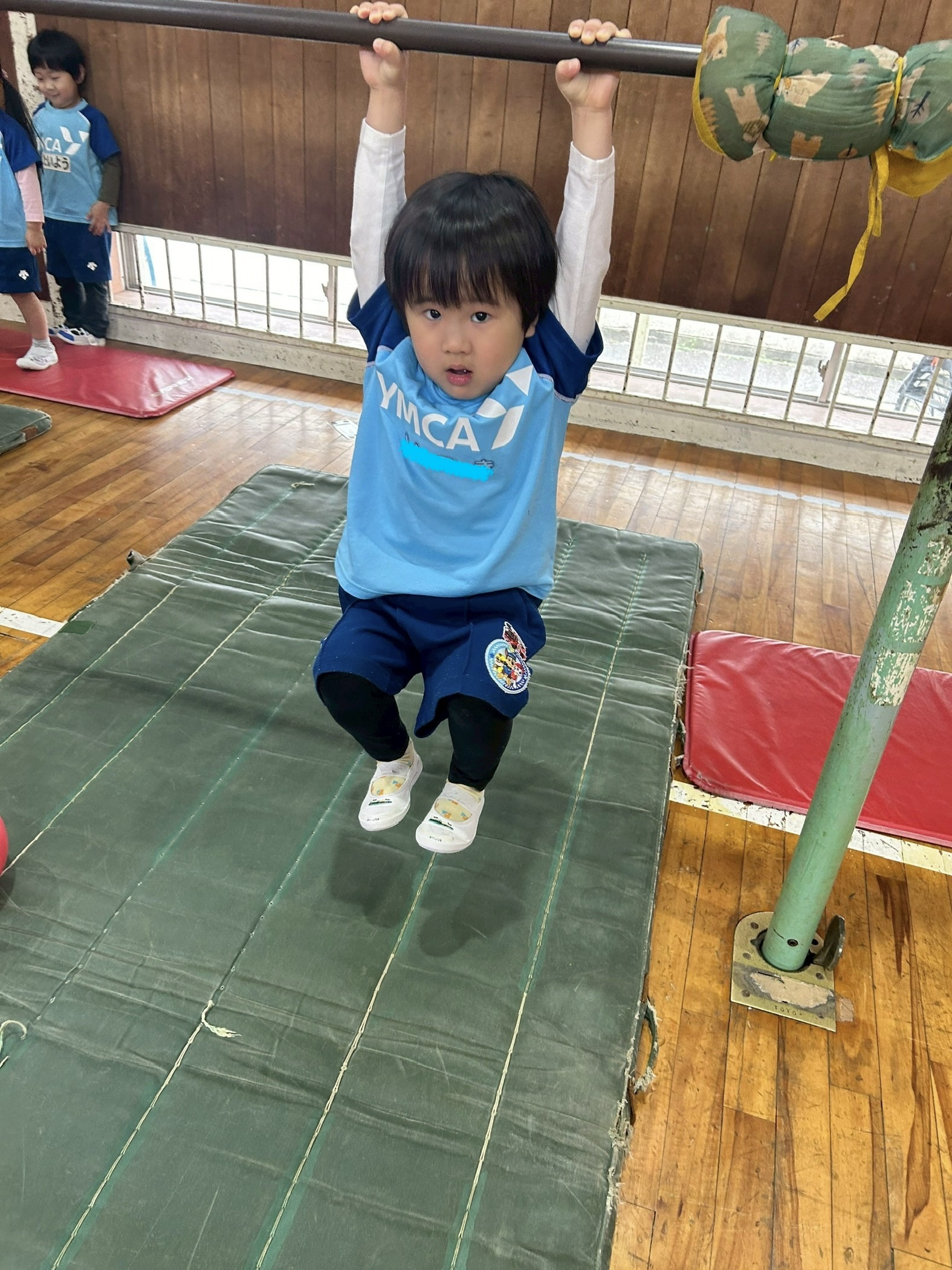 鉄棒は、豚の丸焼きか前回り降りをしました。手の力もしっかりついて、鉄棒を握る姿も頼もしい!