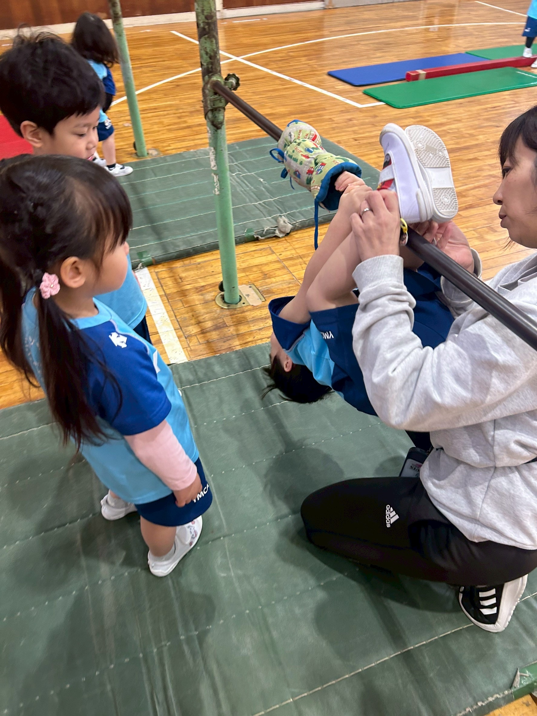 来週火曜日は、最後の親子体操です!前述のとおり、劇遊びと、跳び箱、マット、鉄棒のサーキットを見ていただきます。子どもたちの頑張りをどうぞお楽しみに~!