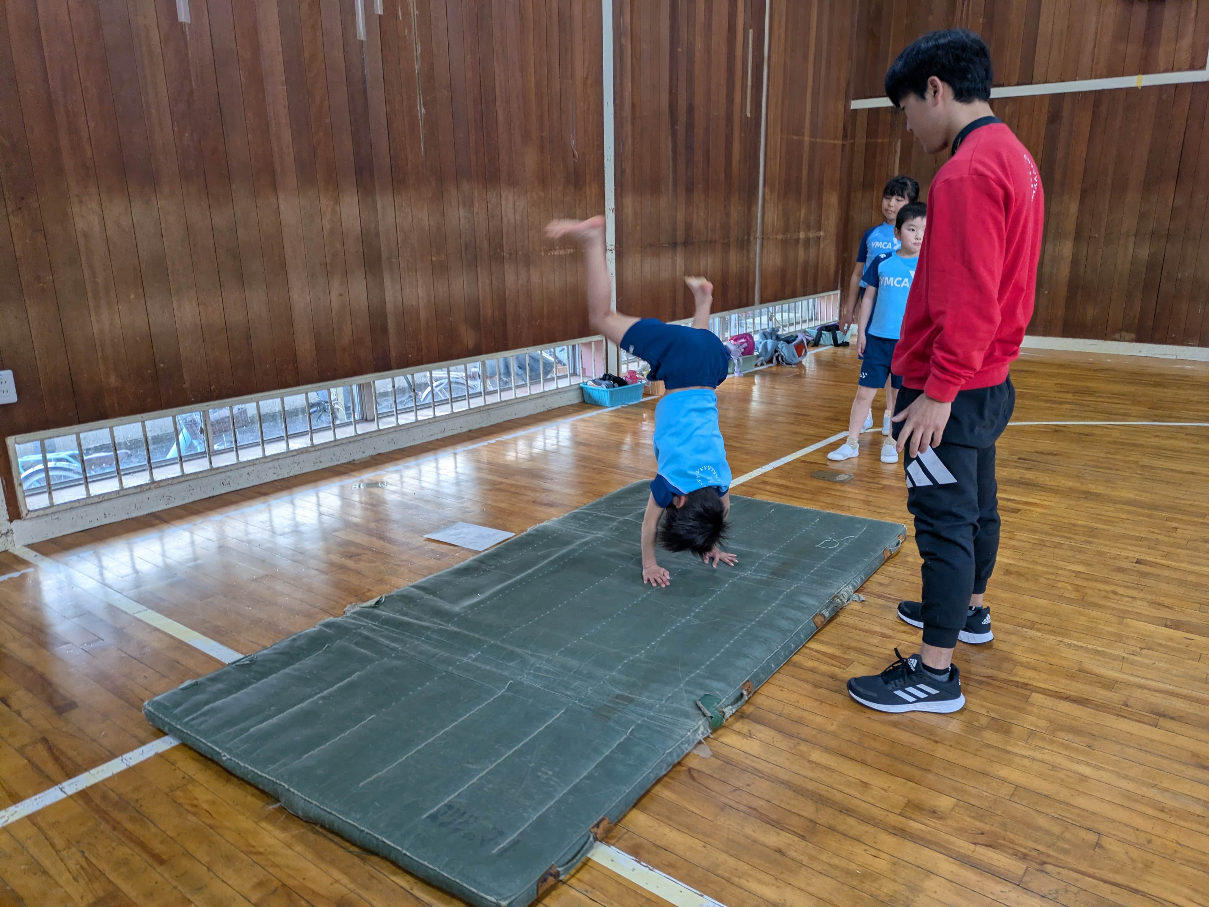 マットでは、体が小さくなりがちなので、大きく技ができるようにしましょう!