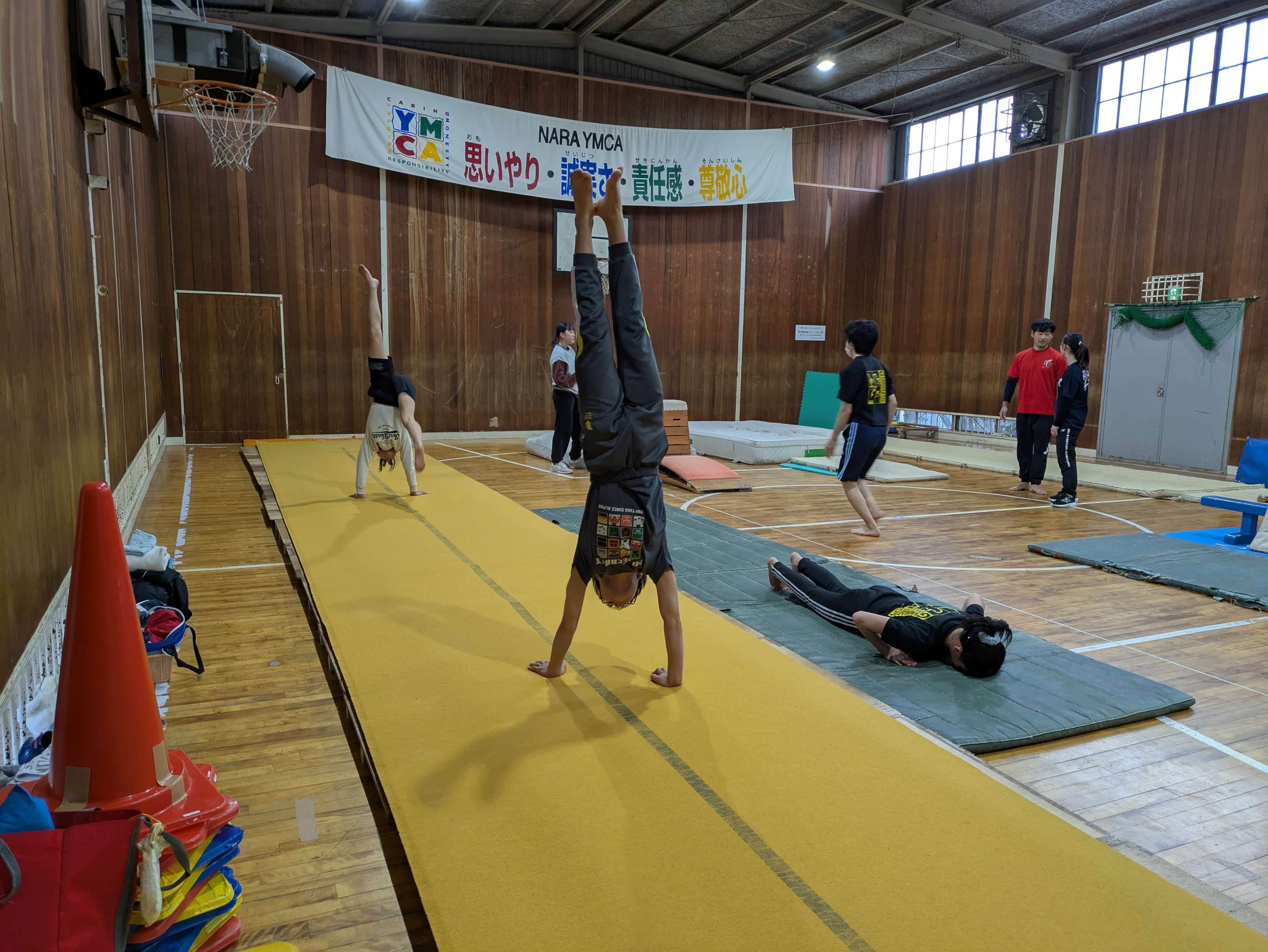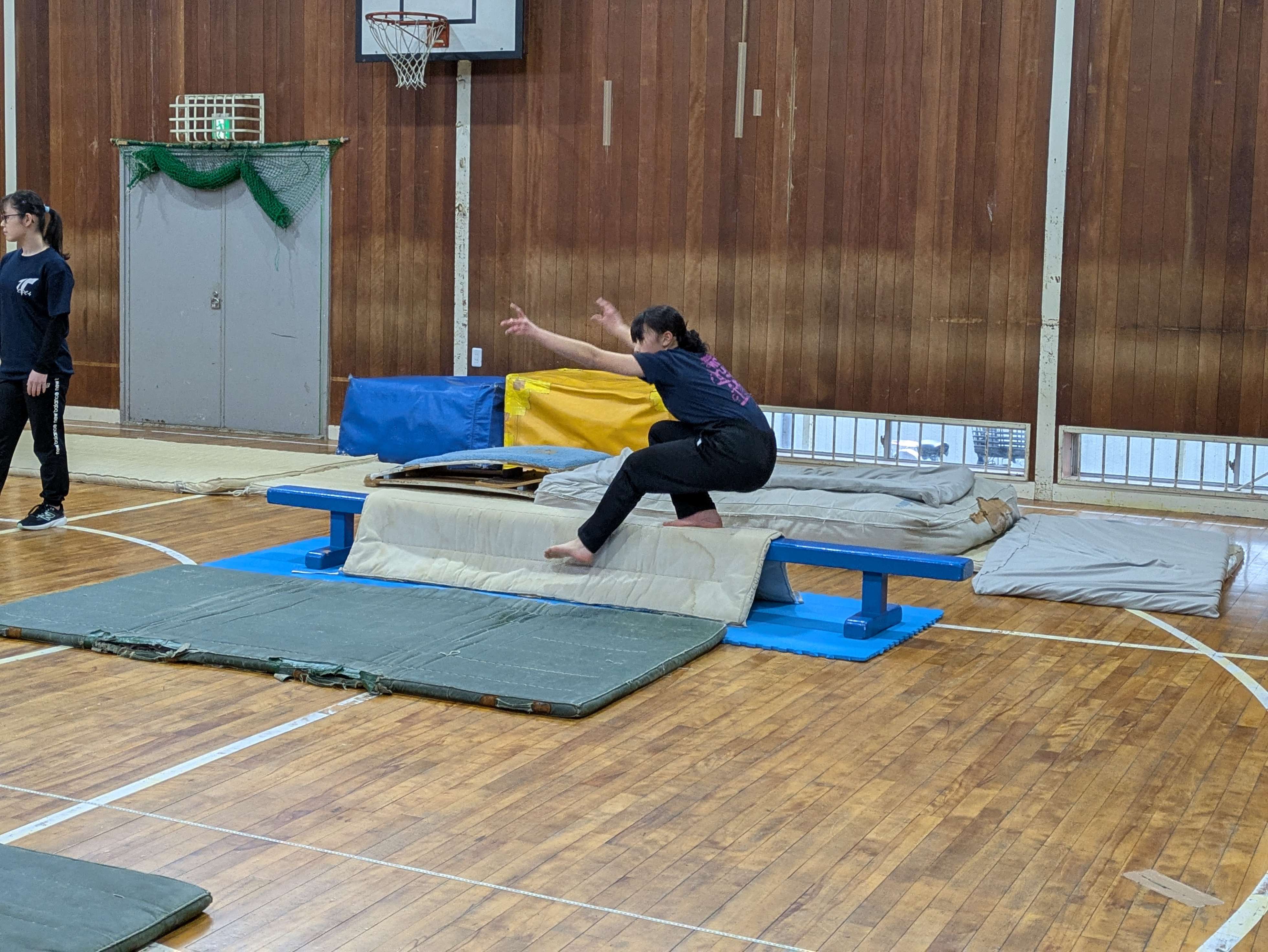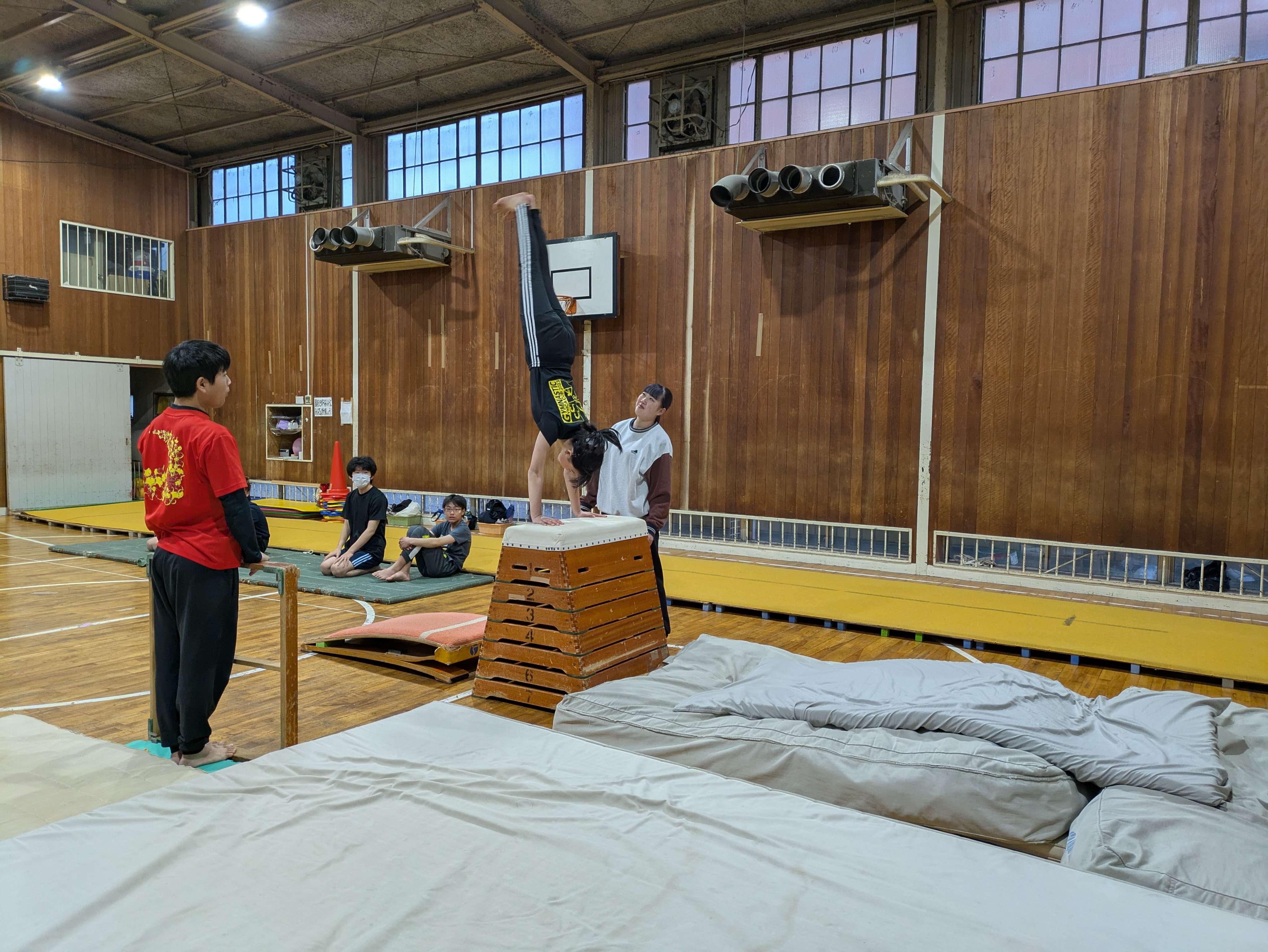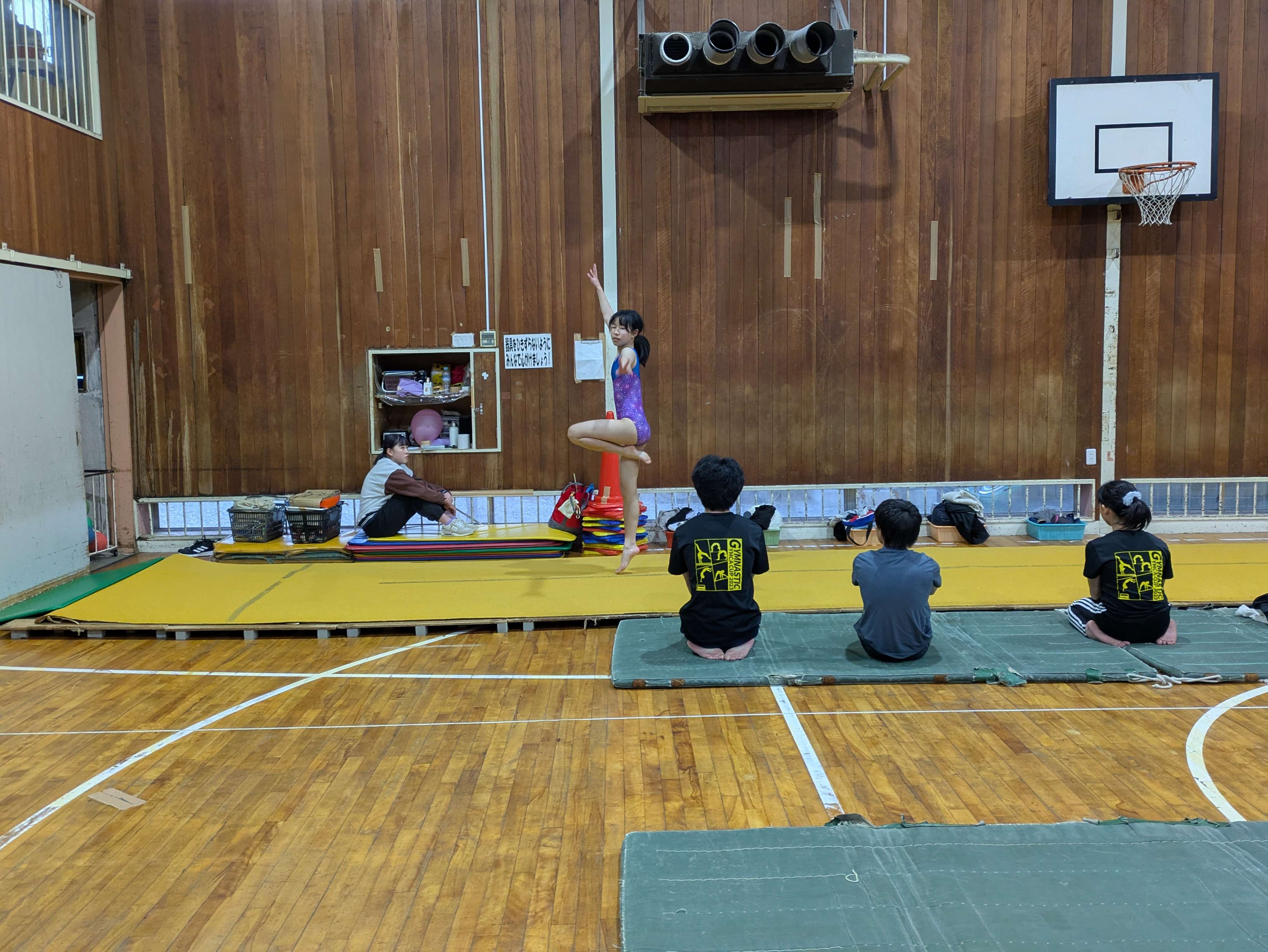 トレーニングでは、片足スクワットや倒立歩行などをしました。ロイタージャンプでは、着地までしっかり止めることができましたね!技から止まりやすい着地姿勢にもっていけるようにしていきまひょう!