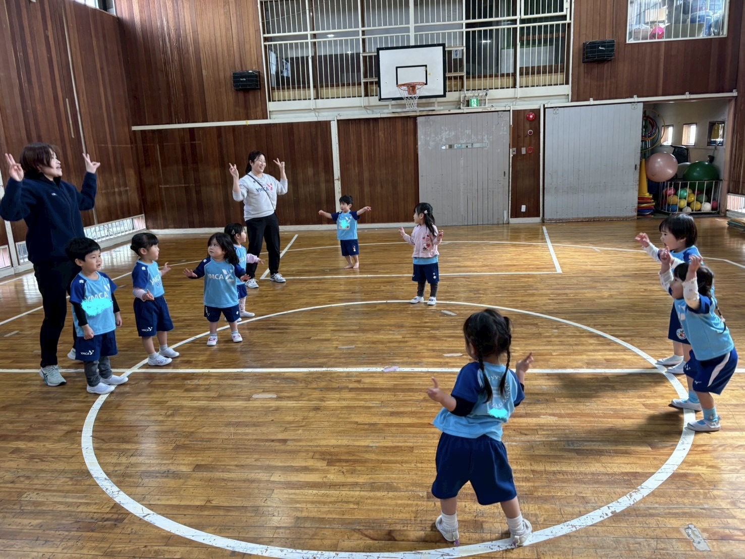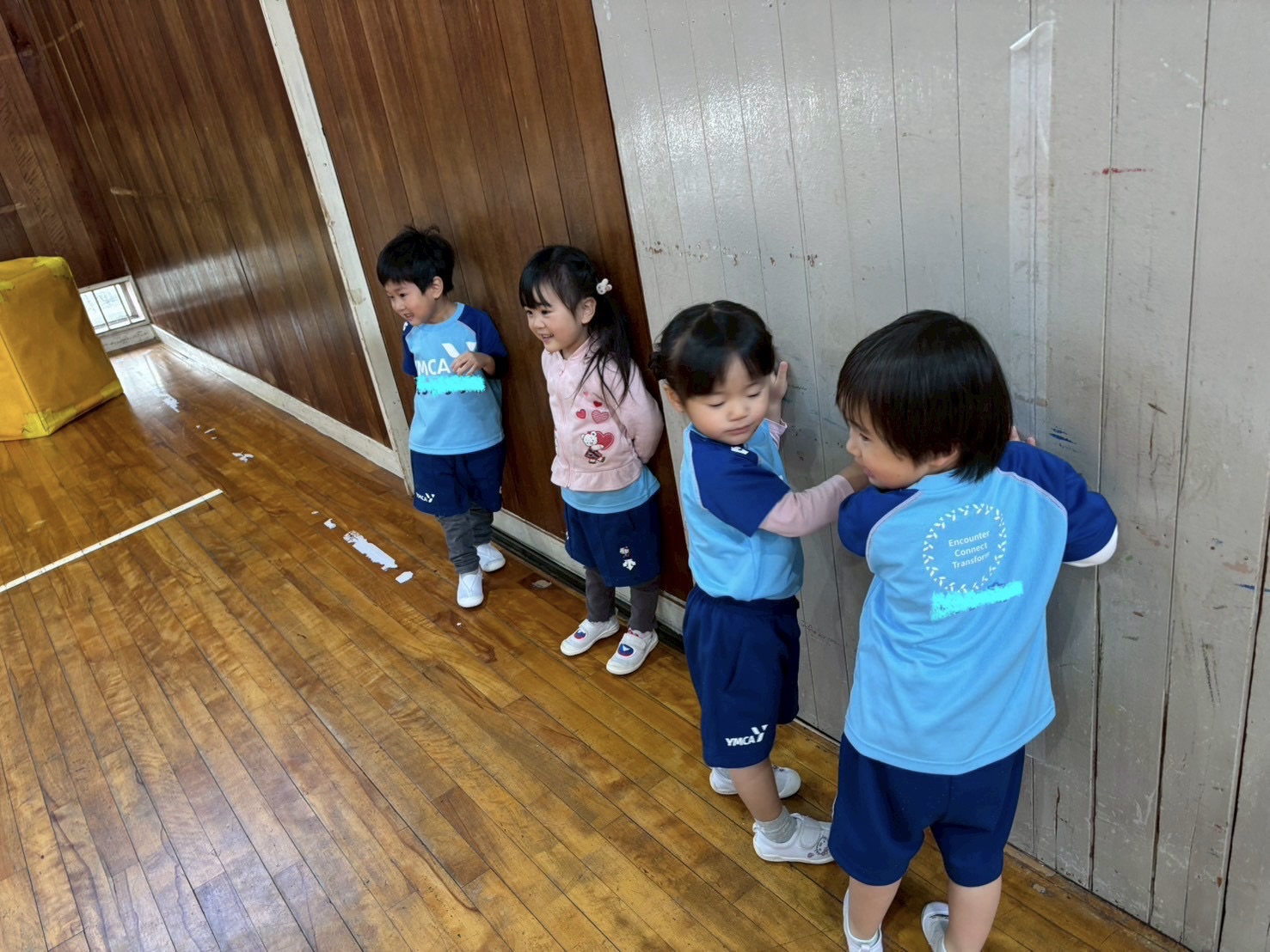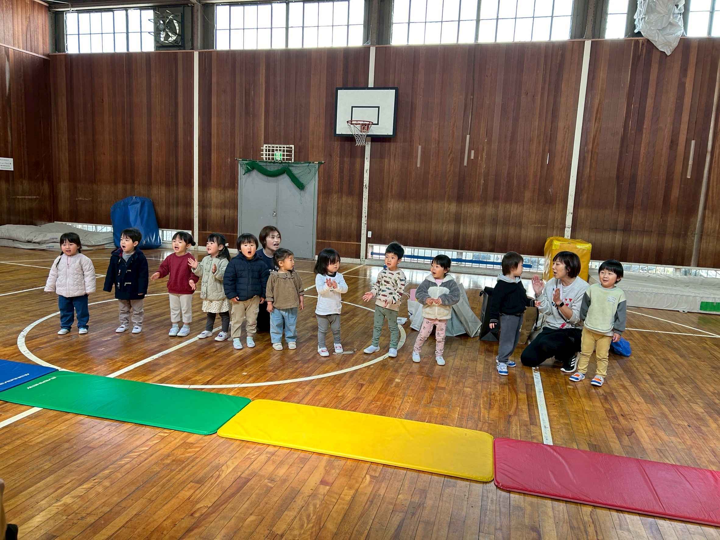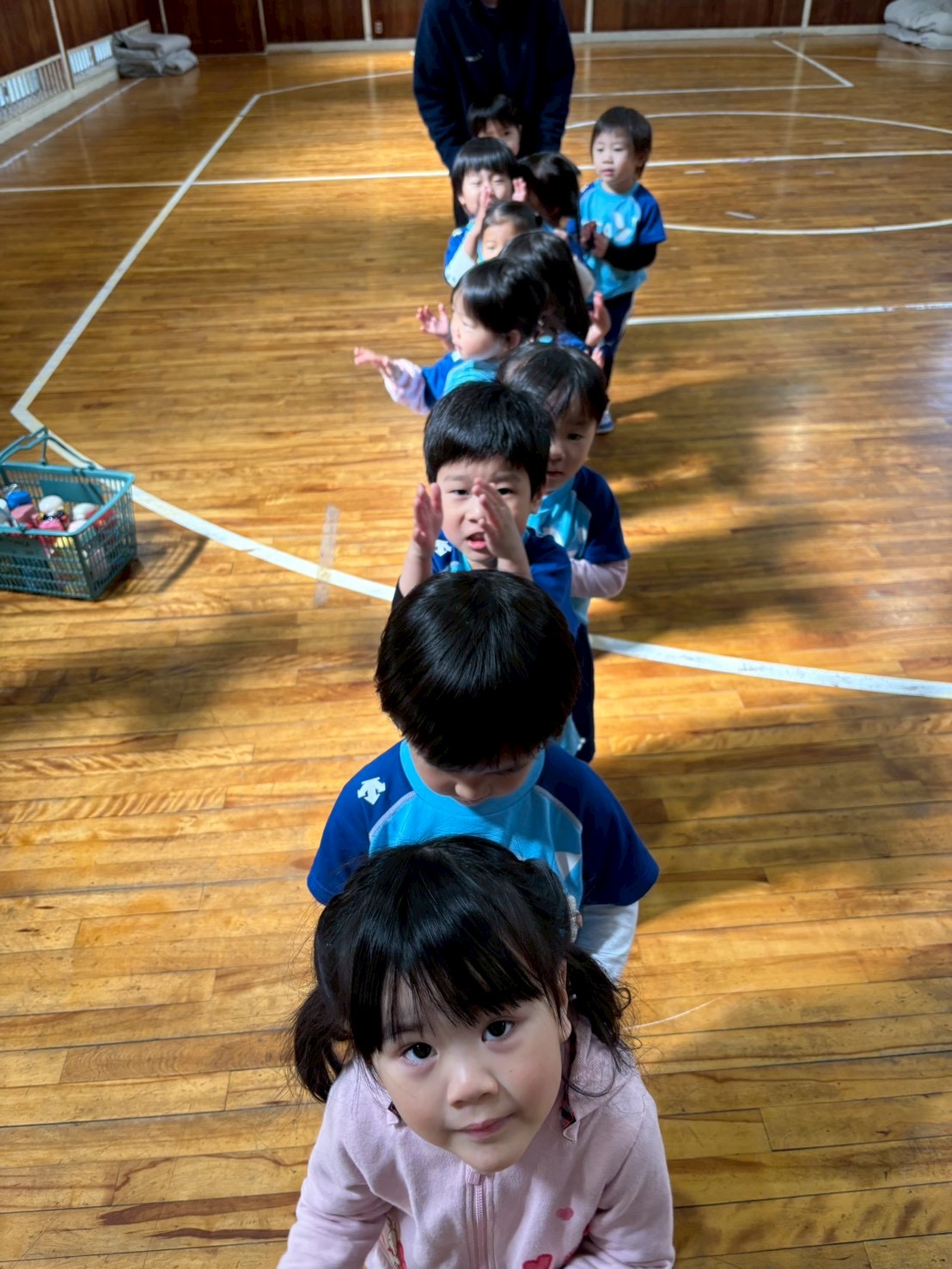 体育館からお部屋に戻る時もこんなにまっすぐ並べるようになりました!