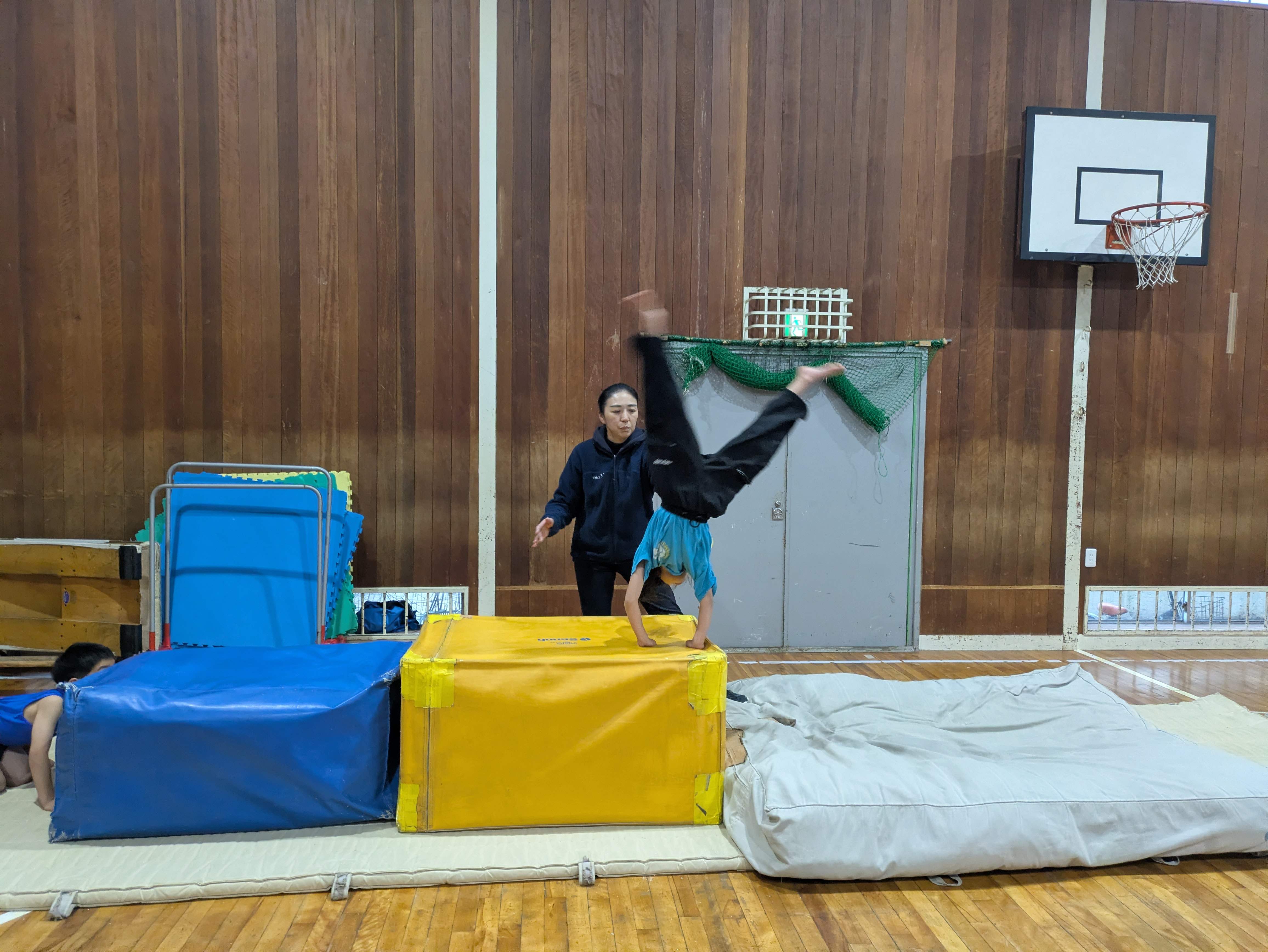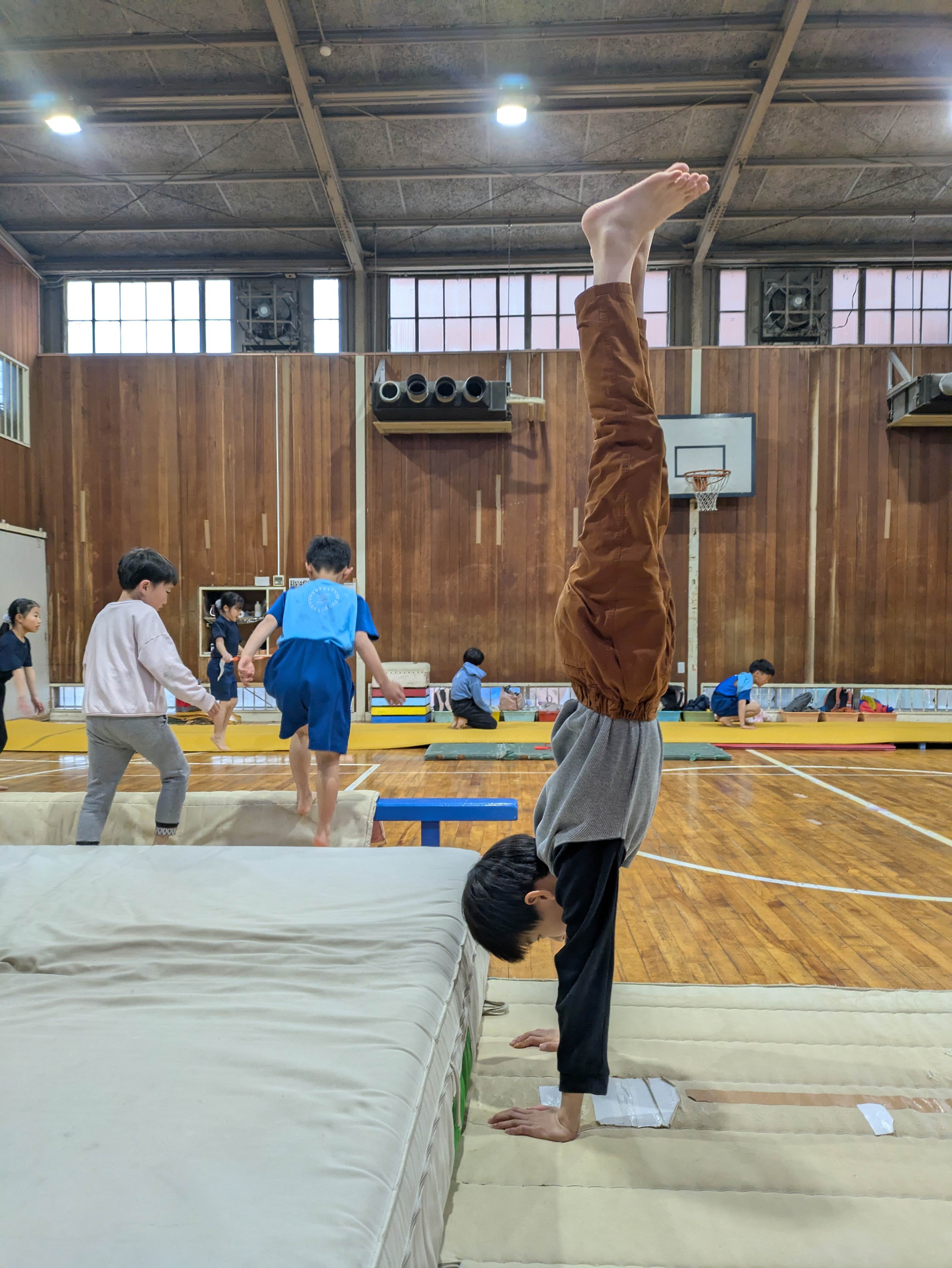 2分間トレーニングでは、倒立パタンや足入れ替えをしました。