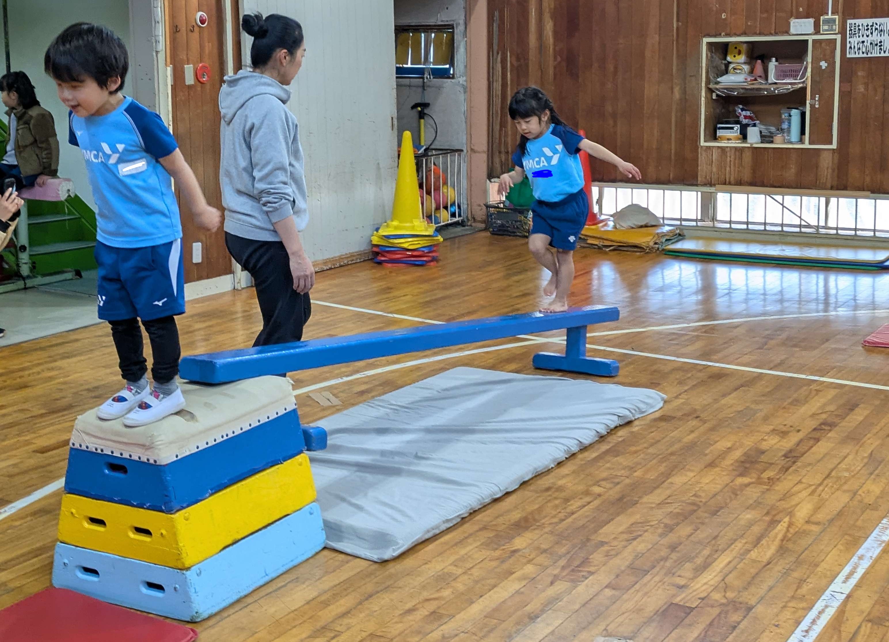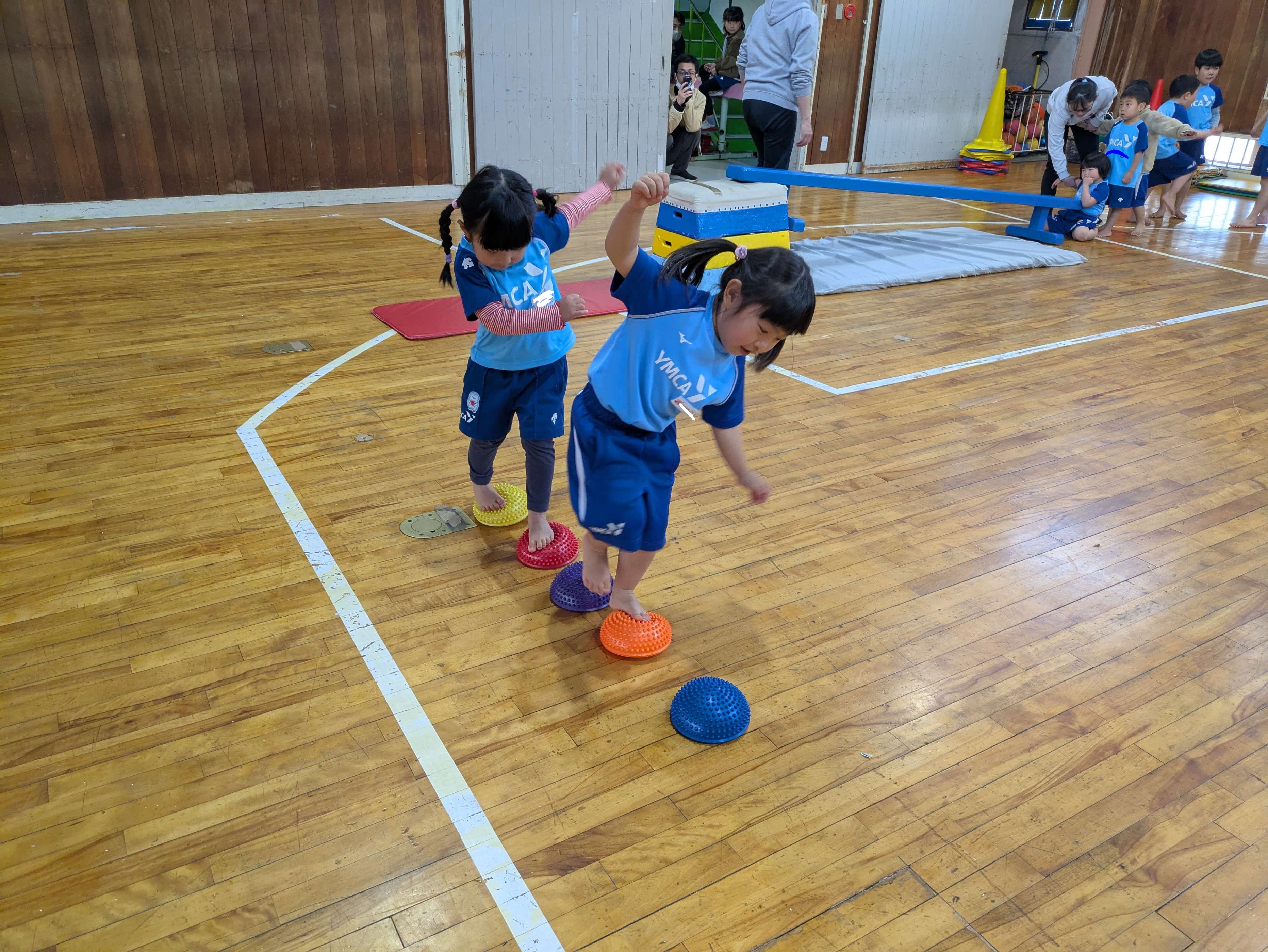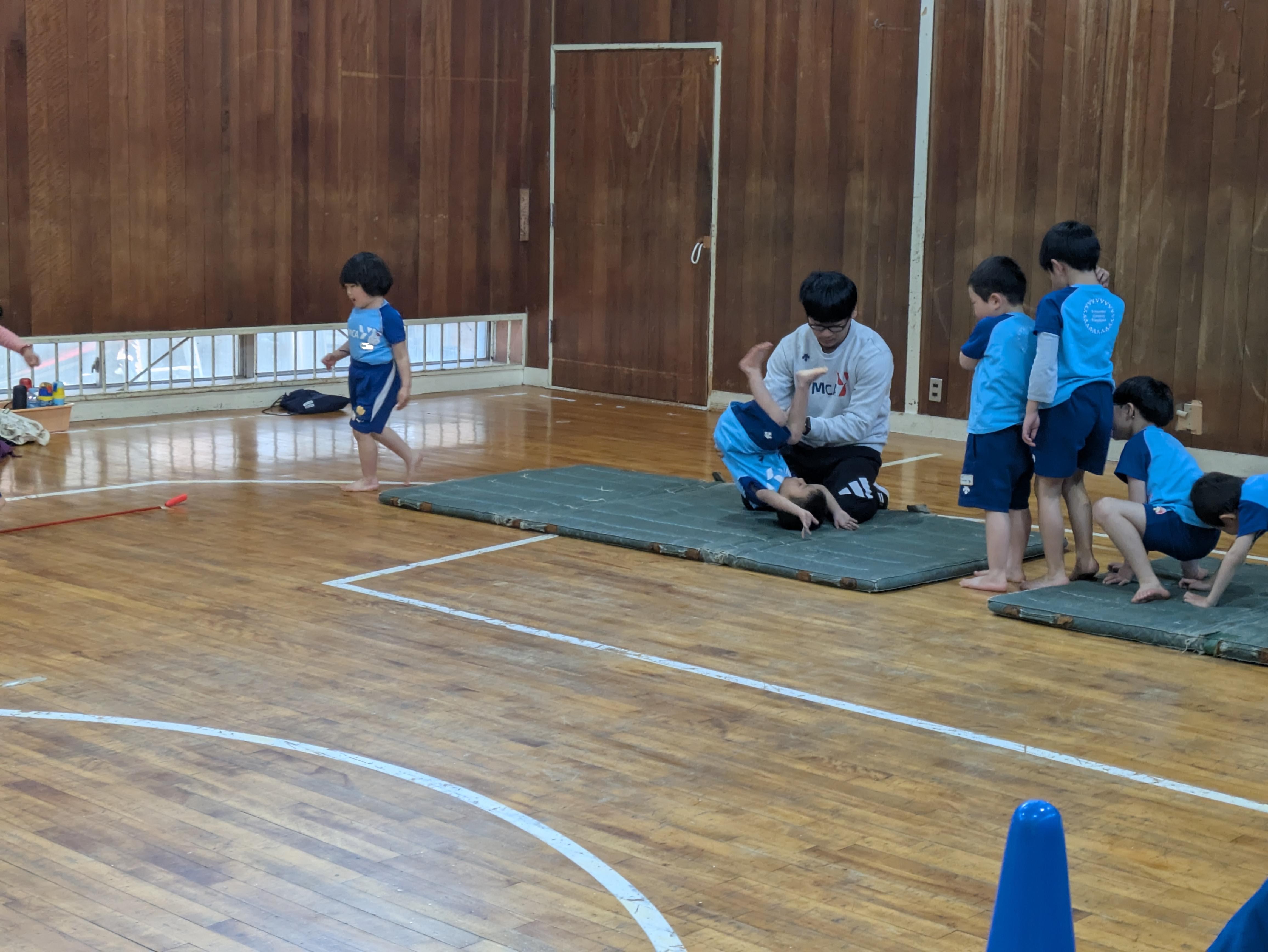 最後に、坂道の平均台を渡ったり、前転をしたりなどのサーキットをしました。