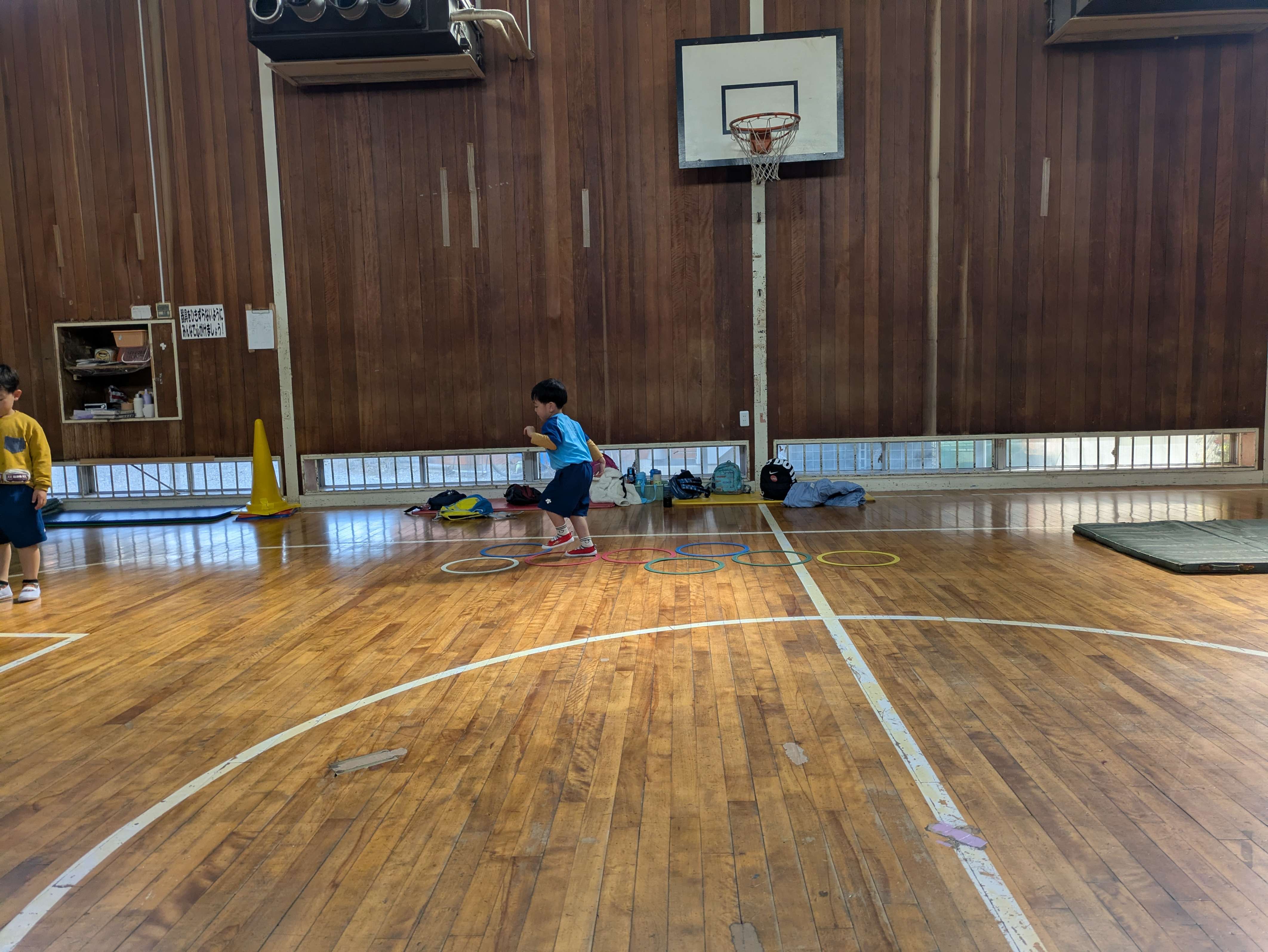 最後に坂道の平均台を渡ったり、グーパージャンプなどのサーキットをしました。