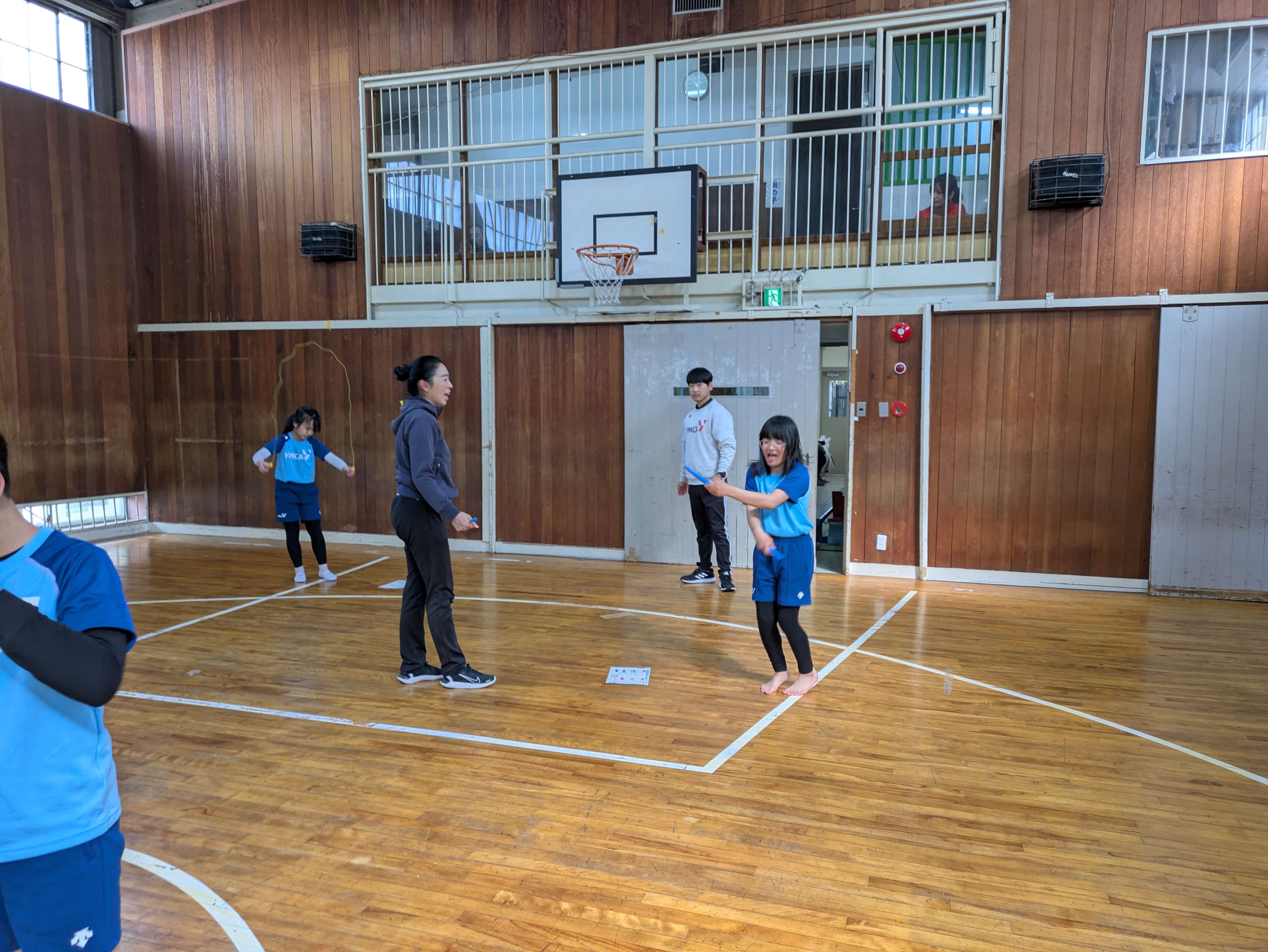 走ったりスキップをしたりしたあとは、なわとびのテストをしました。