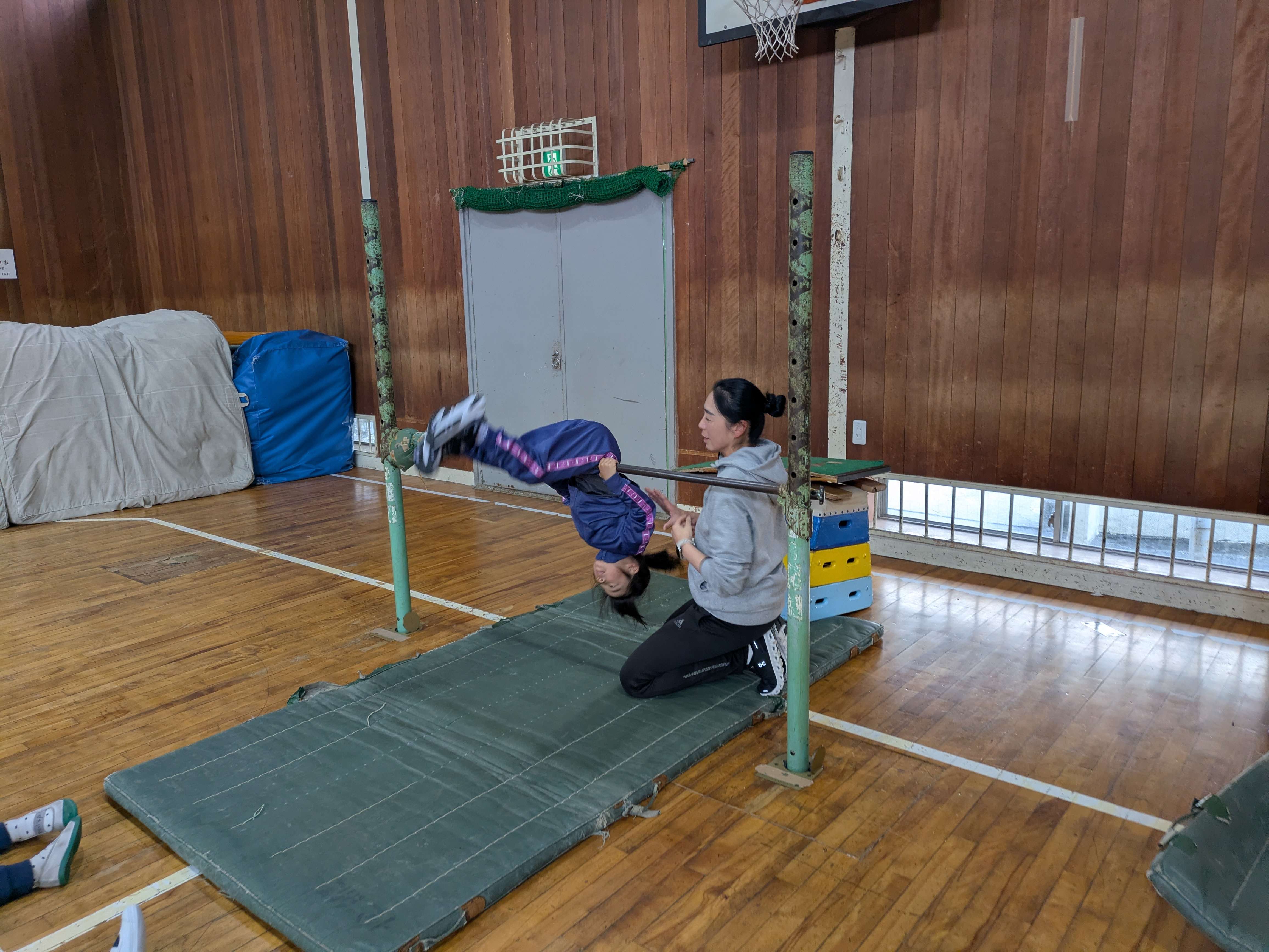 壁倒立では、しっかり腕支持をしてすることができましたね!
