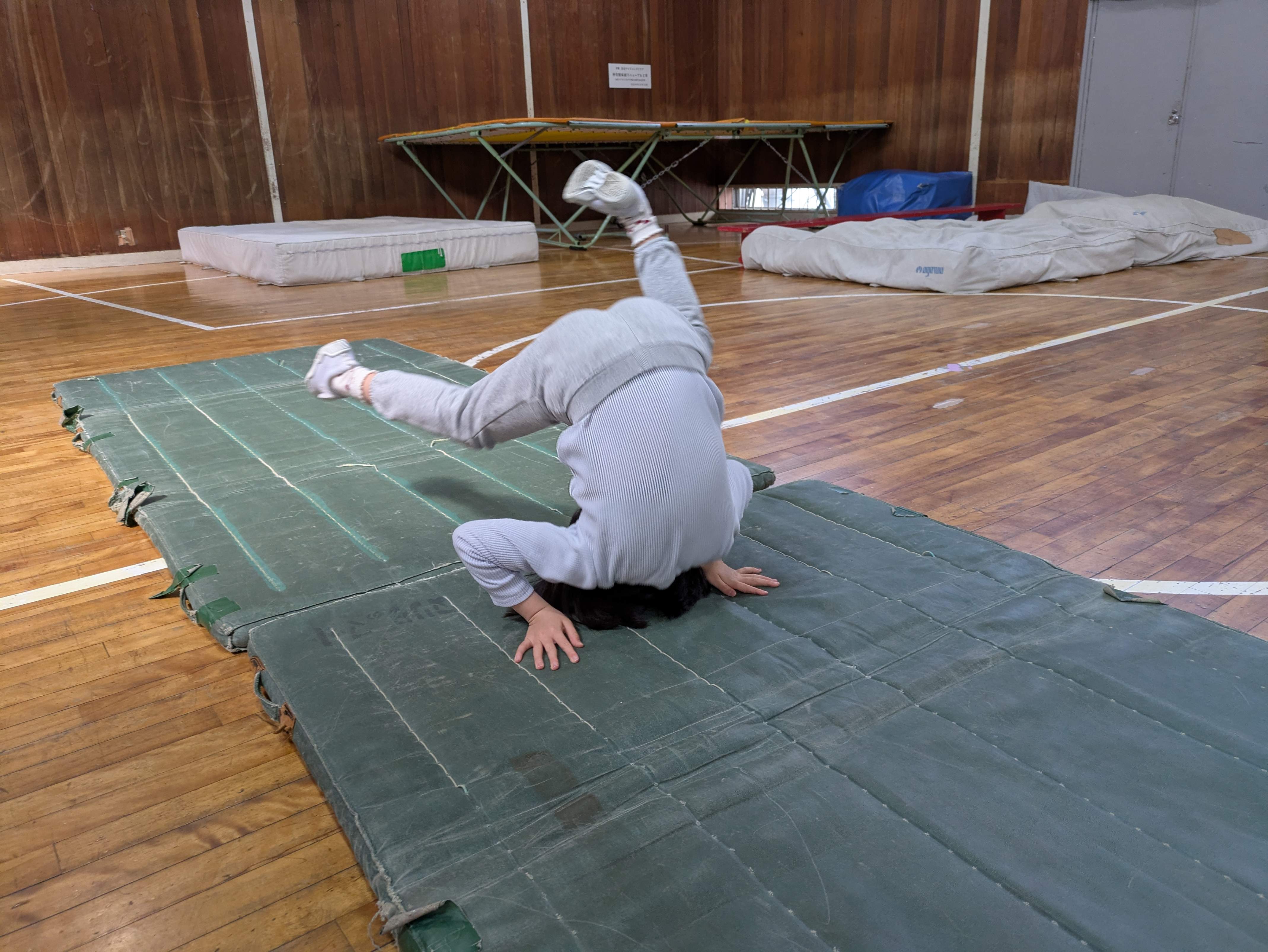 鉄棒の逆上がりでは、足の蹴り上げる方向を、上ではなく自分の頭の方向に蹴るようにしましょう!