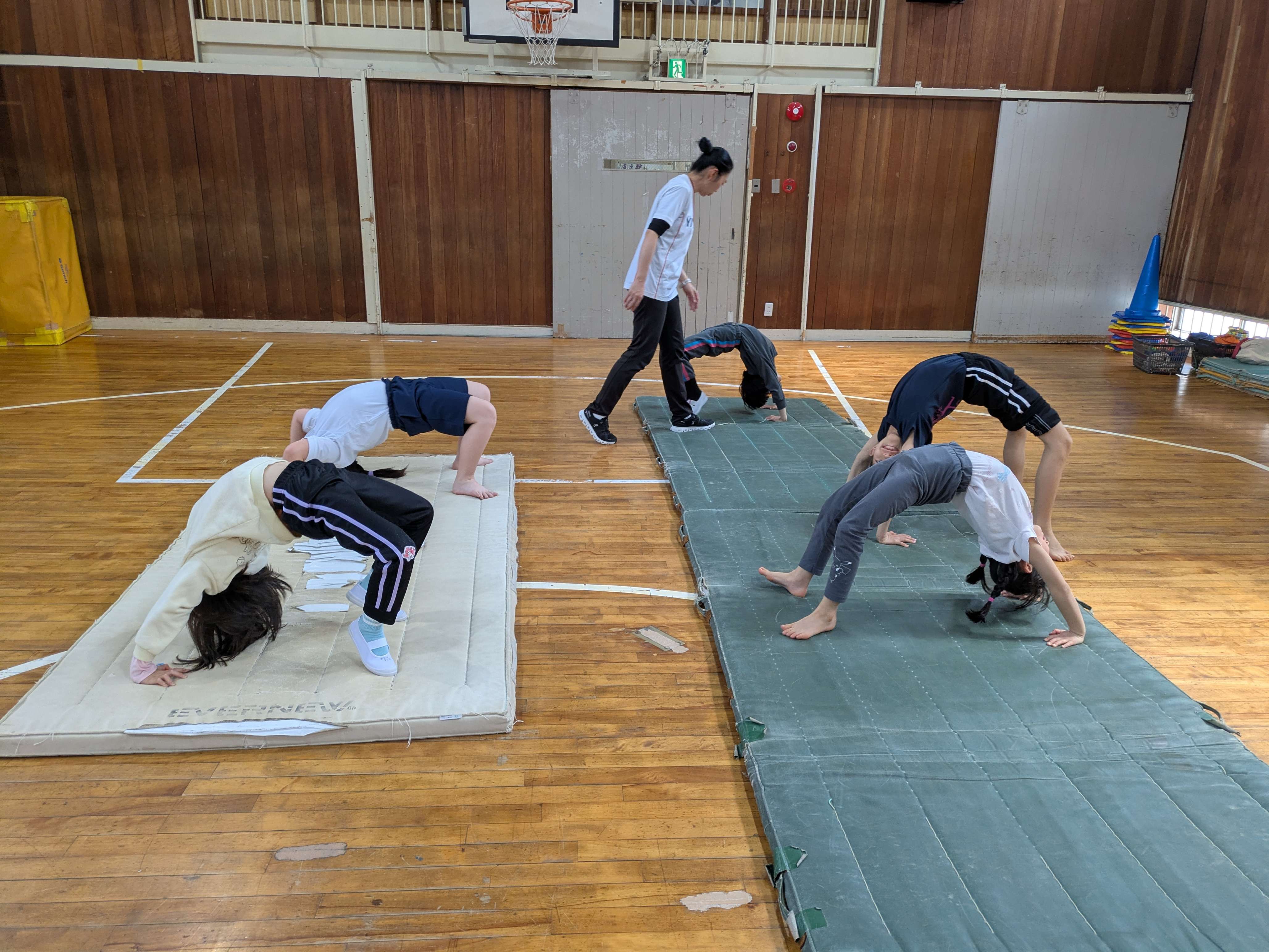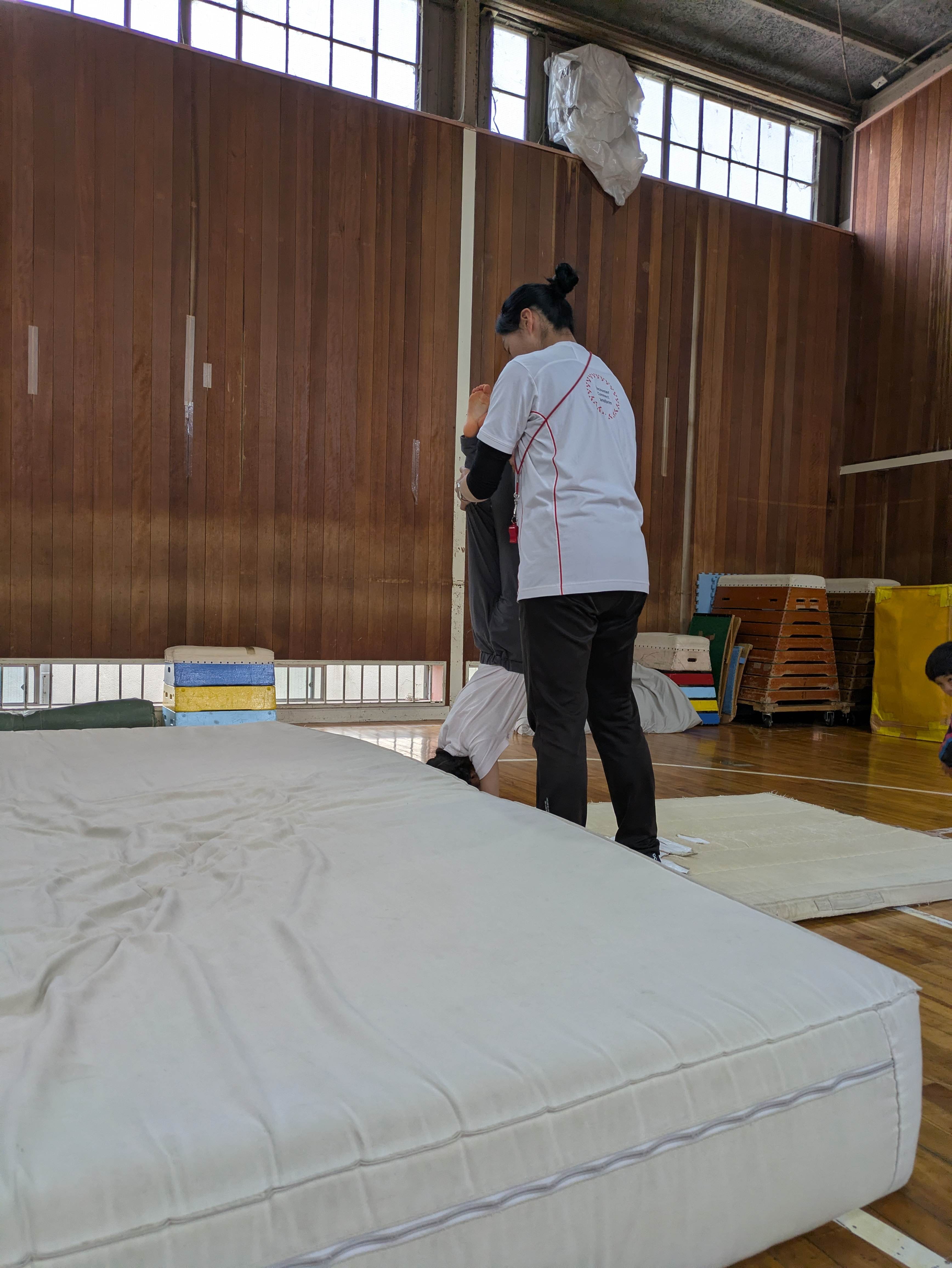 技の練習をしながら、倒立パタンもしました!しっかり足を振り上げて、倒立になったときに力が抜けないよう頑張りましょう!