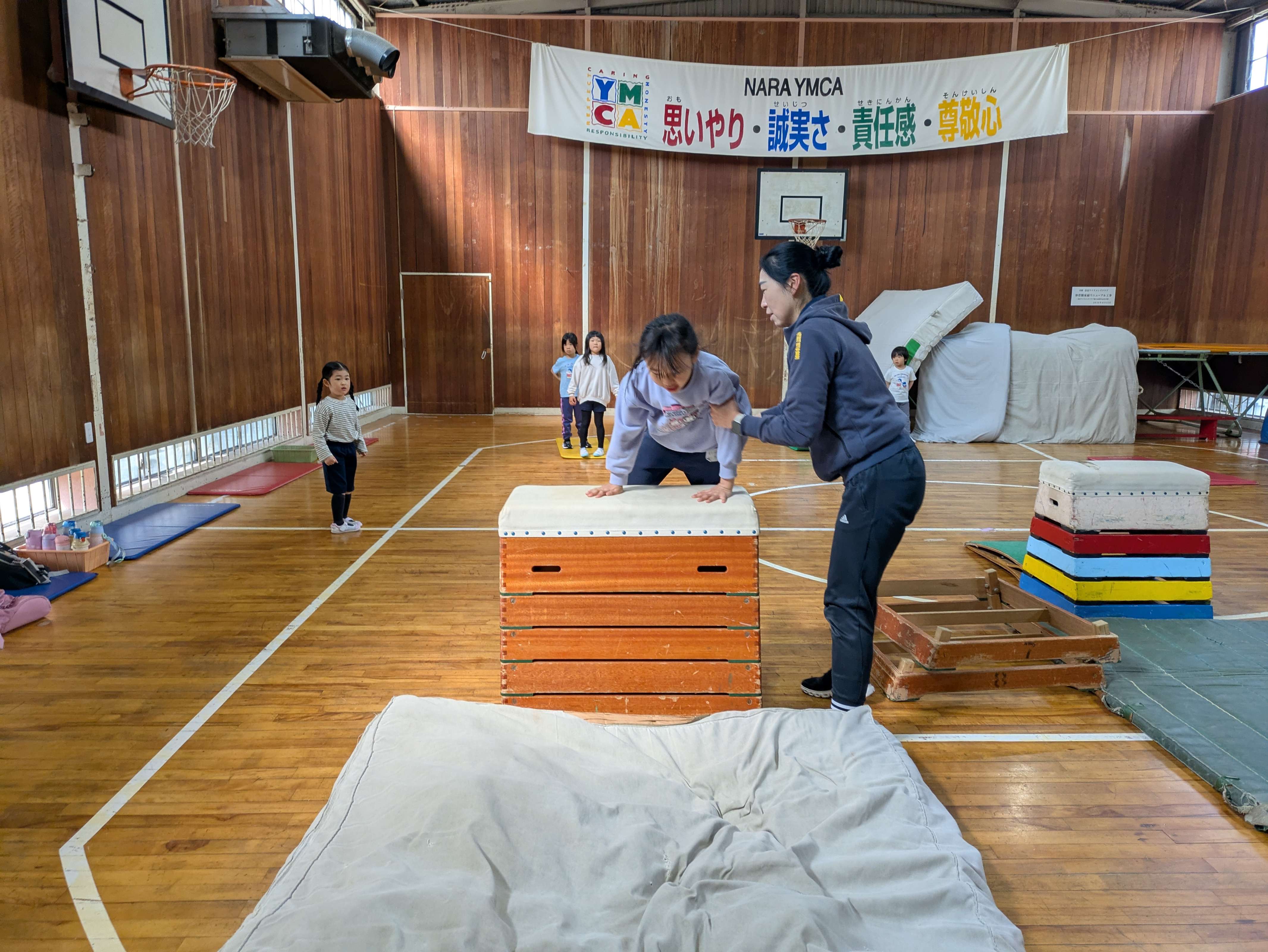跳び箱では、助走の力をジャンプに活かせることができましたね!手も上手に使って、体を前に運ぶことができました!