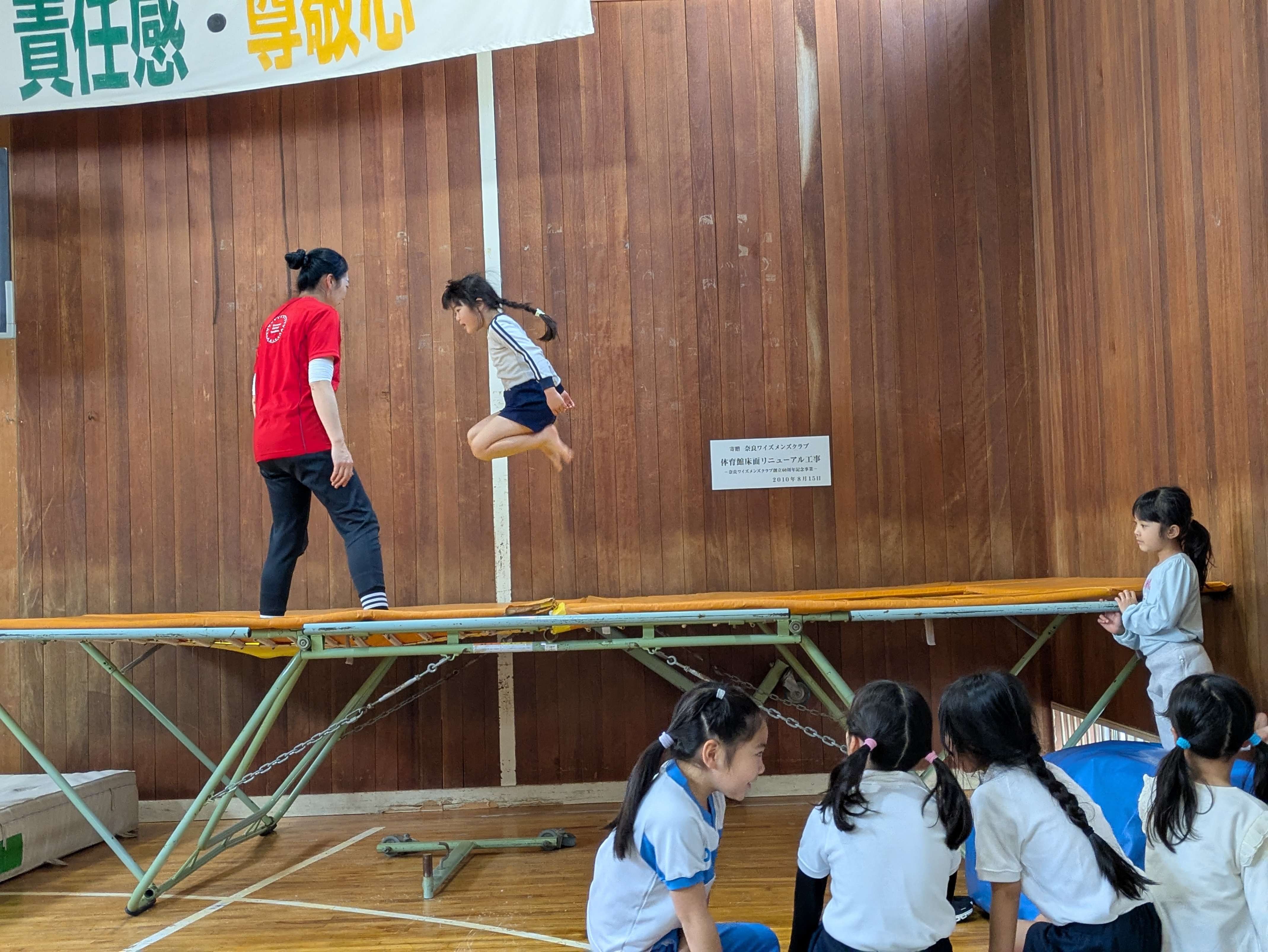 トランポリンでは、膝とびにチャレンジしました!