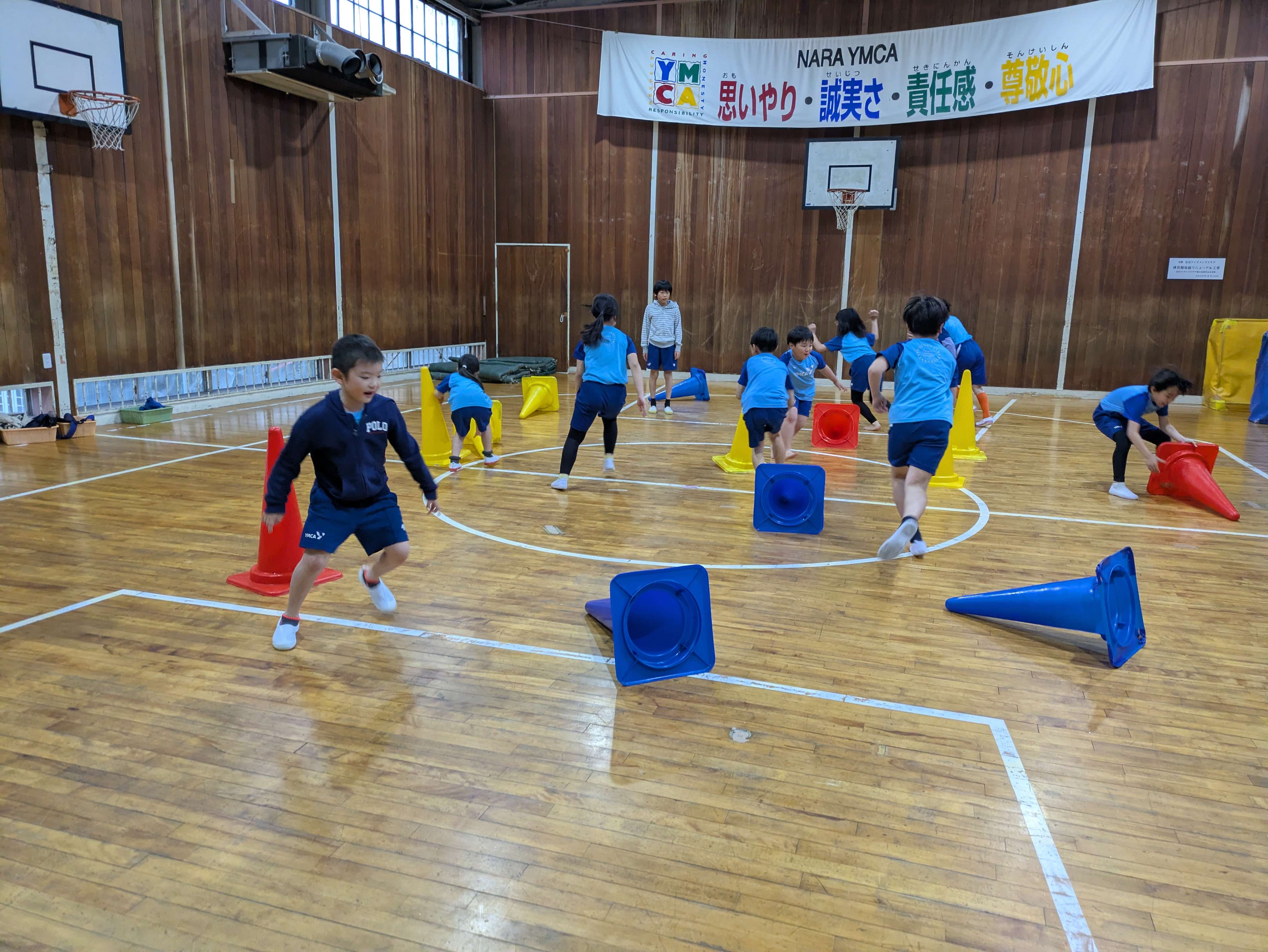 コーンを倒すチームと立てるチームに分かれて対決しました!
