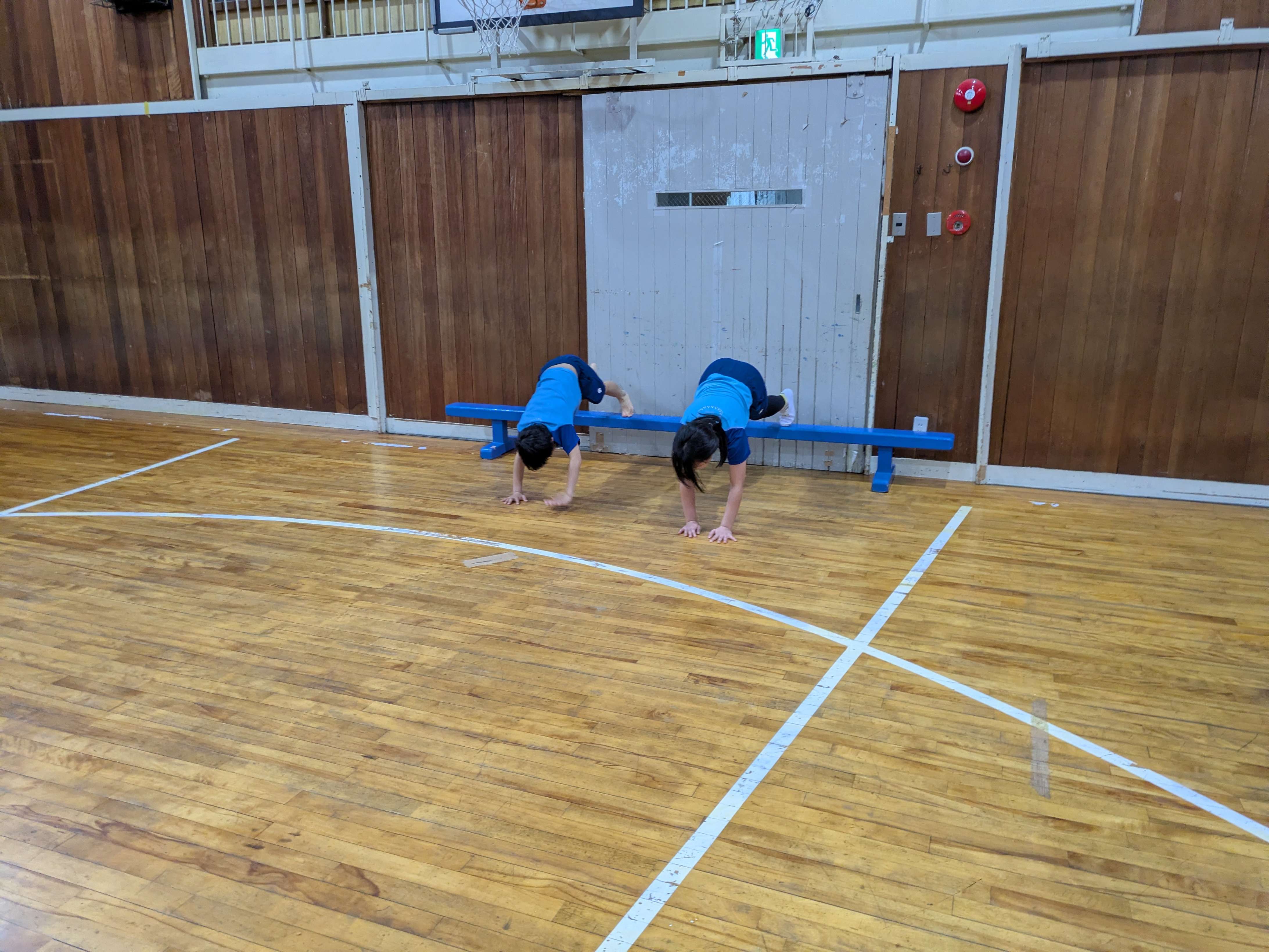 最後に、足入れ替えや鉄棒、足上げ腹筋などのサーキットをしました。