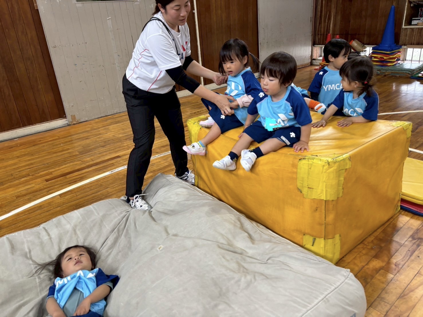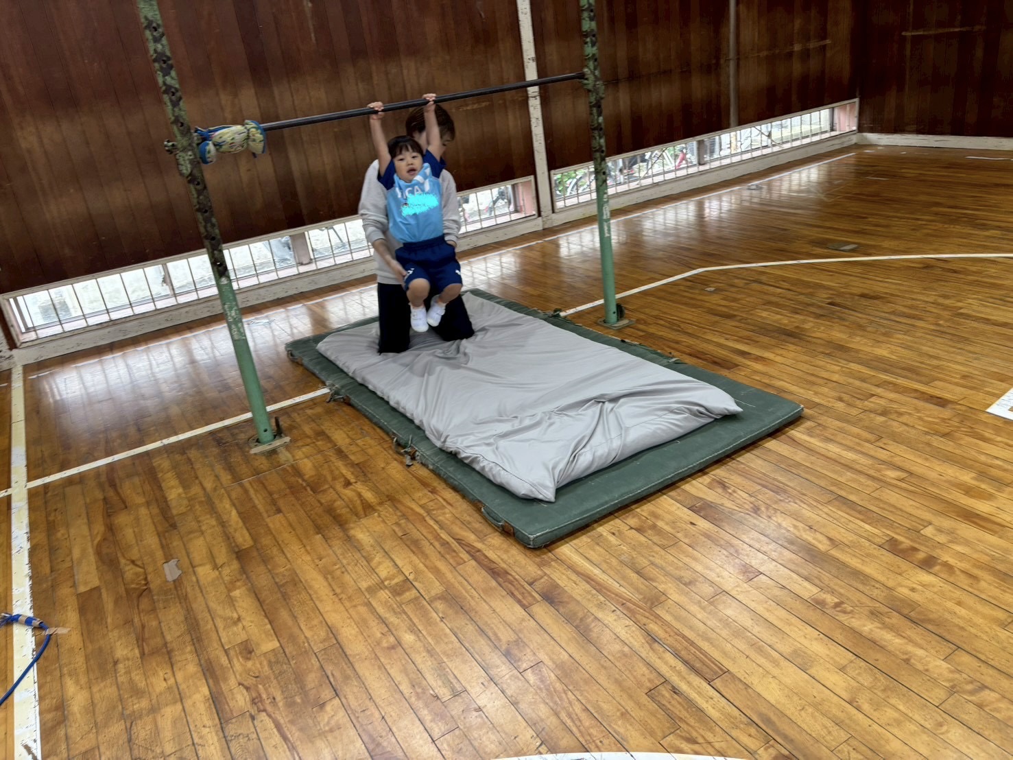 サーキットは初めて鉄棒にチャレンジしました。前転もリーダーと少しだけやってみました。これから少しずつ器具も頑張っていこうと思います。みんな前向きにチャレンジしてくれていますよ(^_-)-☆