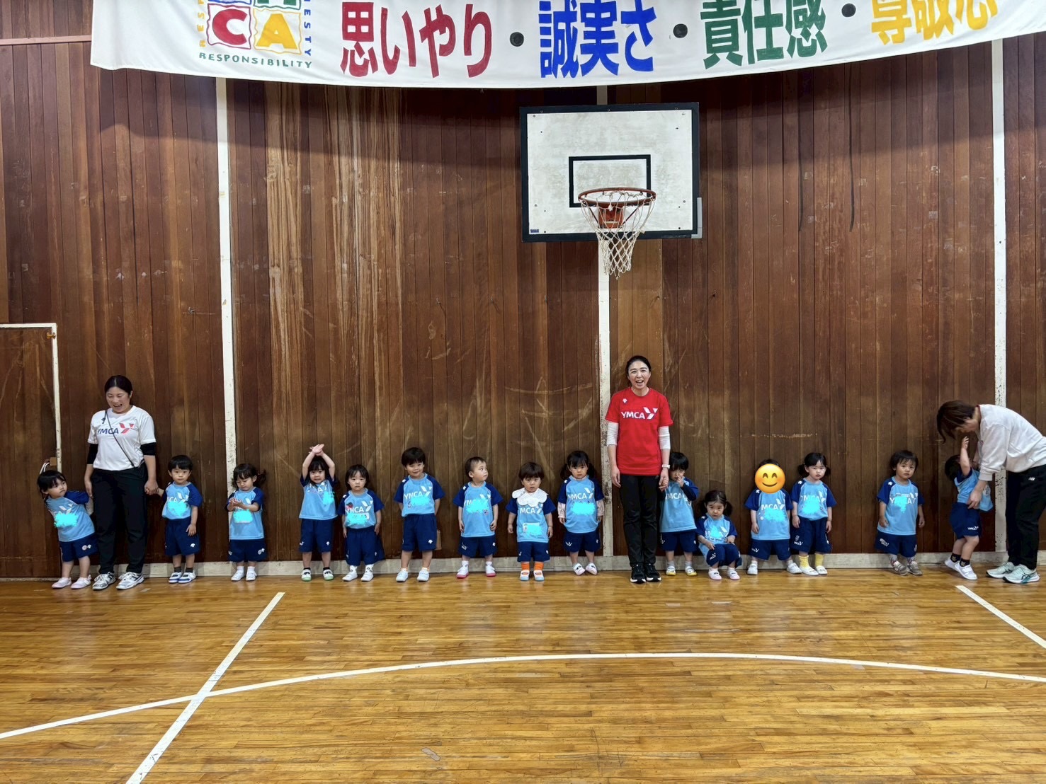 体育館でかけっこをする前に集まった時の様子です。感動して思わず写真を撮りました( *´艸`)