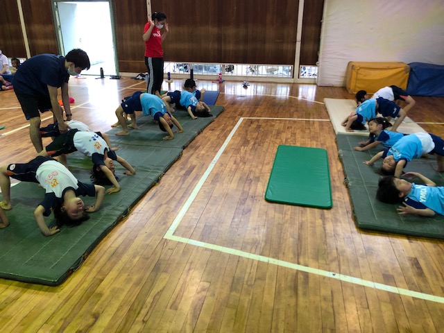 年少さんチームはサーキットで練習をしてから、起き上がる時に「手をつかない」前転を頑張りました!