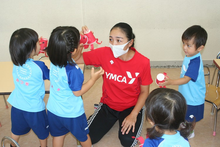 お部屋ではタコを作りました。リーダーに手伝ってもらわなくても進んでやっていて、とってもかわいいタコができあがりました!