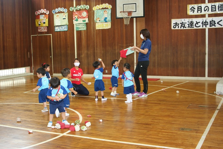 今日は第2回目の玉入れです!赤チームと黄色チームに別れて競争しました!