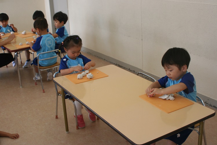 お部屋では、粘土遊びをしました。お団子やへび、かたつむりなどなど・・・。どこからともなく、ハッピーバースデイの歌も聞こえてきました(*’▽’)ケーキを作ってたのかな??