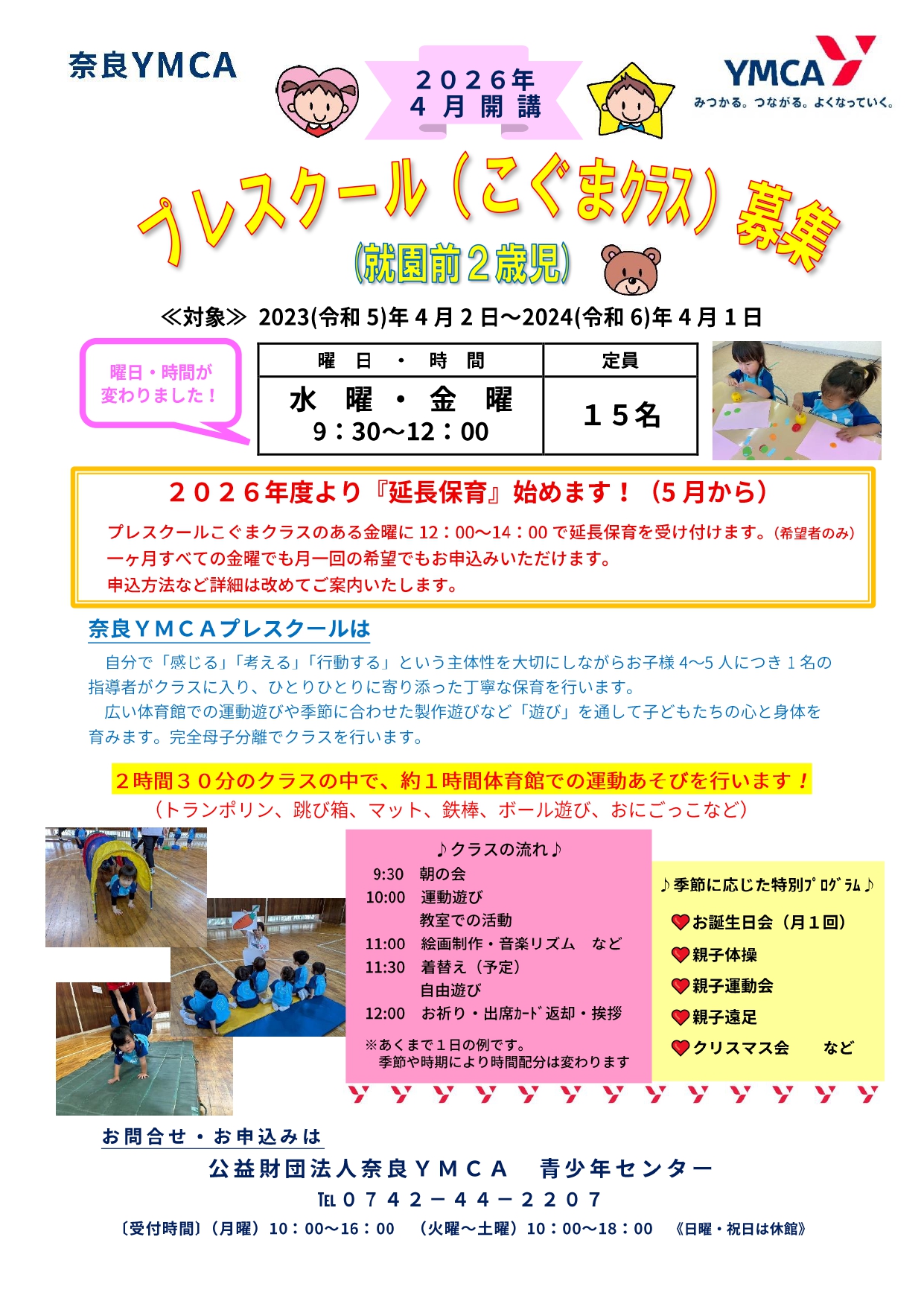 2026年4月開講 2歳児プレスクール(こぐまクラス)の募集を