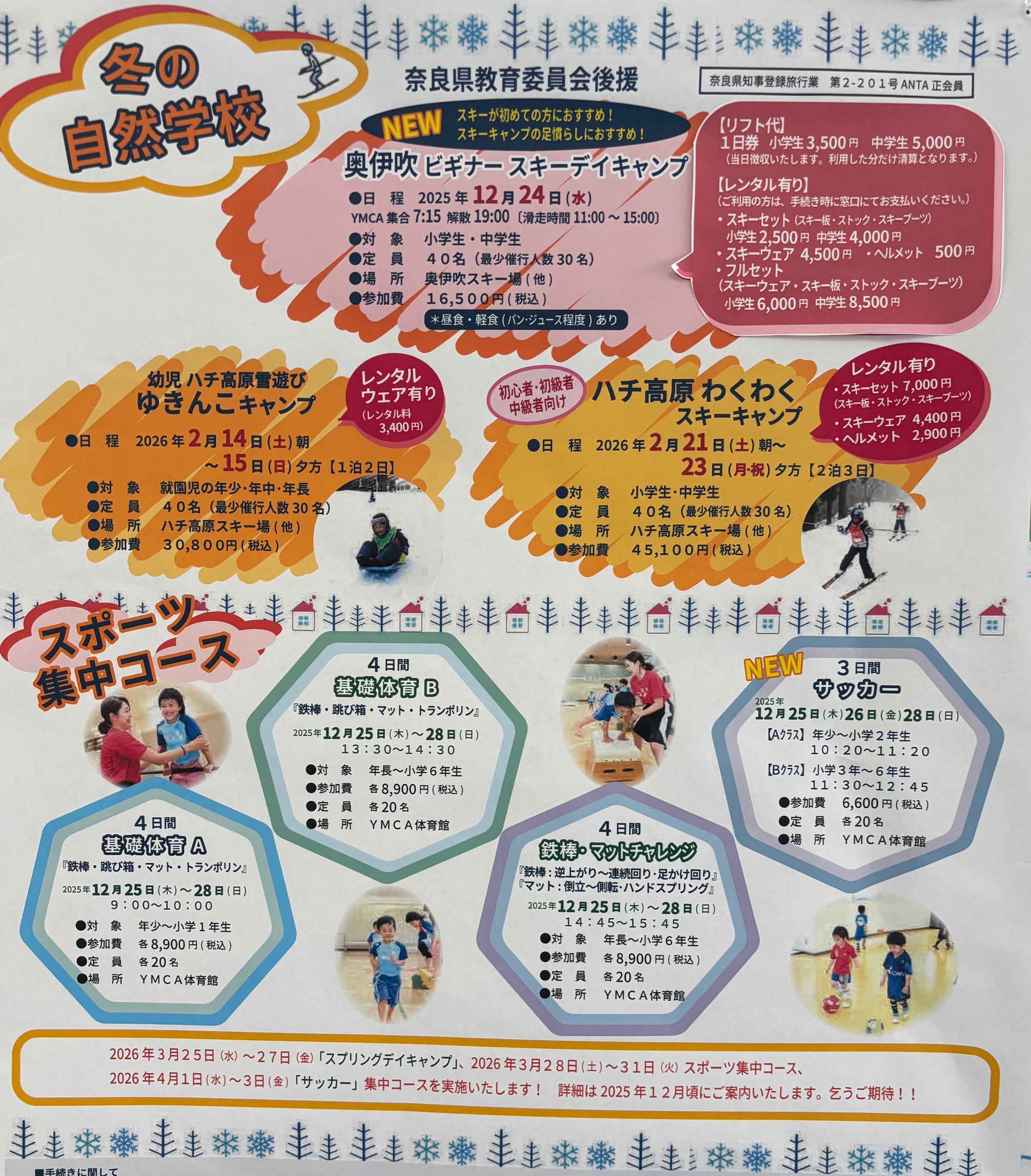 🌟おススメは、「奥伊吹ビギナースキーデイキャンプ」今年NEWのコースです。初めてスキーをやってみよう!と思う方にピッタリです。無理な講習はいたしません。トレーニングを受けた奈良YMCAスタッフ、リーダーが楽しく指導いたします。